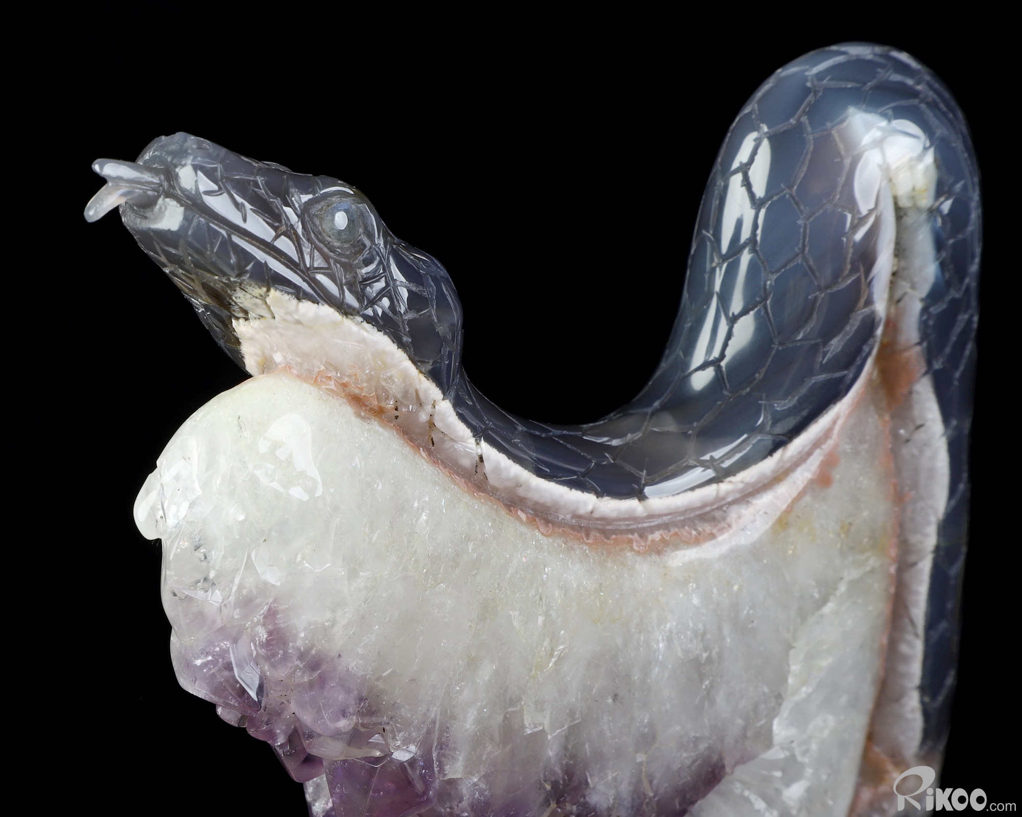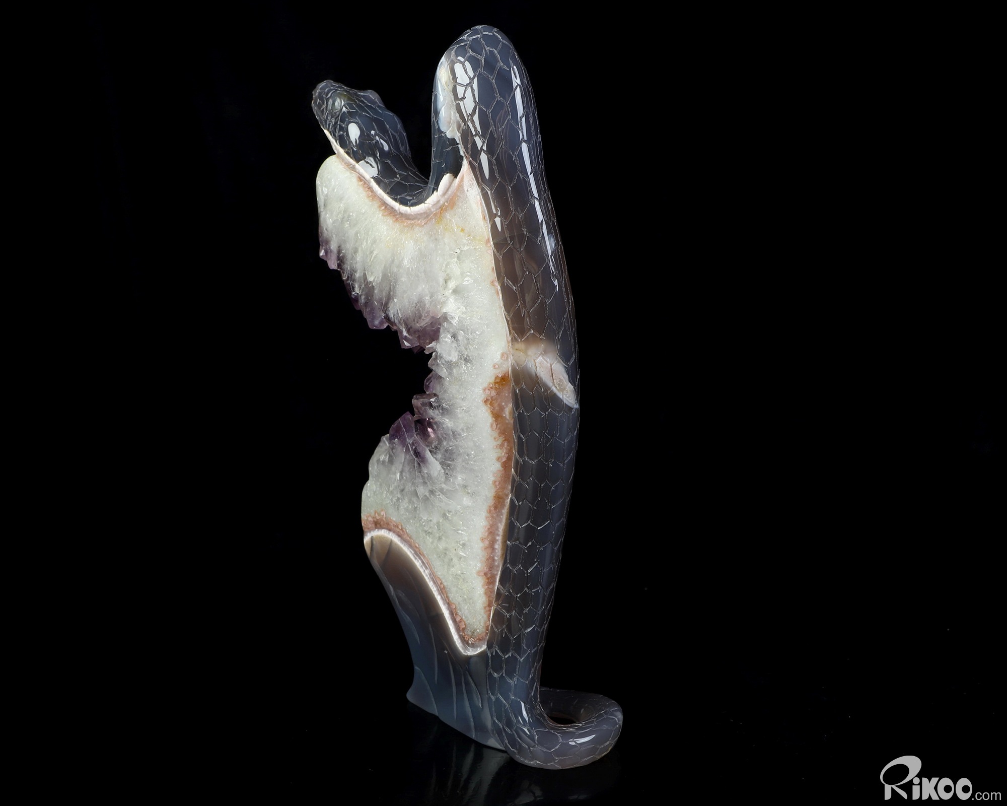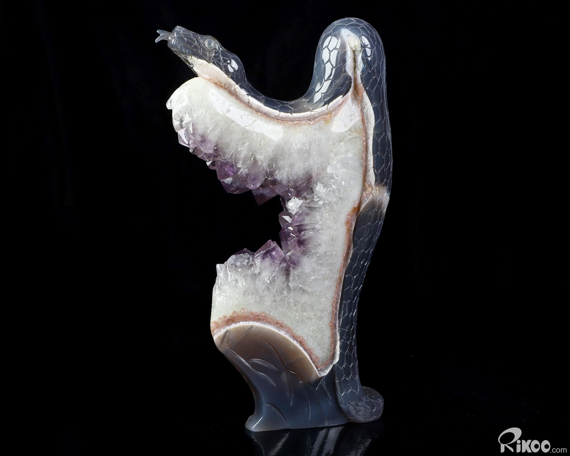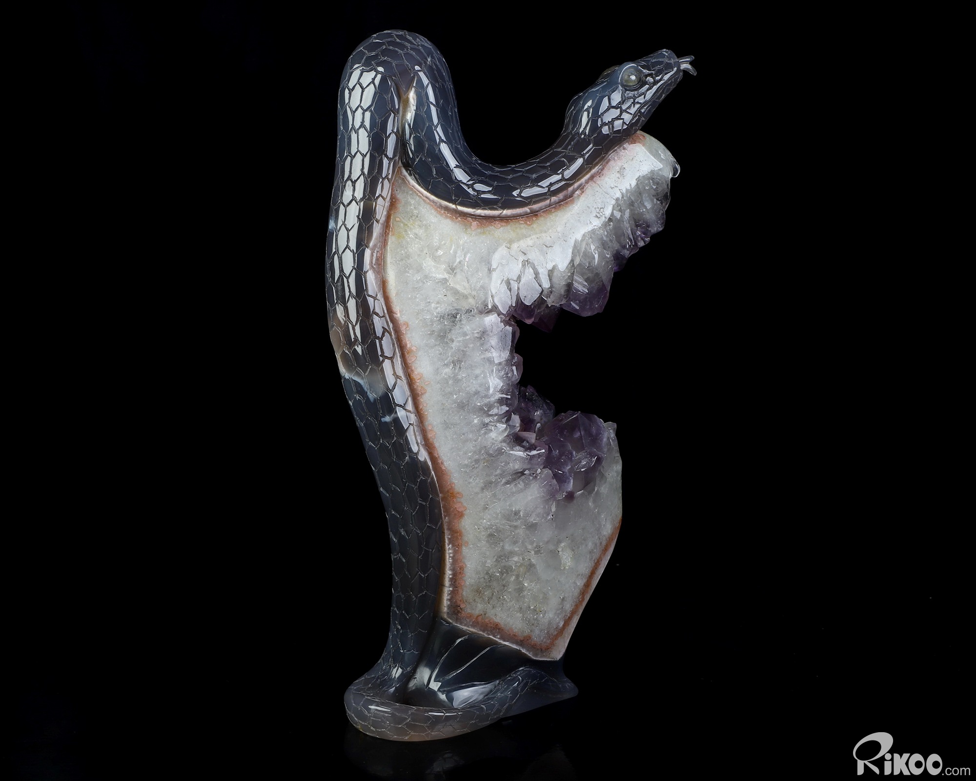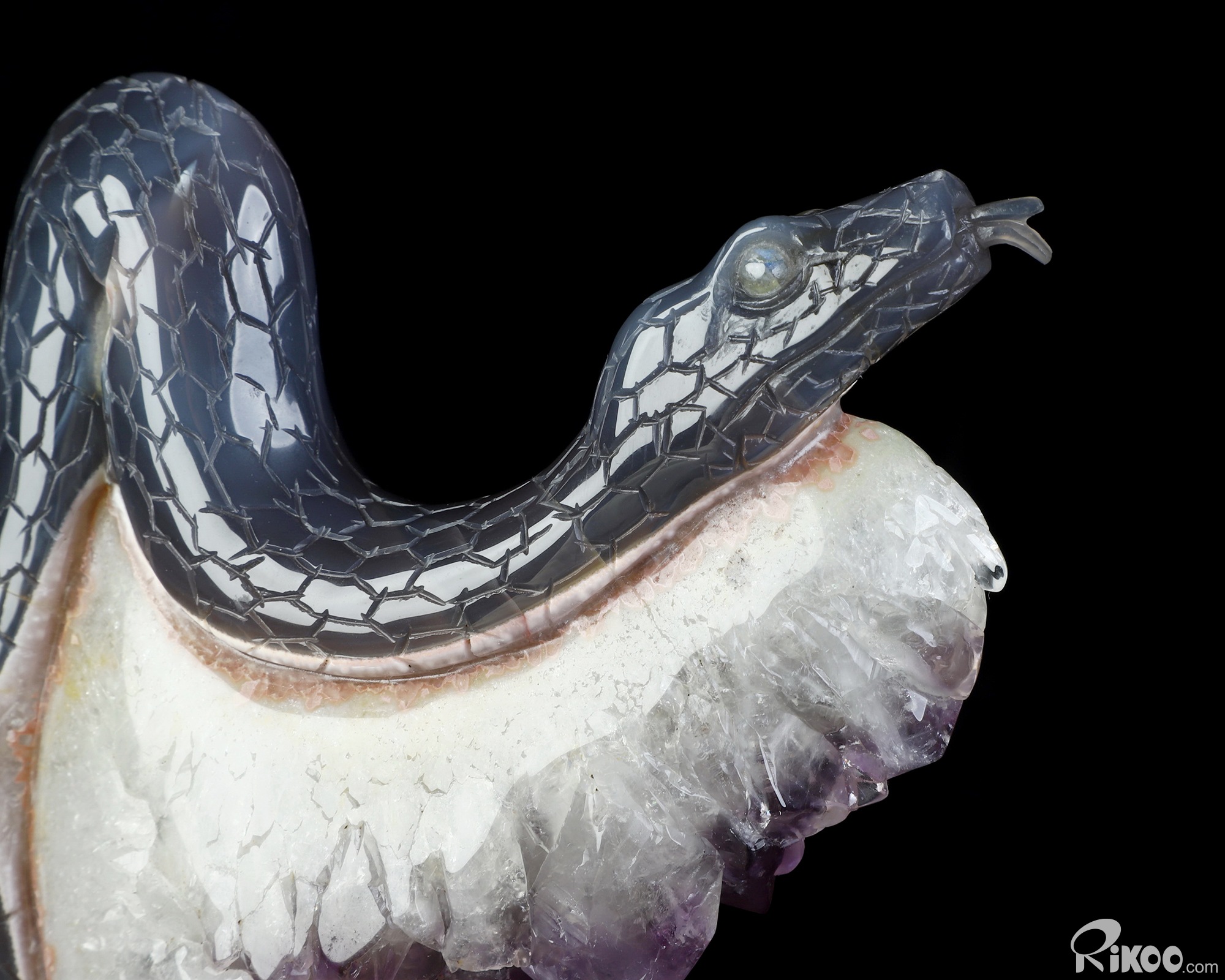 9.1" Agate Amethyst Geode Hand Carved Crystal Snake Sculpture, Crystal Healing