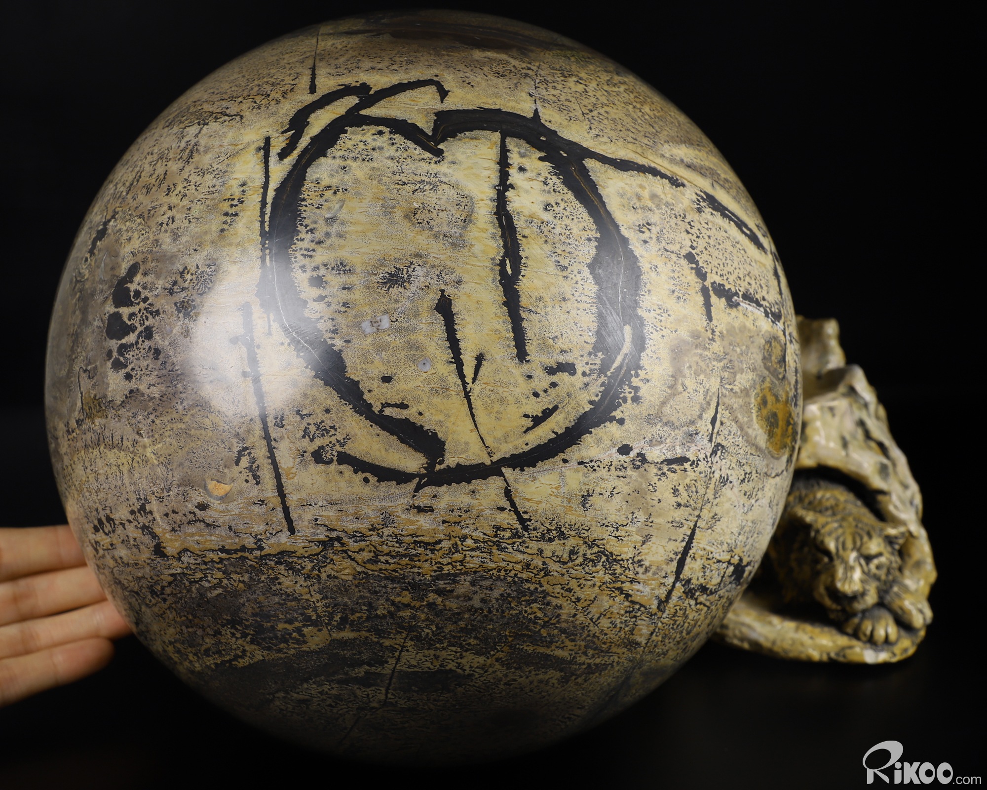 9.1" Chinese Painting Stone Hand Carved Crystal Ball/Sphere, Crystal Healing
