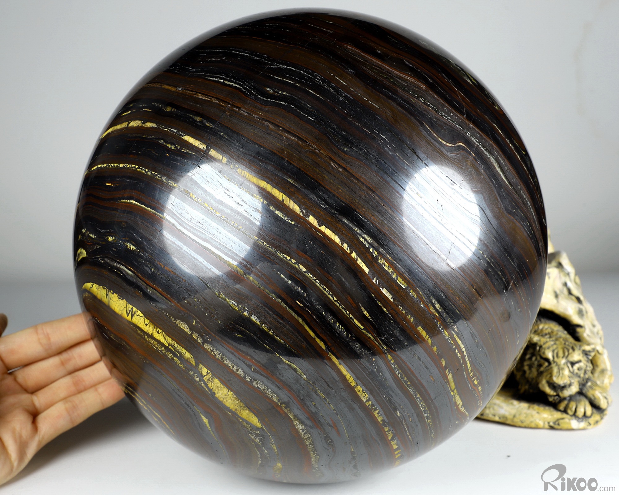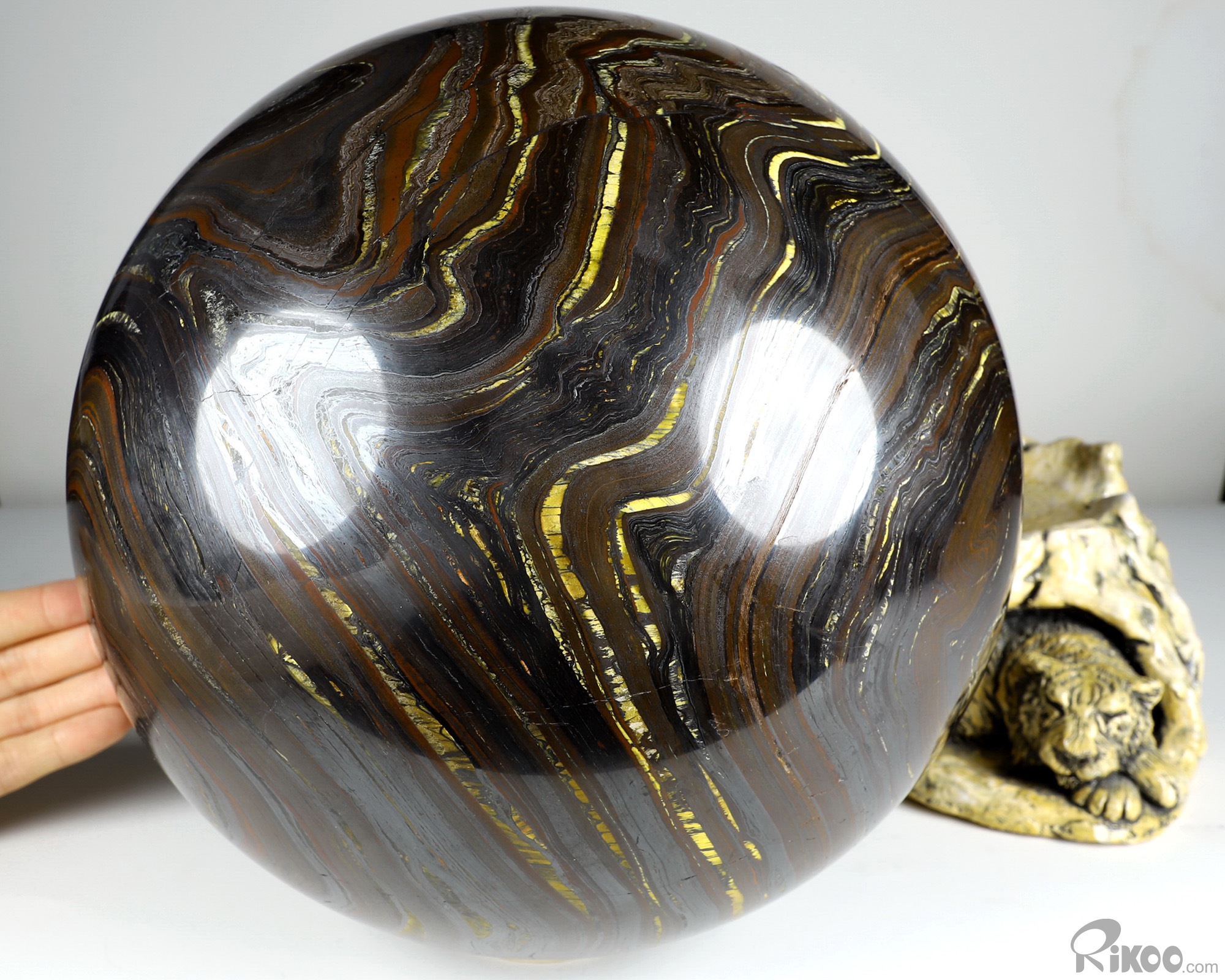 9.1" Colorful Tiger Iron Eye Hand Carved Crystal Ball/Sphere, Crystal Healing