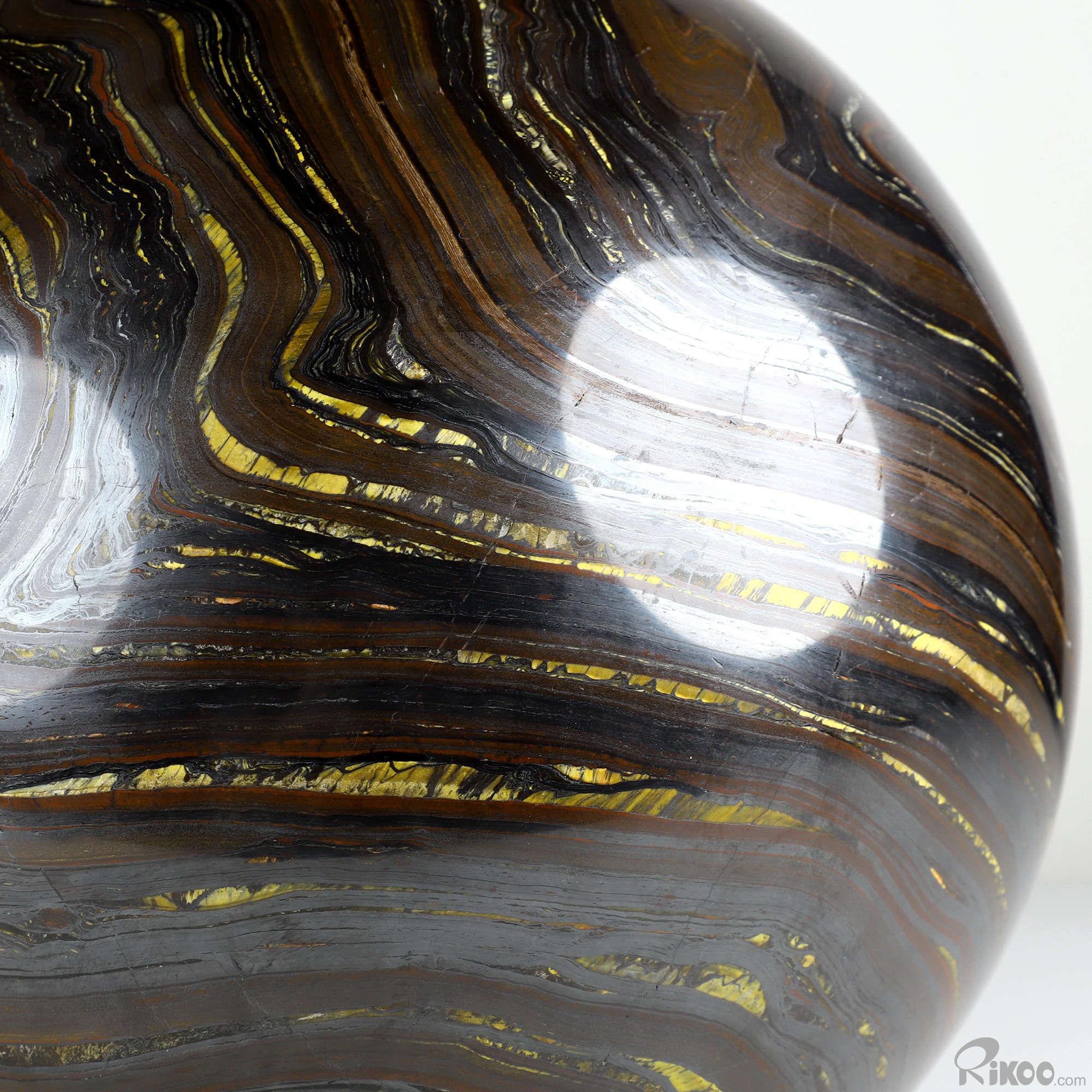 You are looking at a Colorful Tiger Iron Eye sculpture. The sculpture is 9.1 inches long.