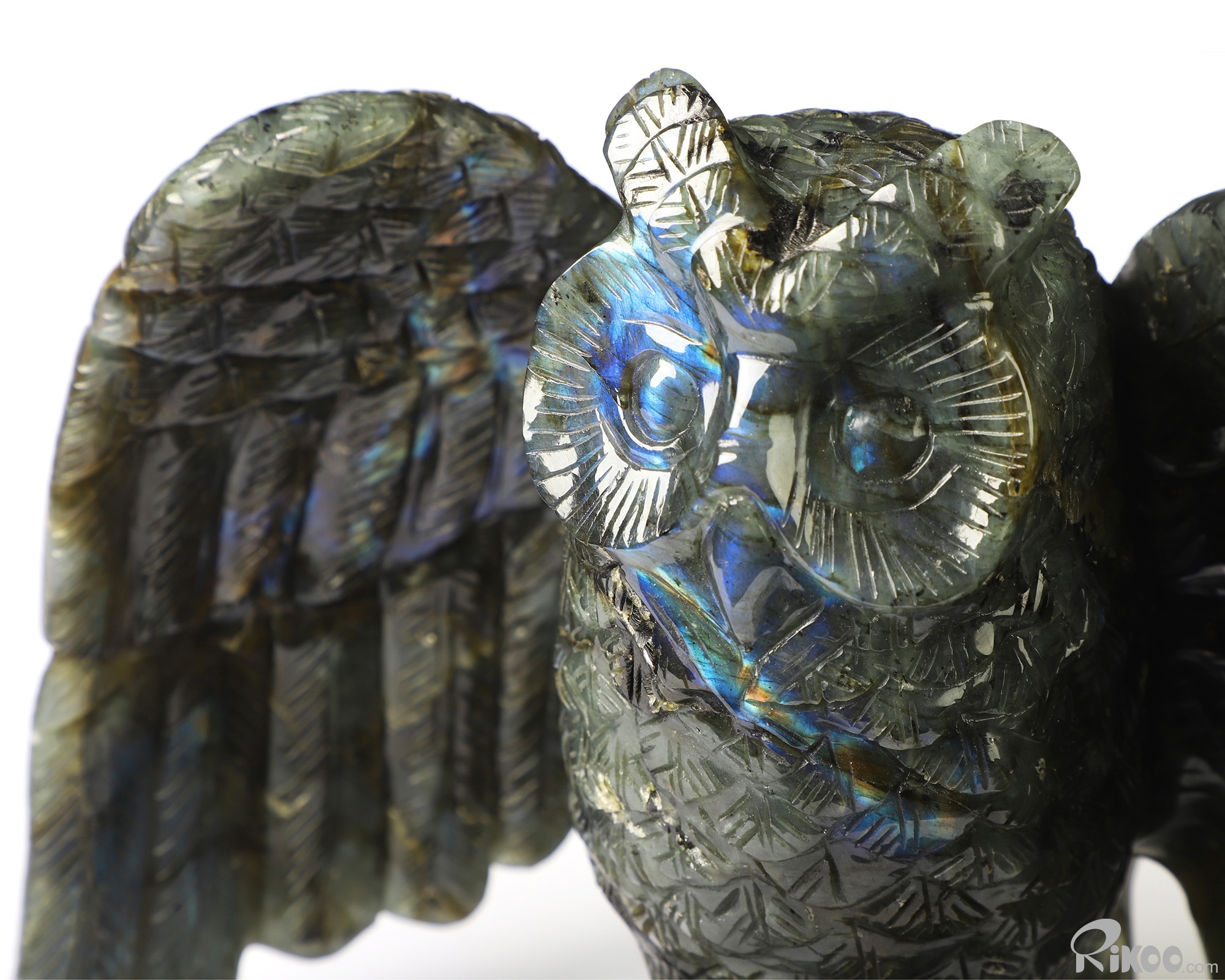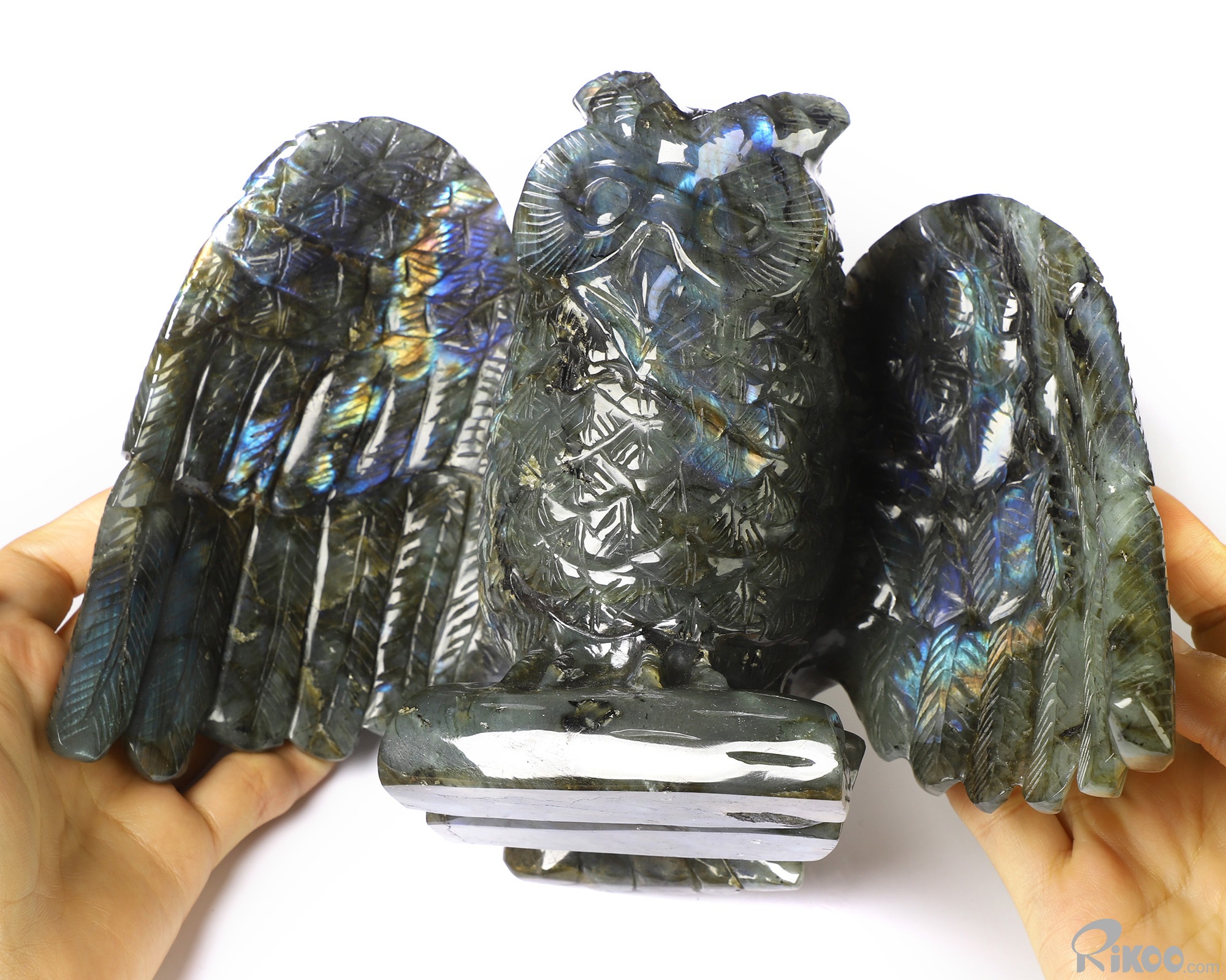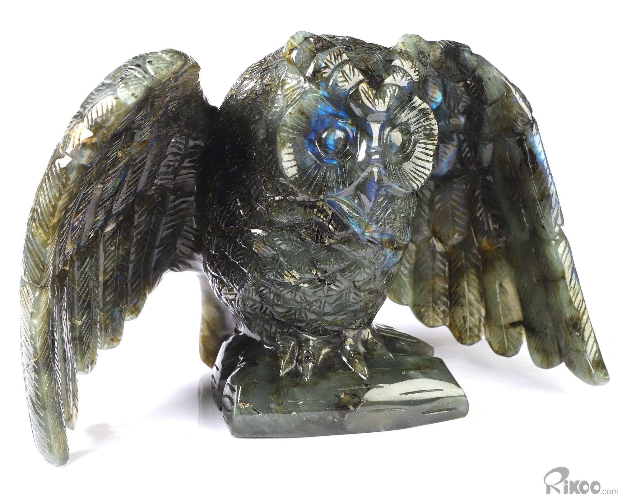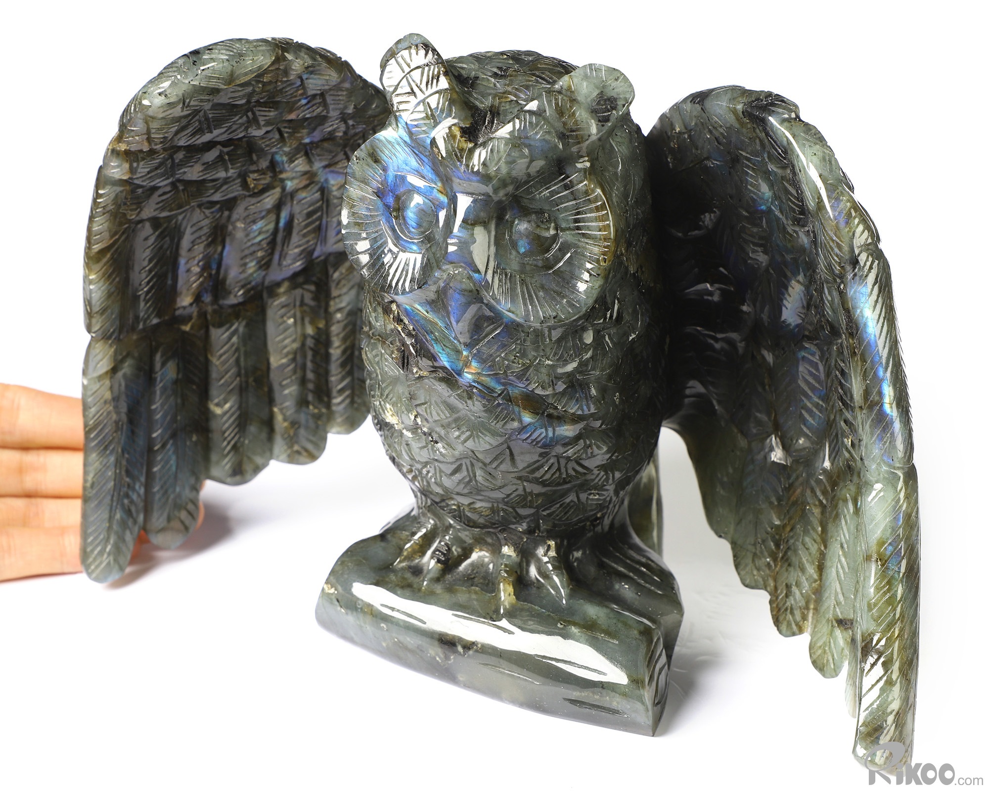 9.1" Labradorite Hand Carved Crystal Owl Sculpture, Crystal Healing