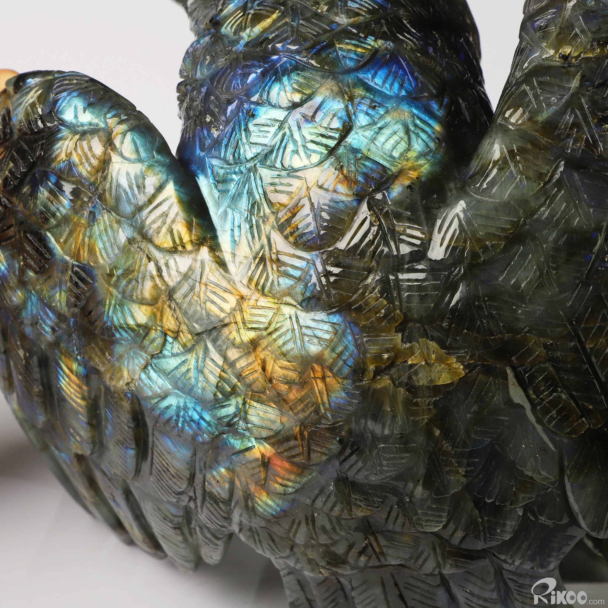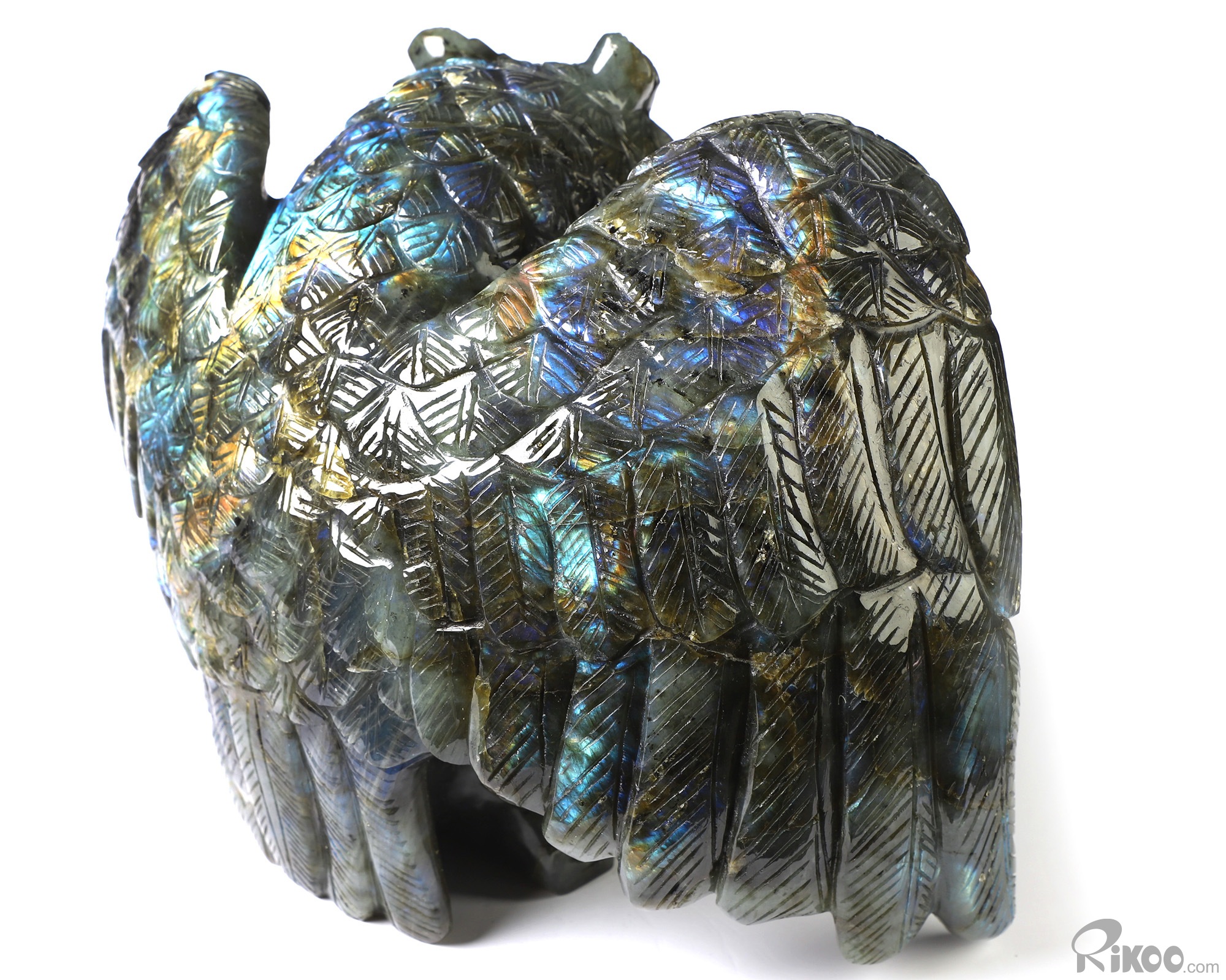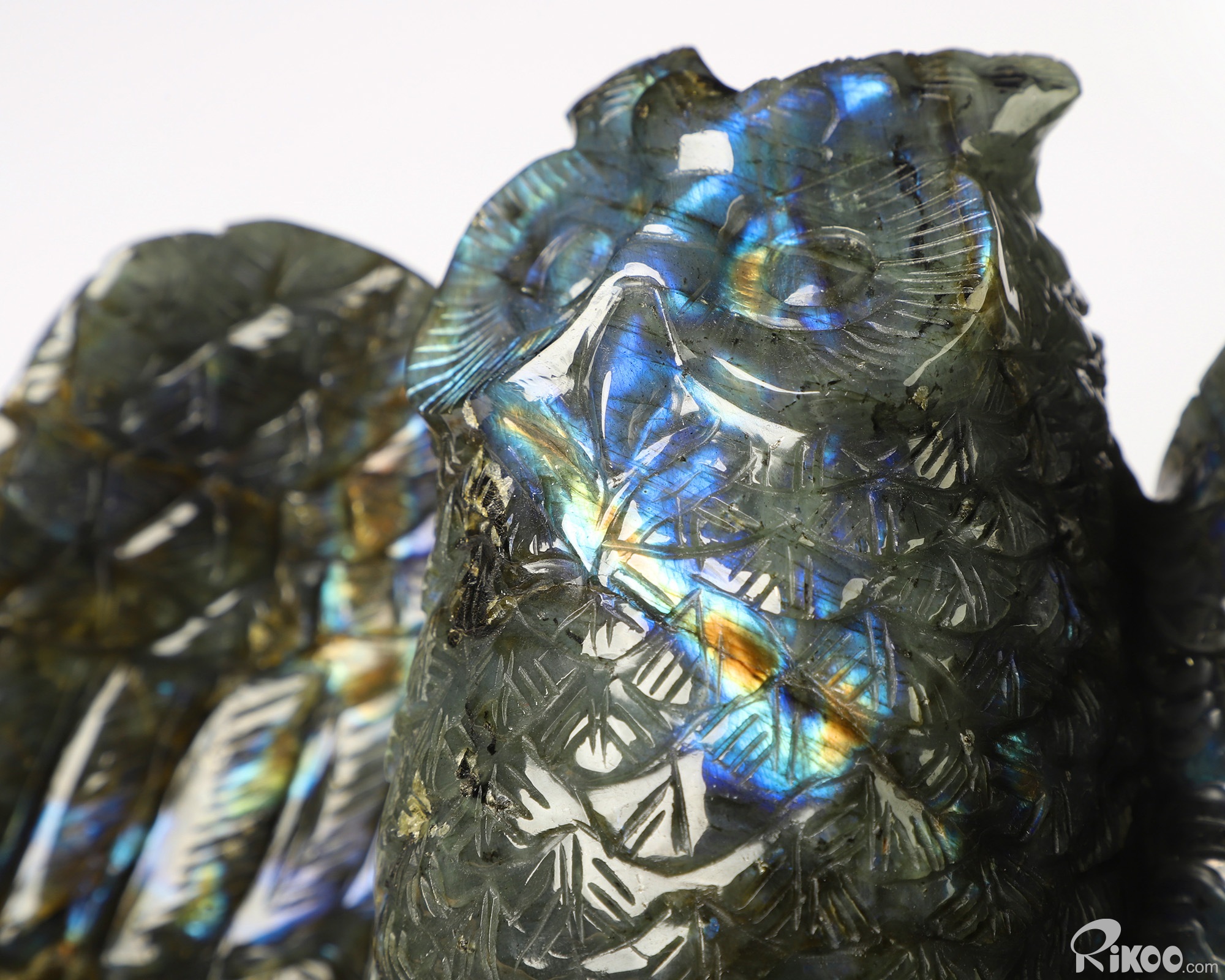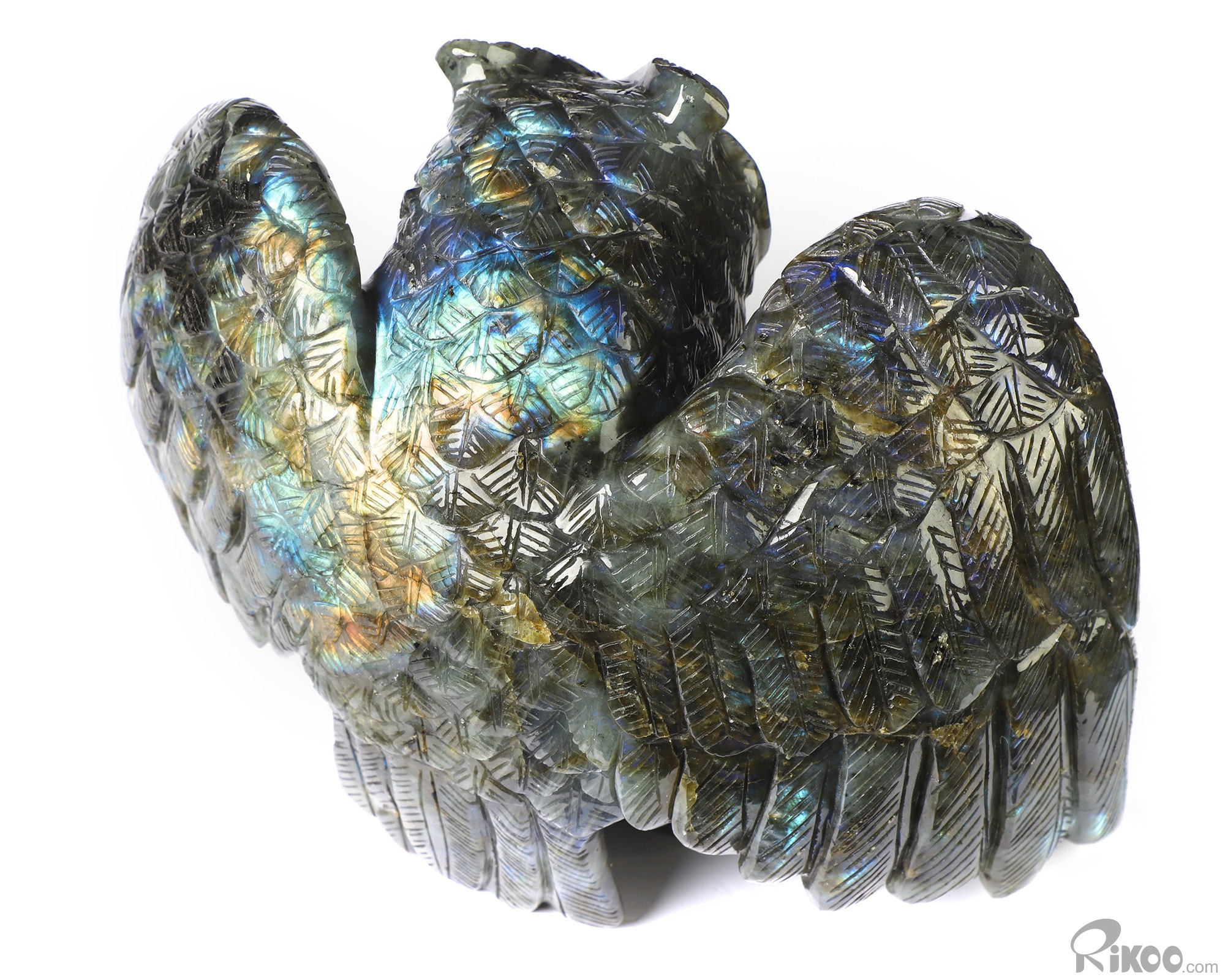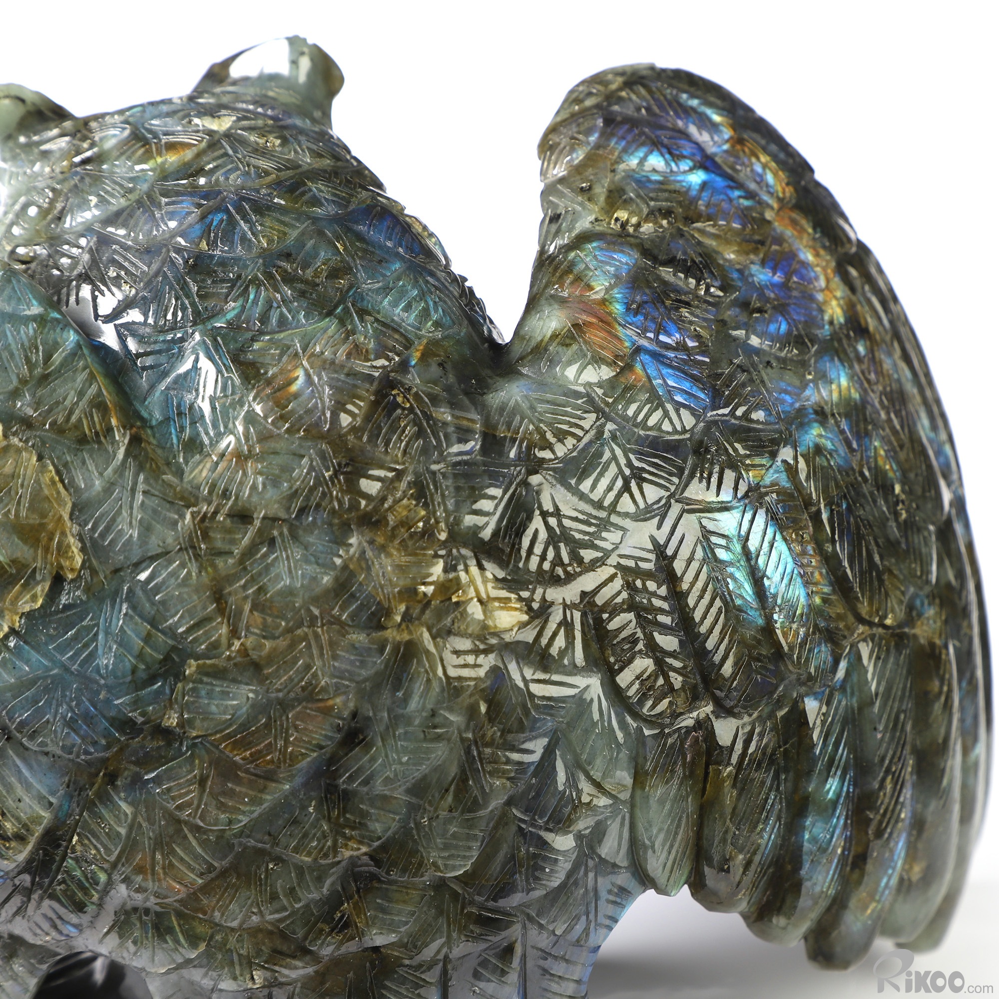9.1" Labradorite Hand Carved Crystal Owl Sculpture, Crystal Healing
