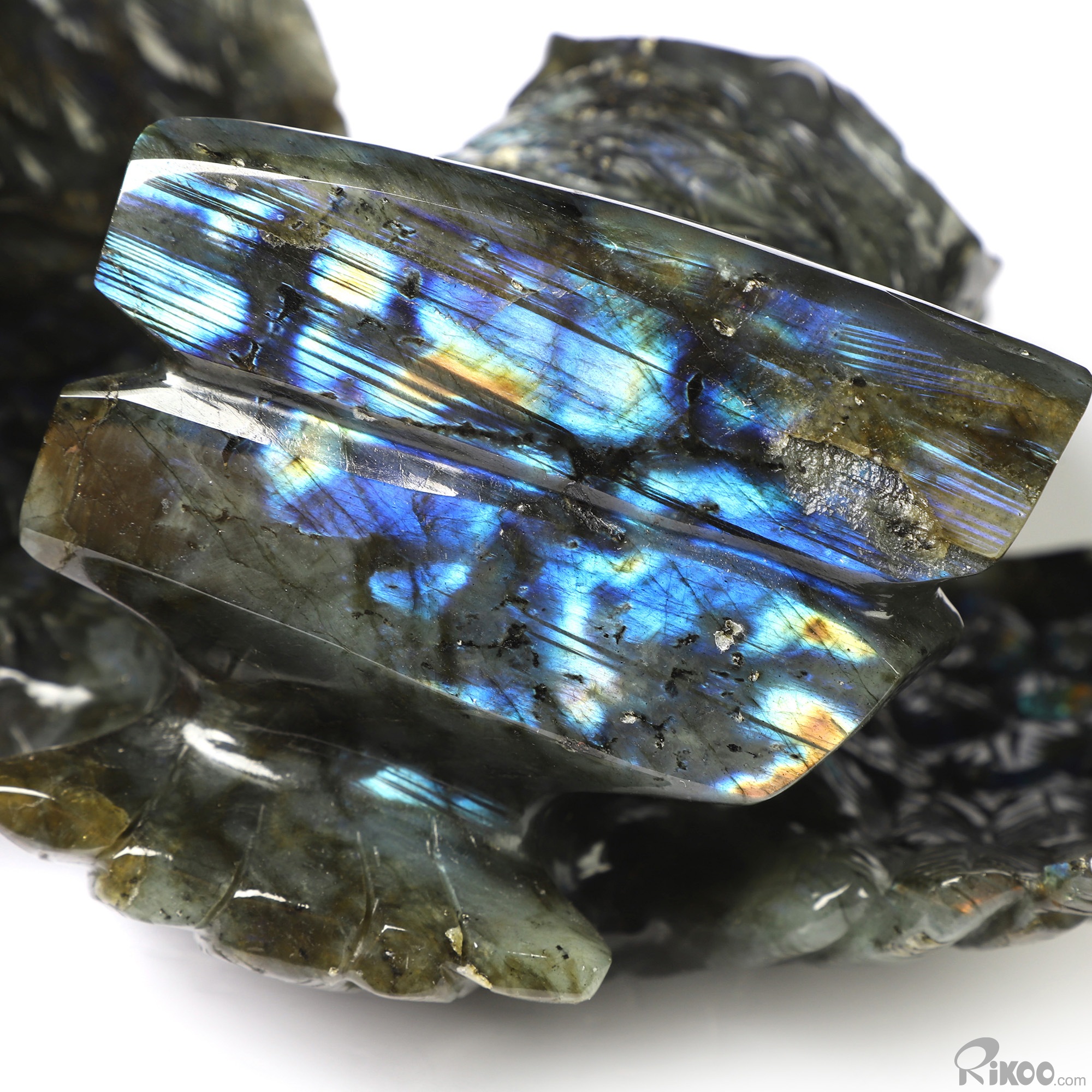 You are looking at a Labradorite sculpture. The sculpture is 9.1 inches long.