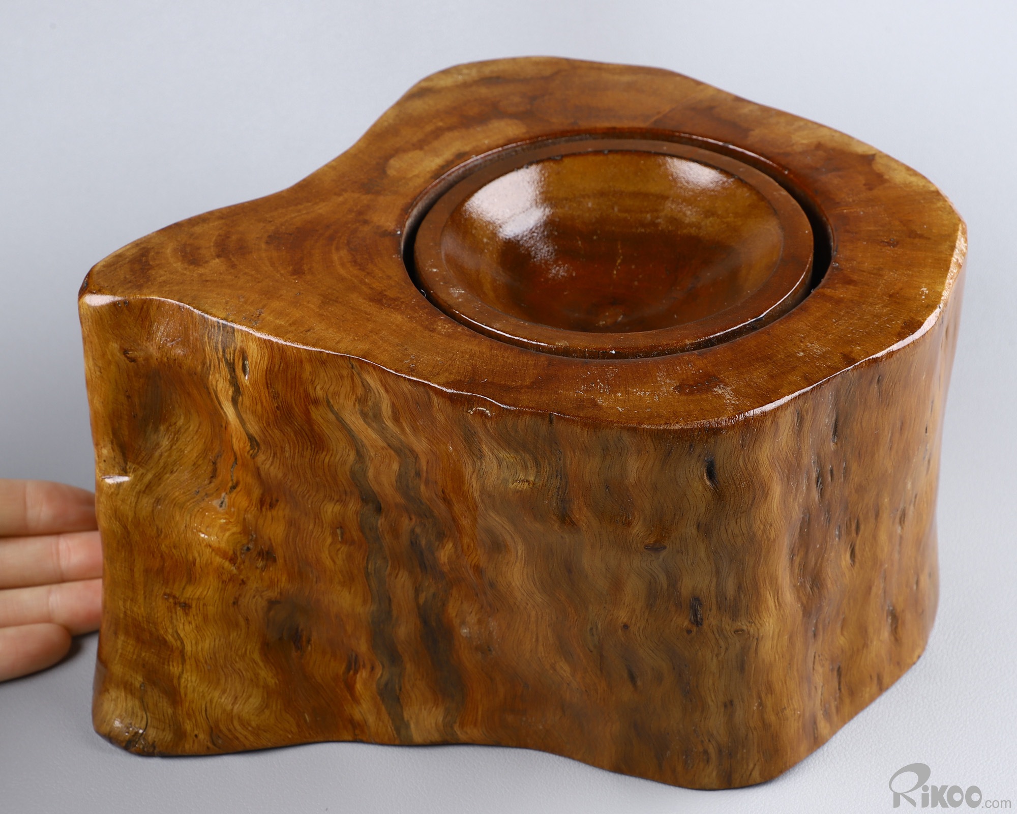 9.1" Wood Carved Crystal Sphere stand, Realistic