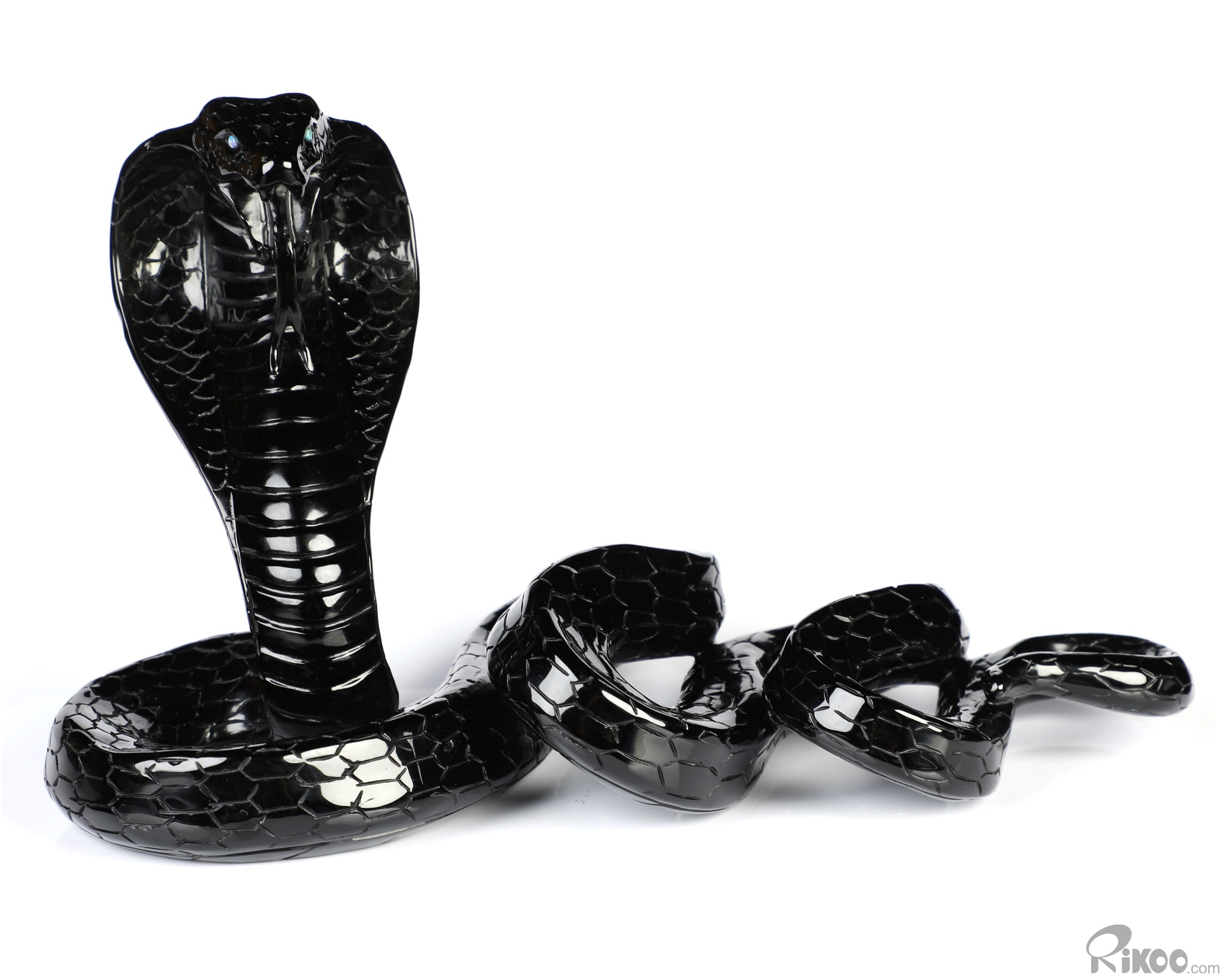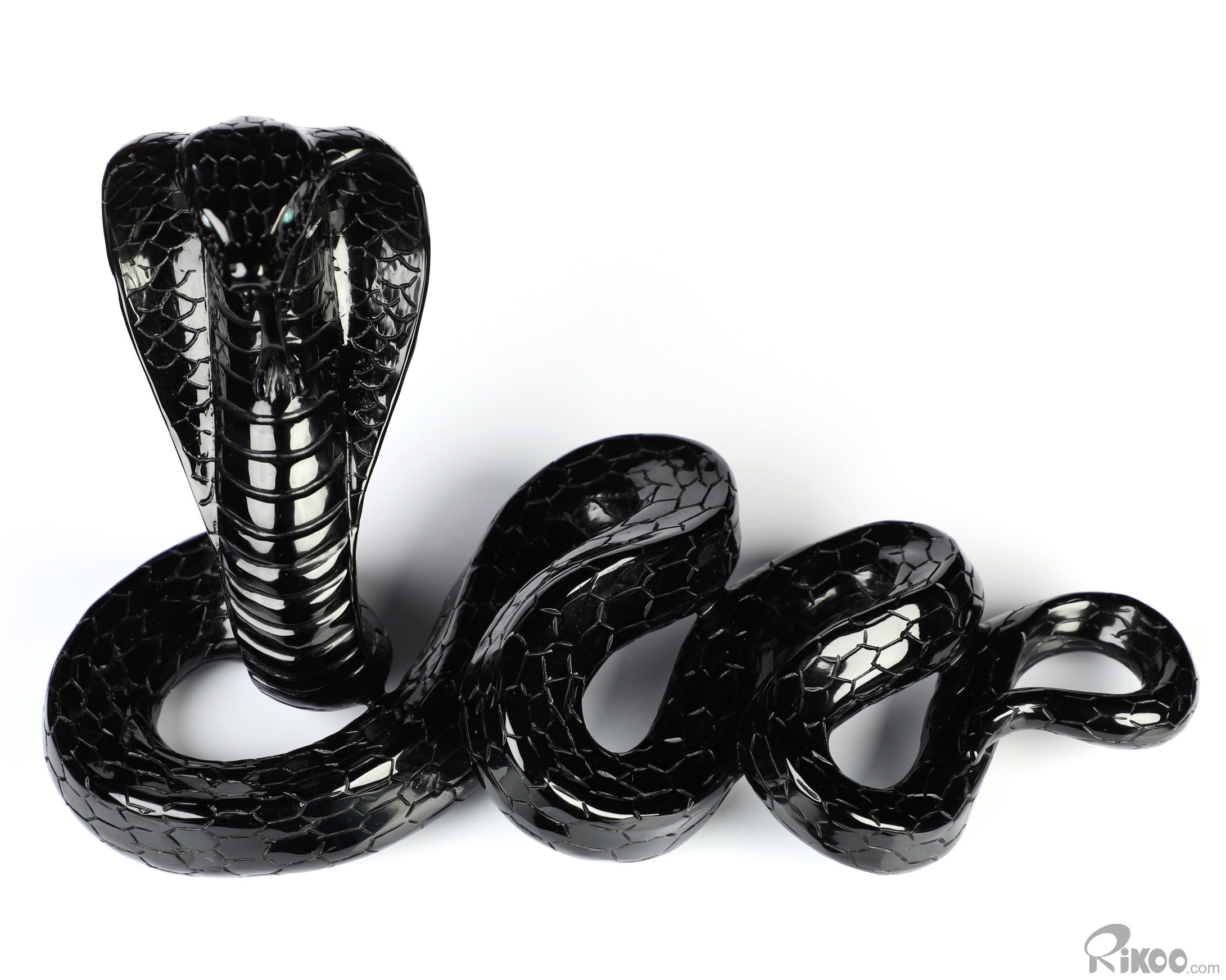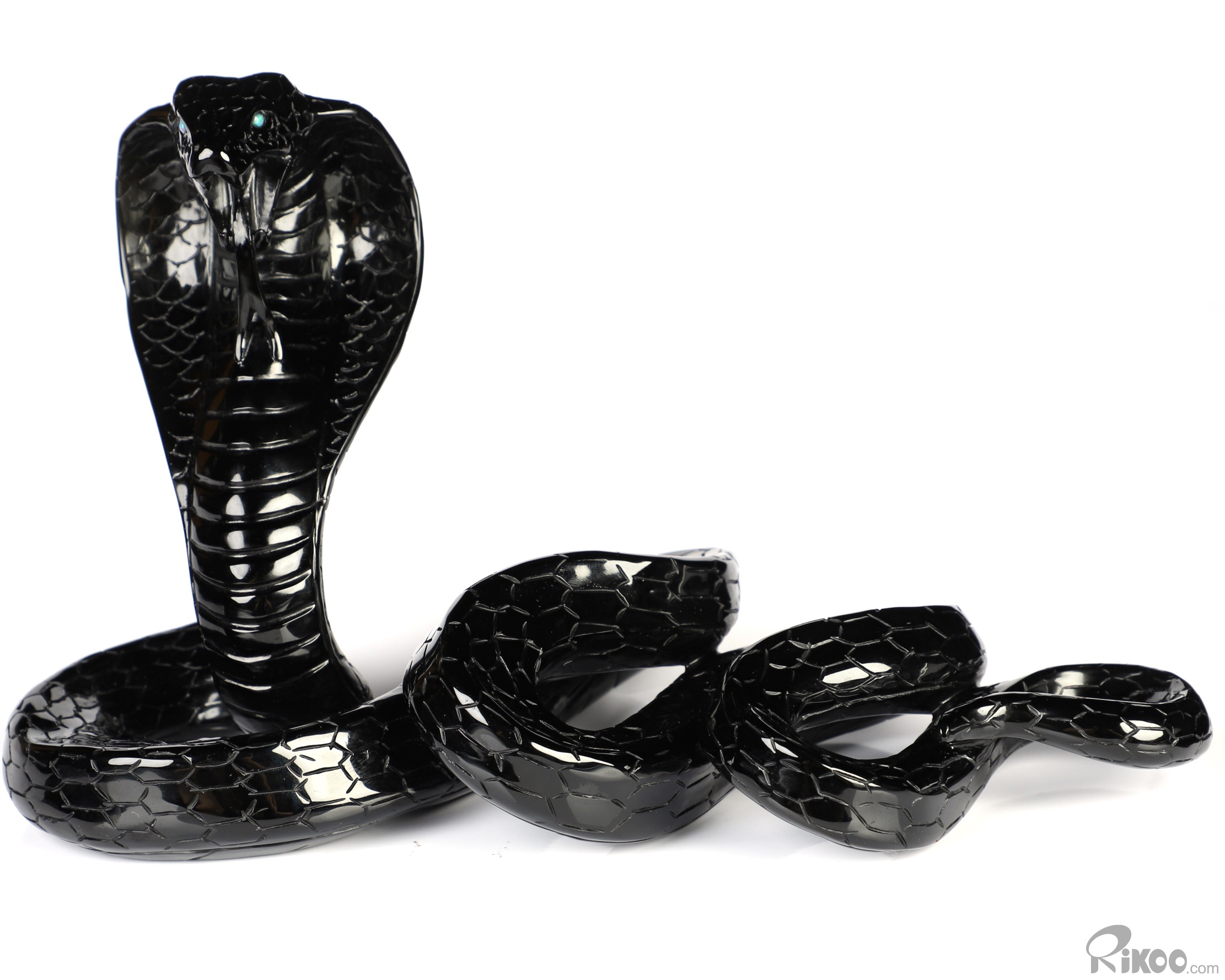 9.2" Black Obsidian Hand Carved Crystal Snake Sculpture, Crystal Healing
