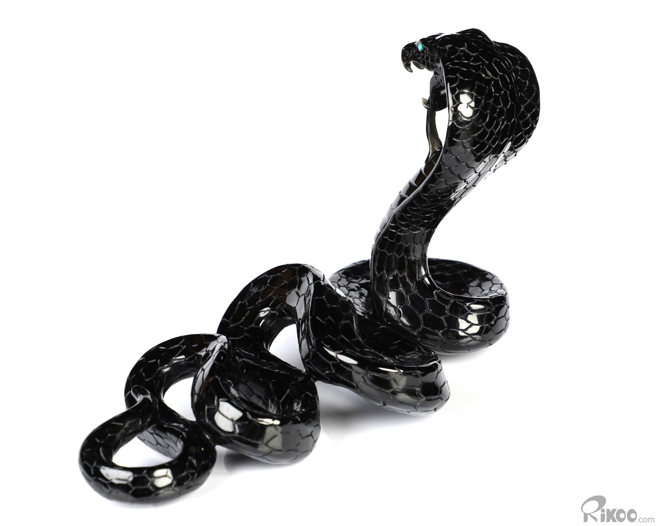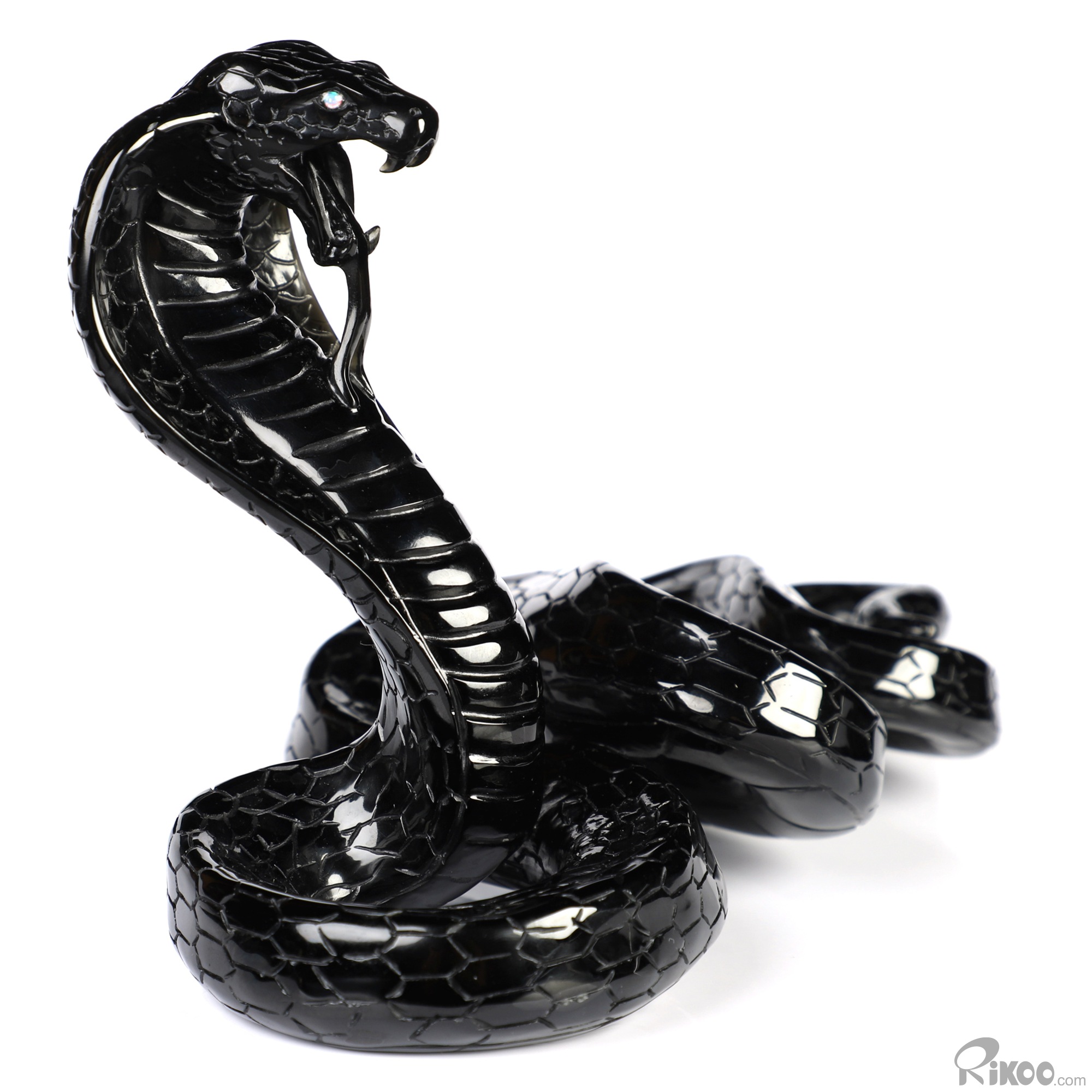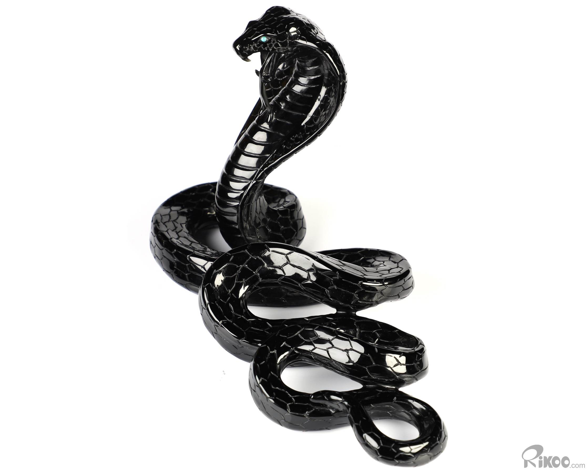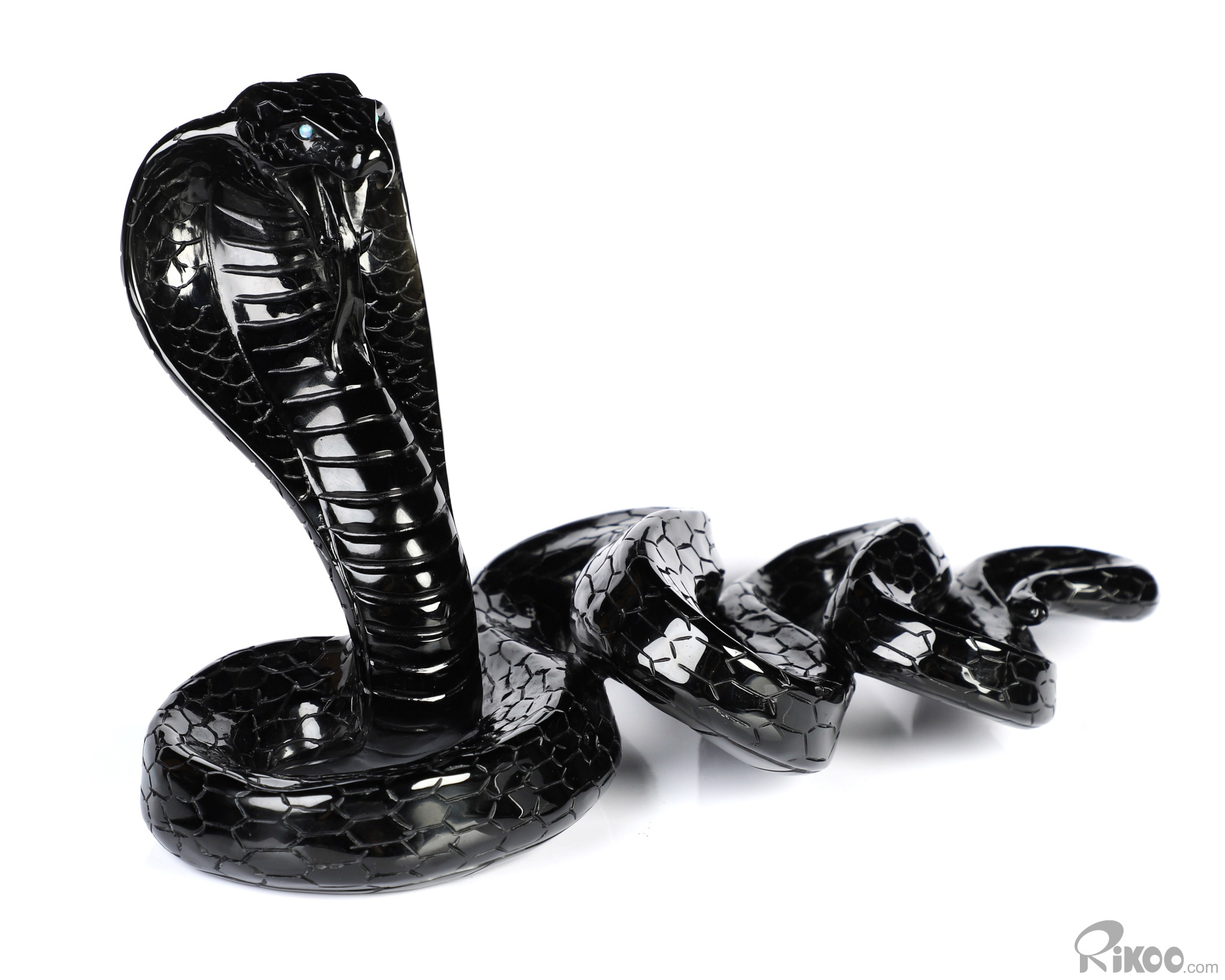 9.2" Black Obsidian Hand Carved Crystal Snake Sculpture, Crystal Healing