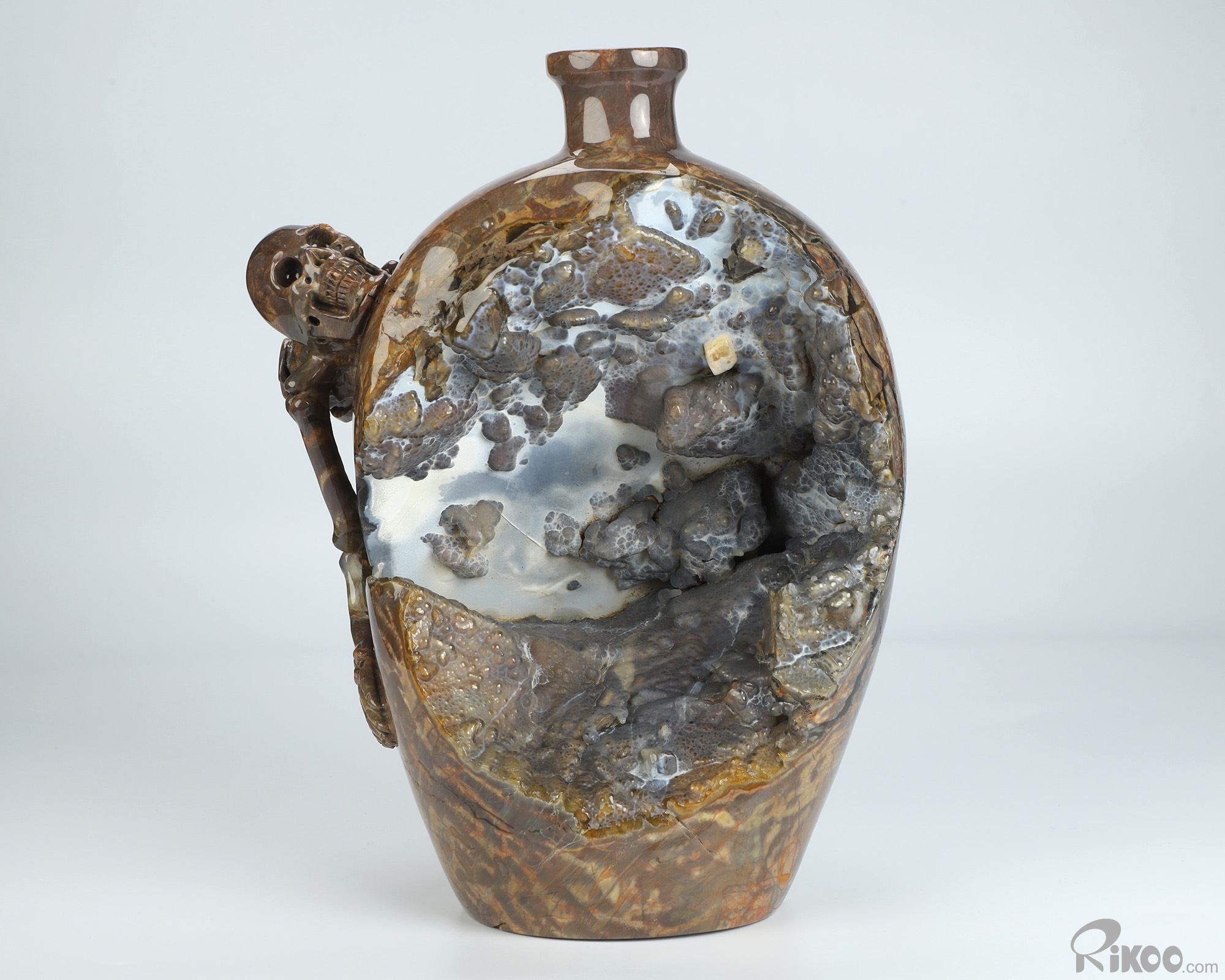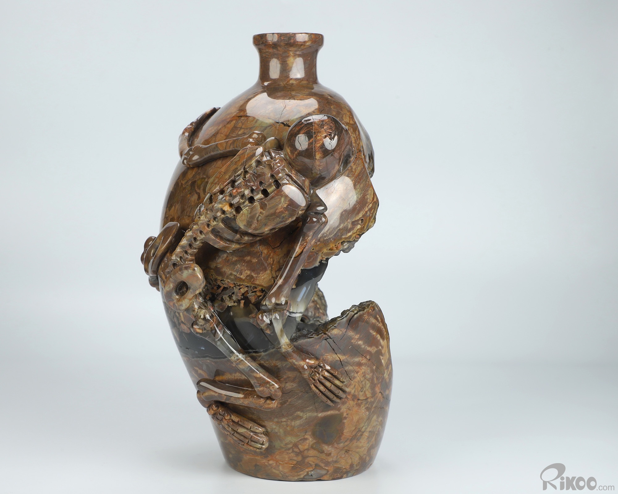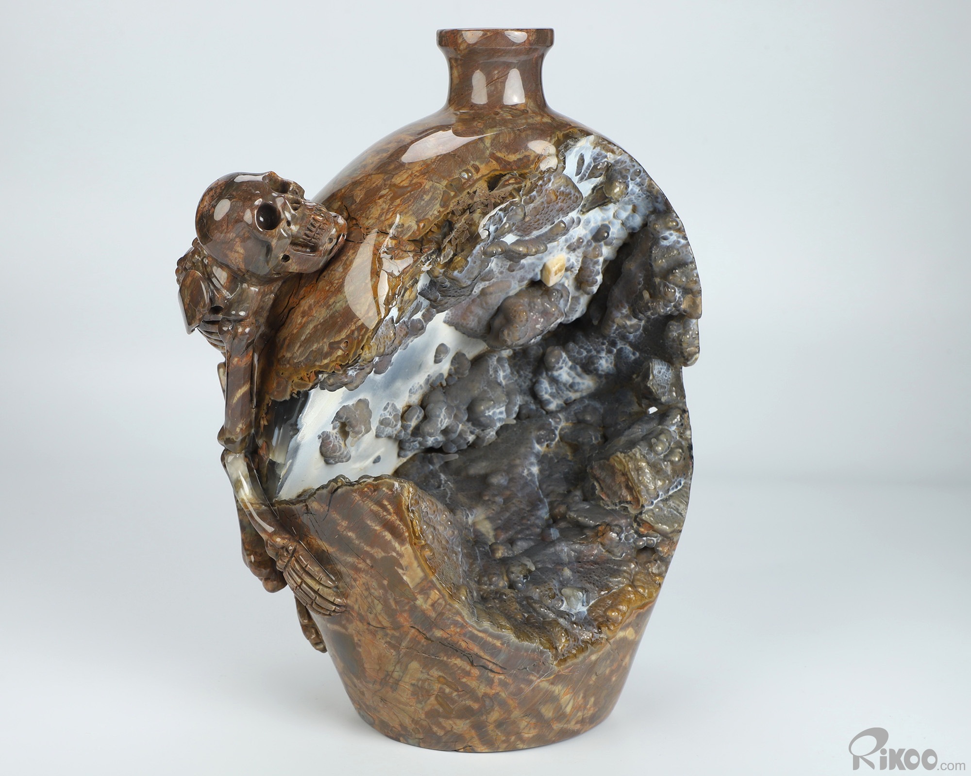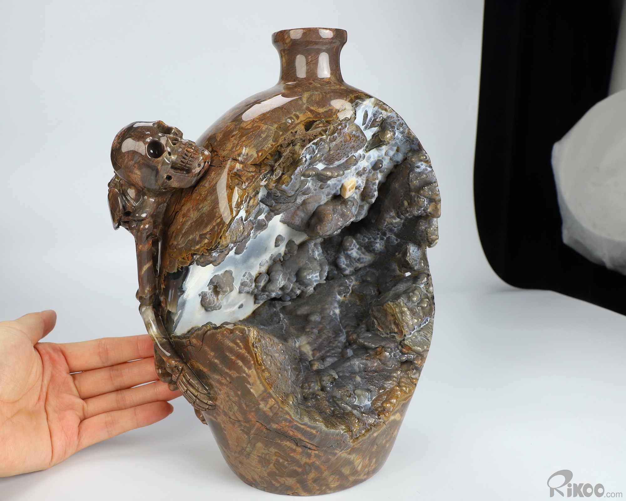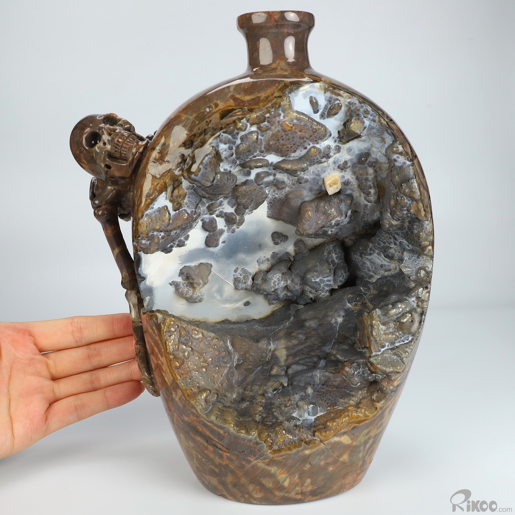 9.3" Dinosaur Egg Agate Hand Carved Crystal Vase and Skeleton Sculpture, Crystal Healing