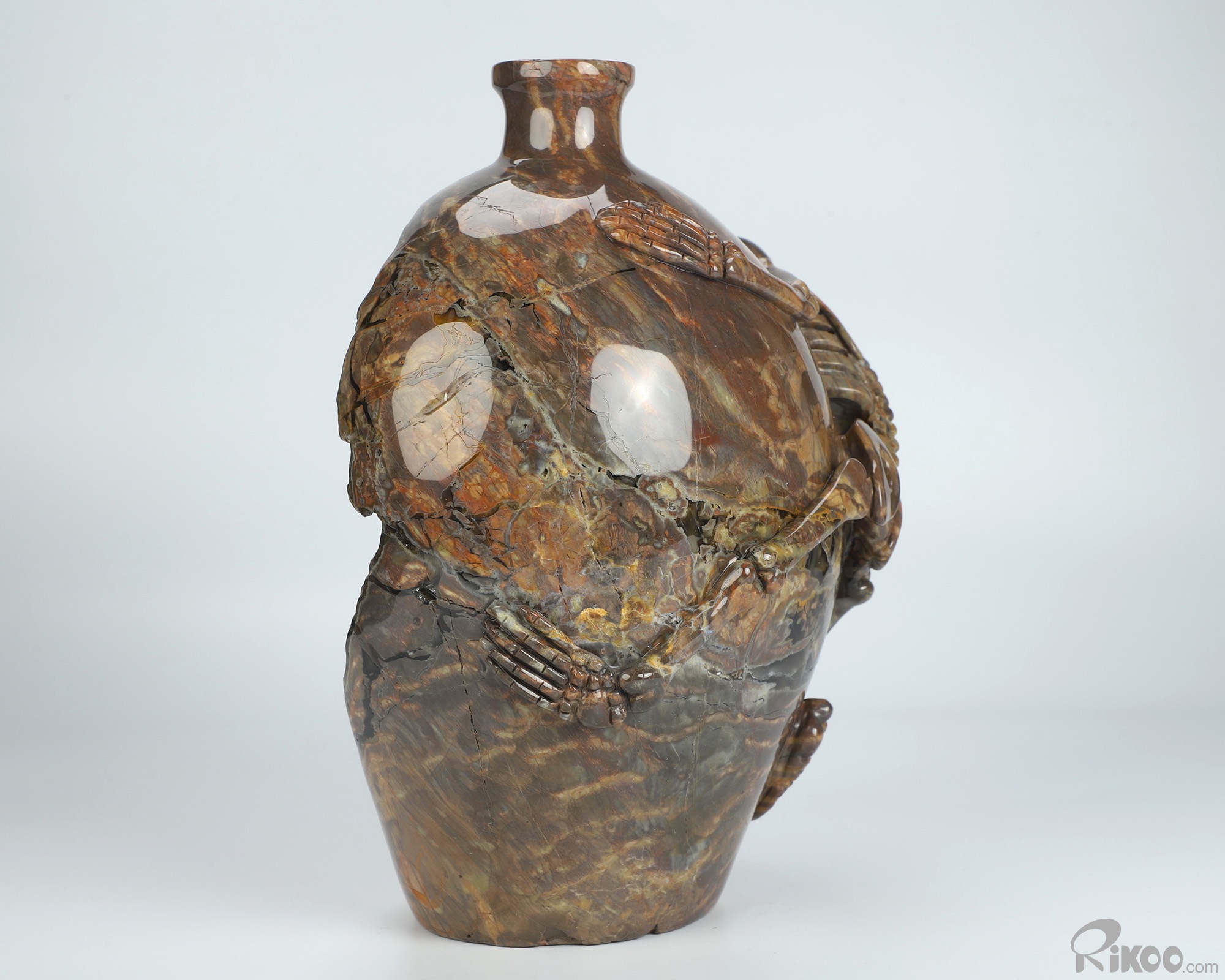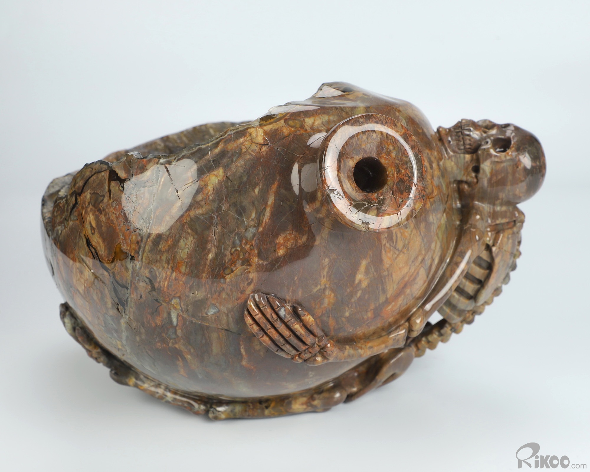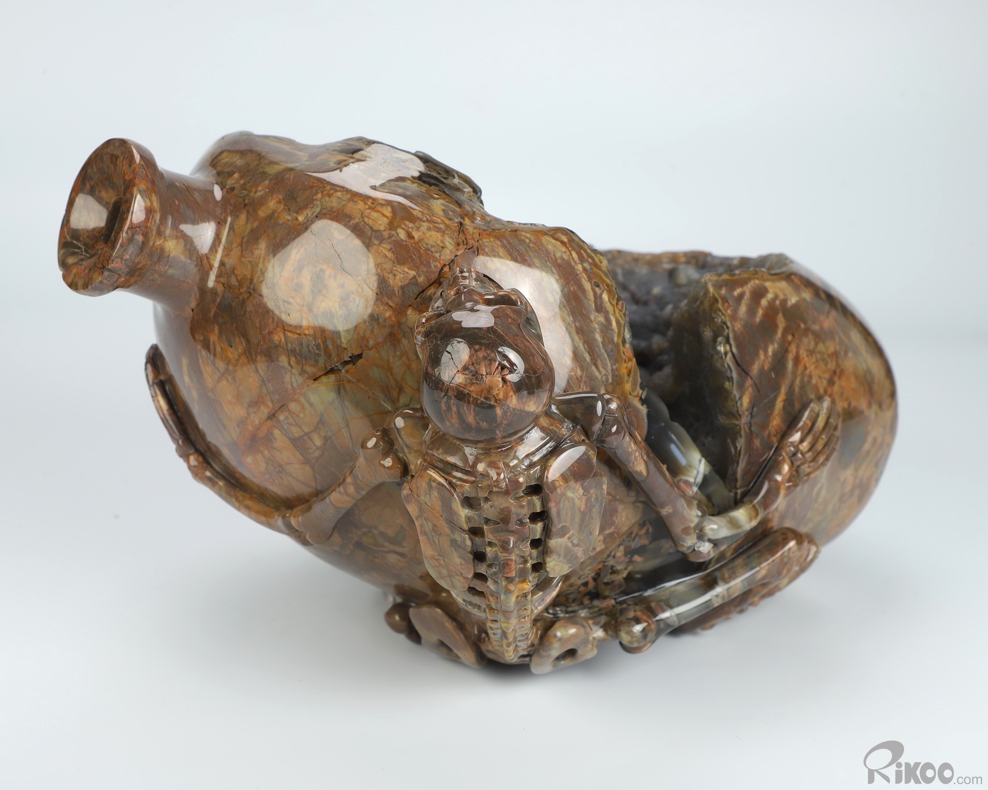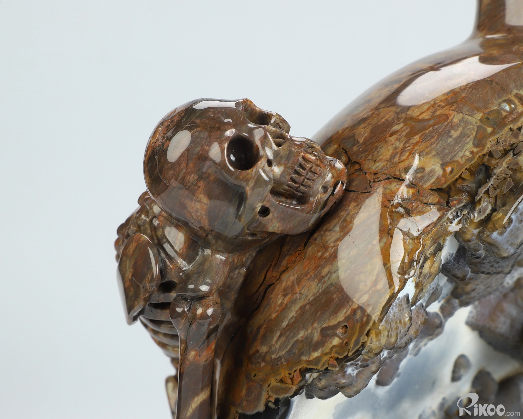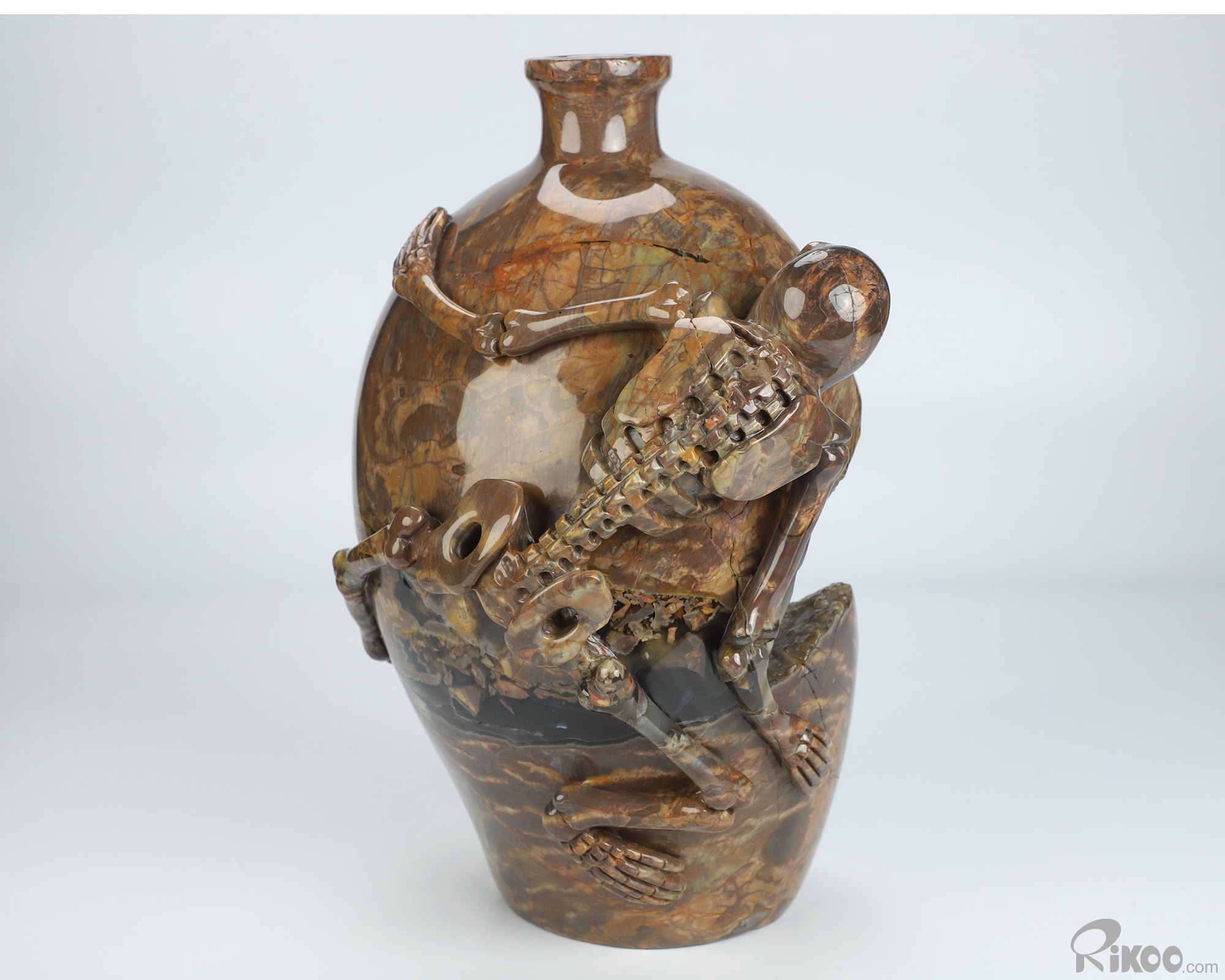 9.3" Dinosaur Egg Agate Hand Carved Crystal Vase and Skeleton Sculpture, Crystal Healing