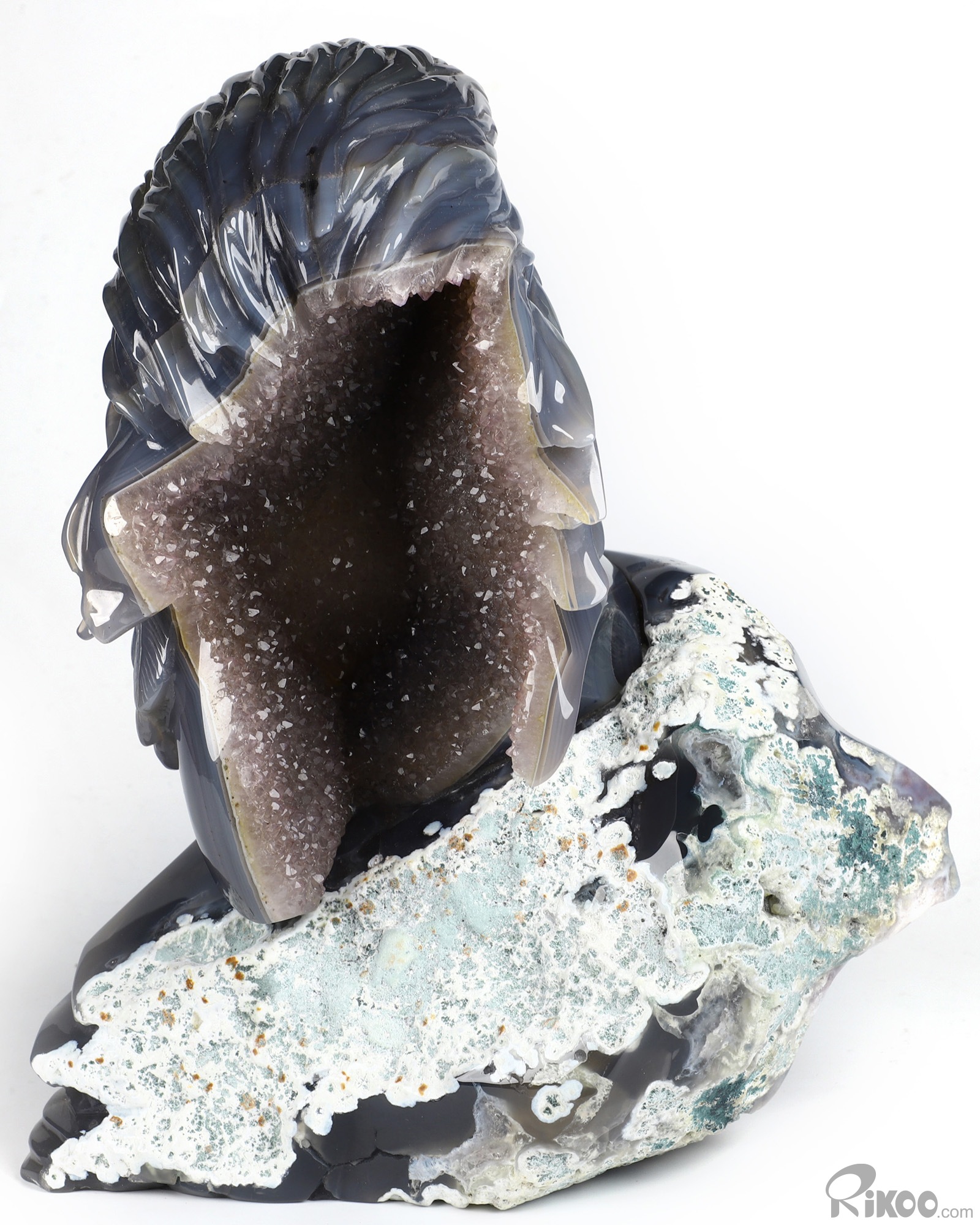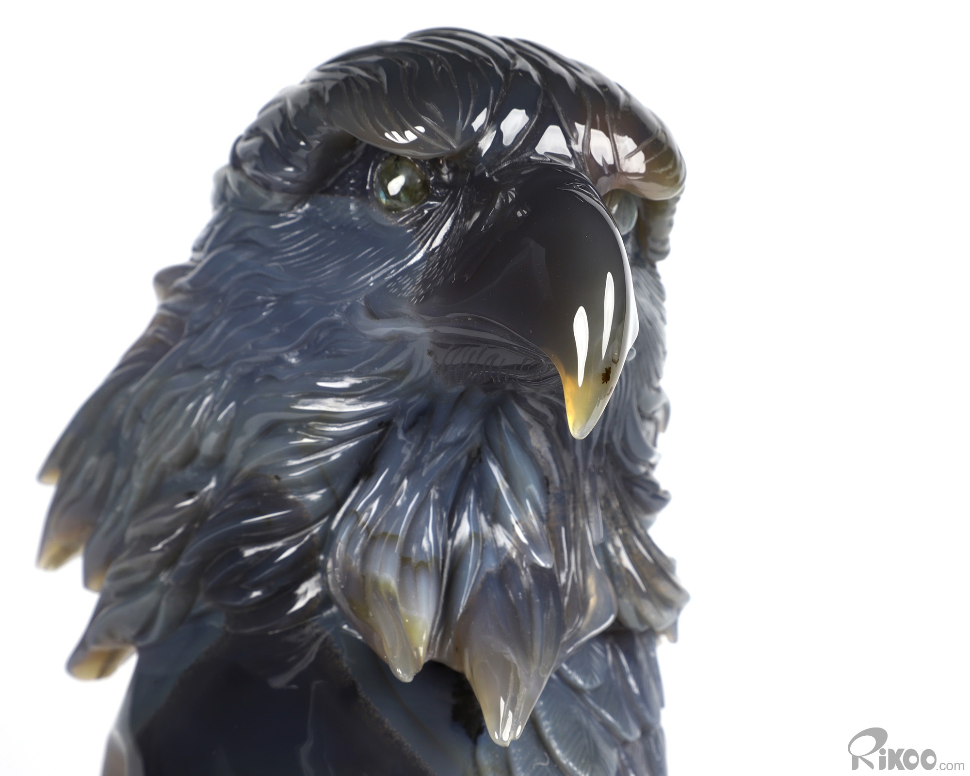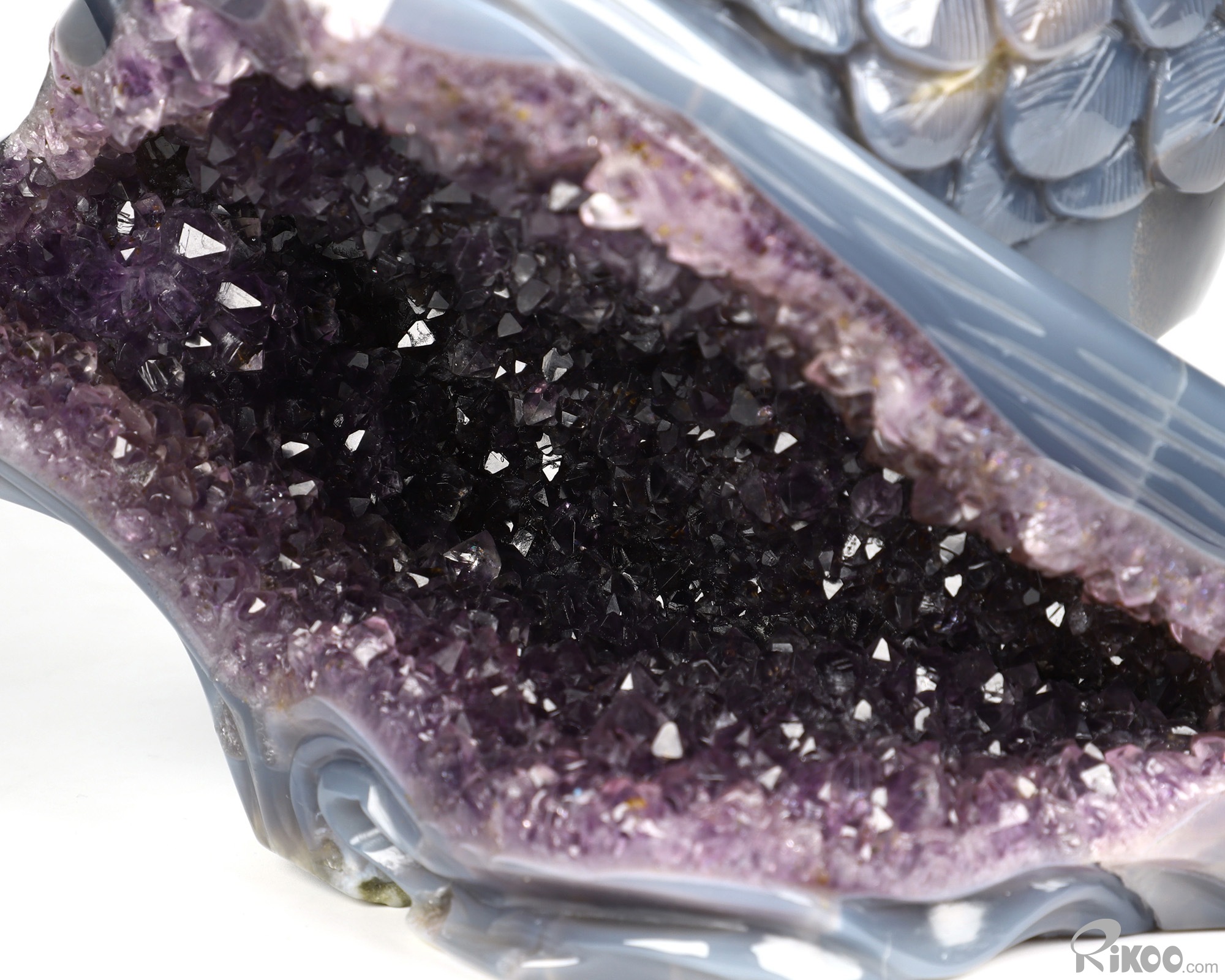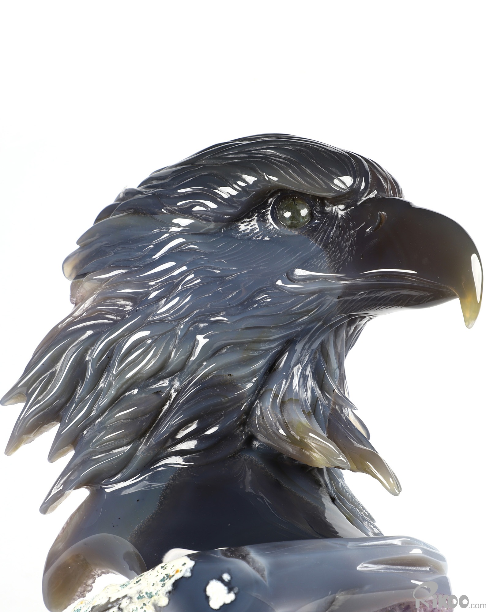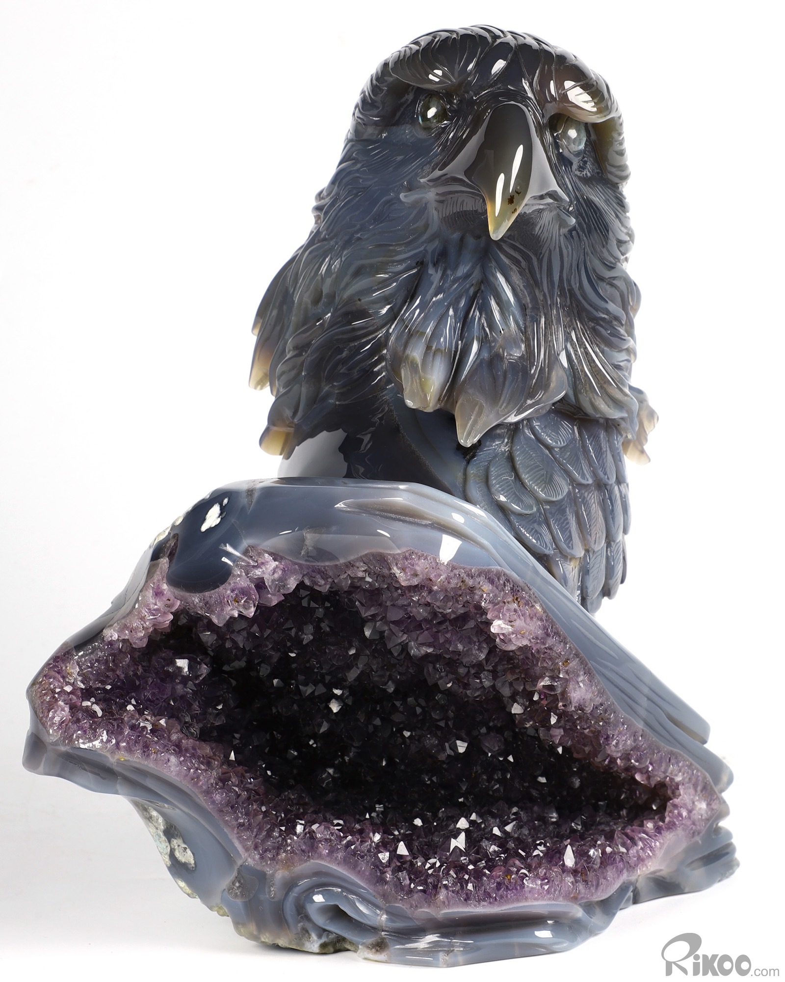 9.4" Agate Amethyst Geode Carved Crystal Eagle Sculpture, Realistic, Crystal Healing