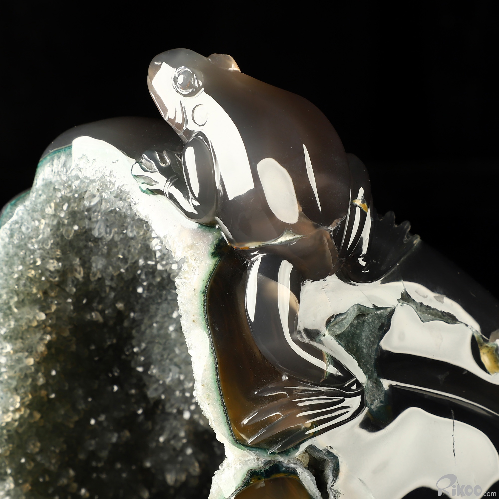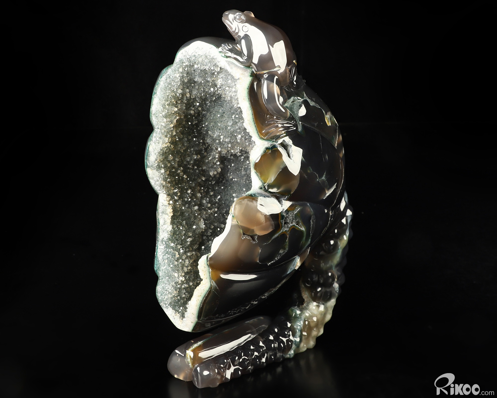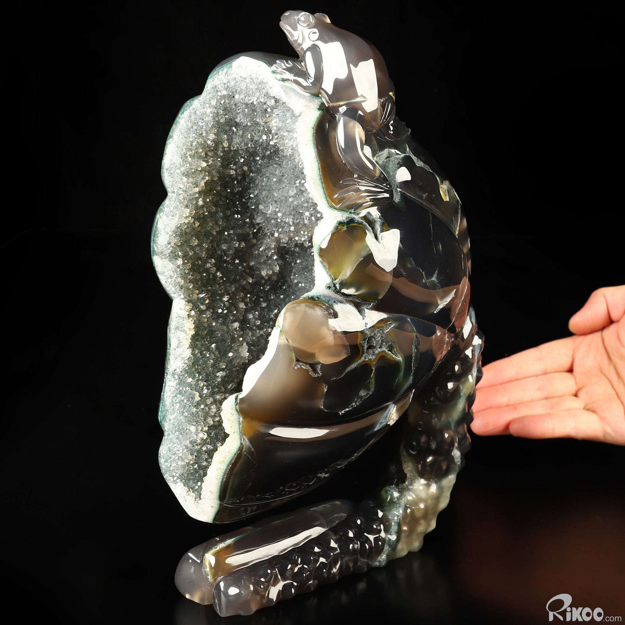 9.4" Agate Geode Hand Carved Crystal Frog Sculpture, Crystal Healing