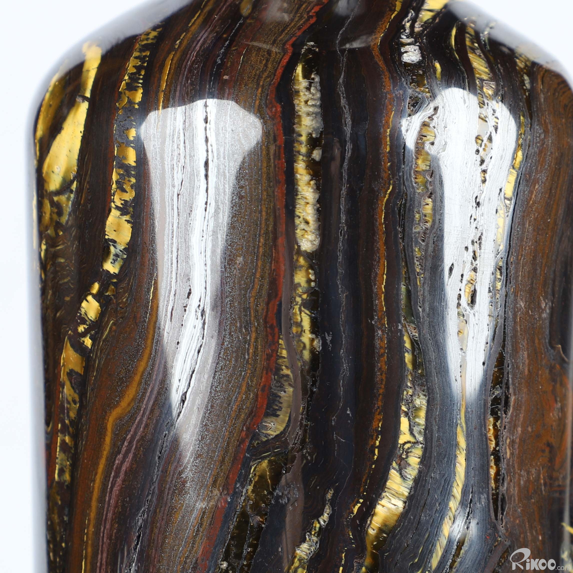 You are looking at a Colorful Tiger Iron Eye sculpture. The sculpture is 9.4 inches long.