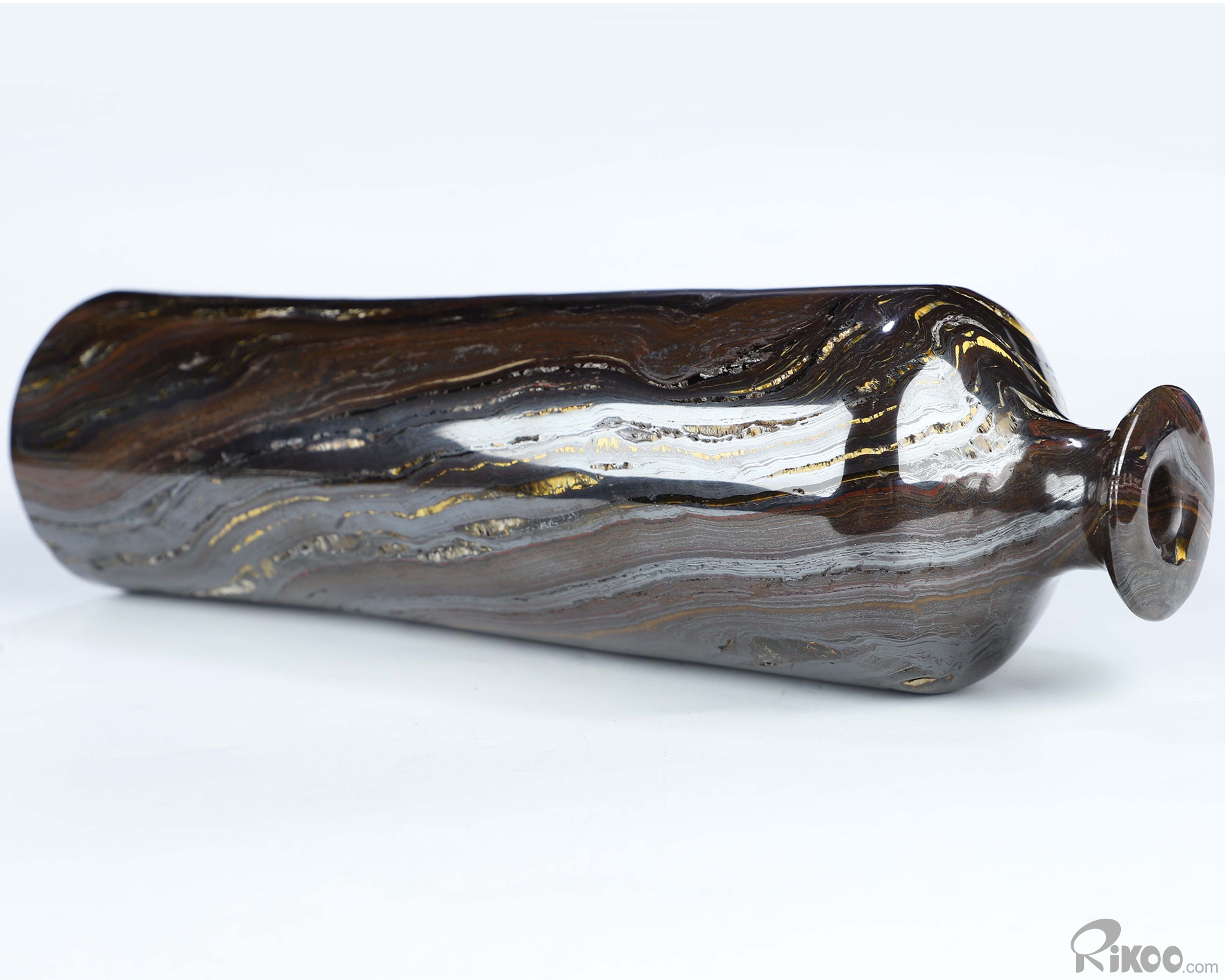 9.4" Colorful Tiger Iron Eye Hand Carved Crystal Vase Sculpture, Crystal Healing