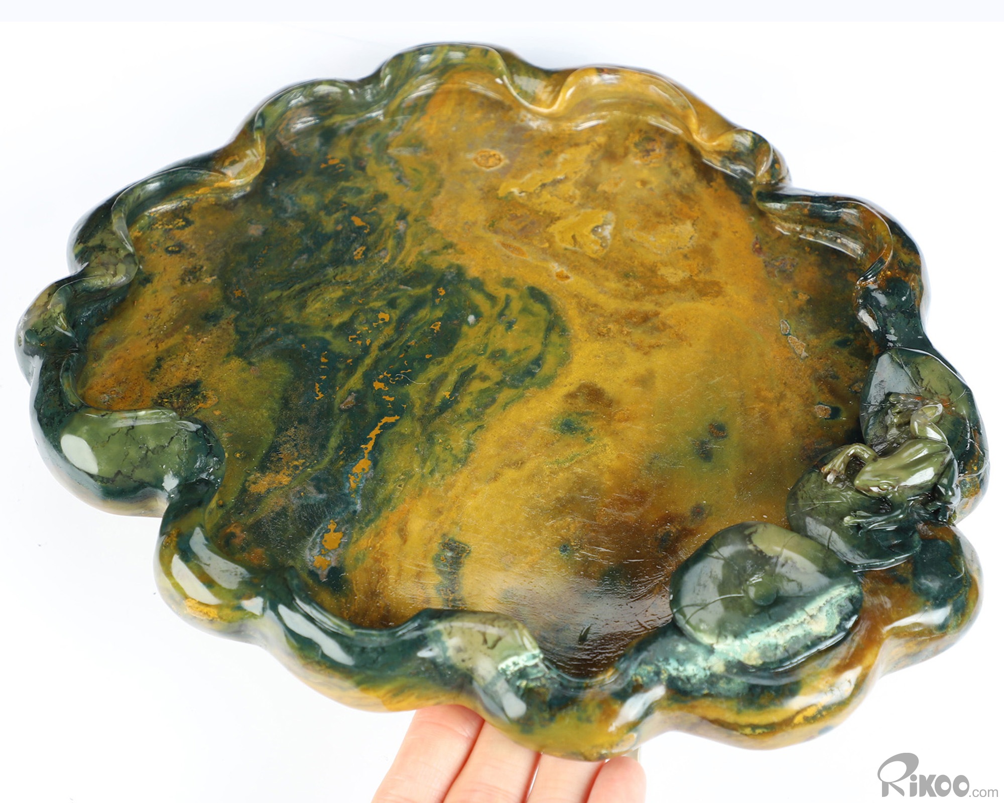 9.4" Indian Agate Hand Carved Crystal Storage Box, Crystal Healing