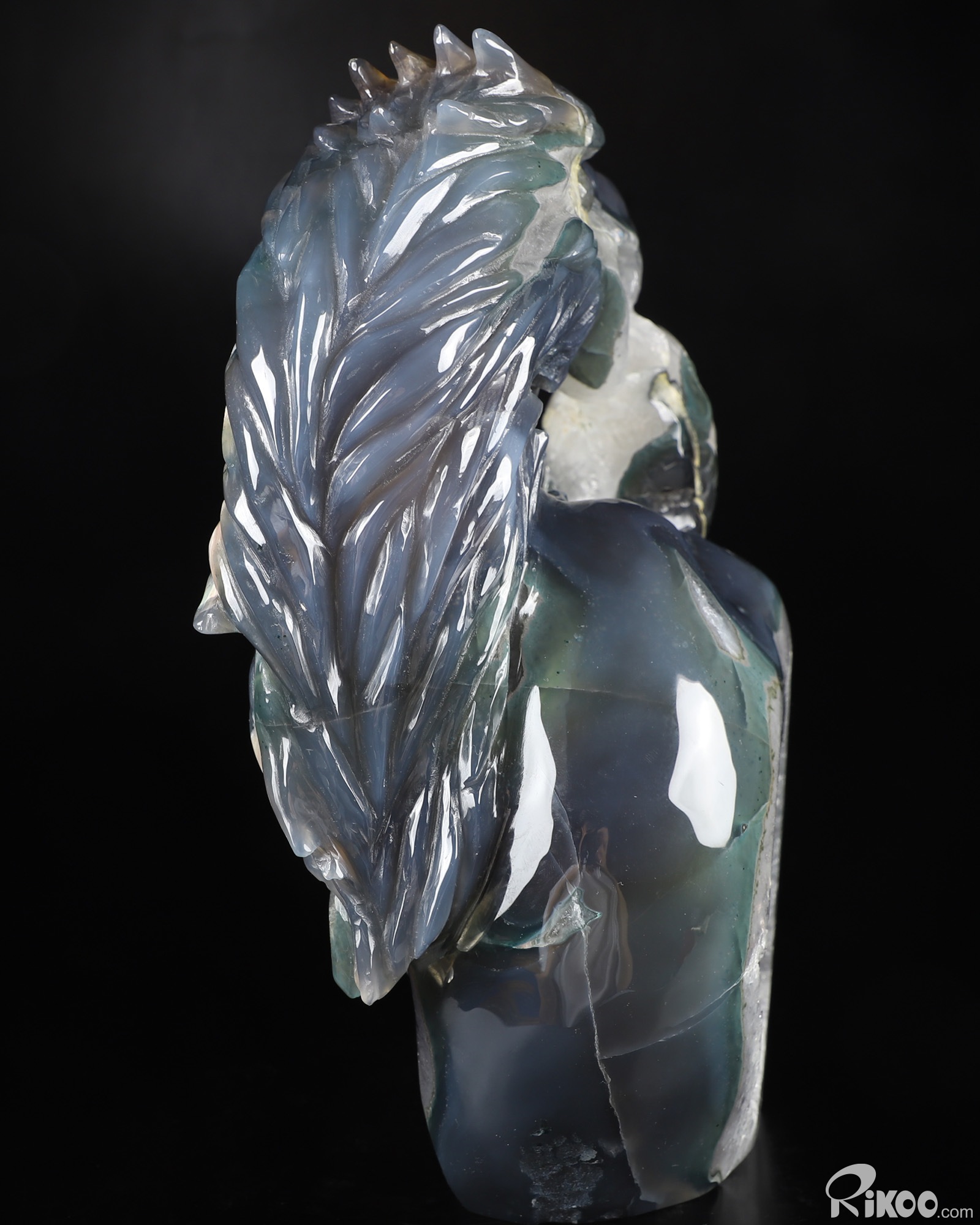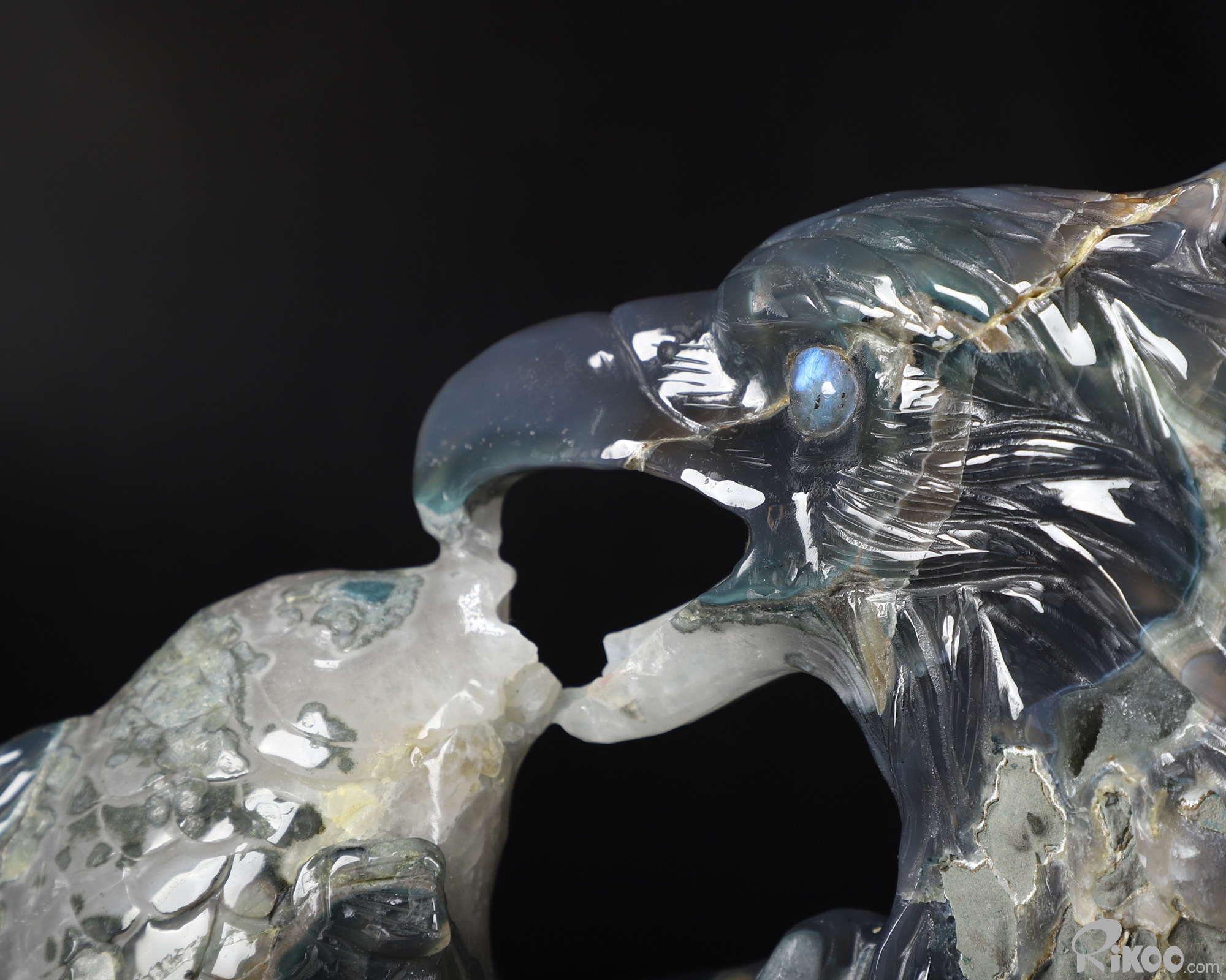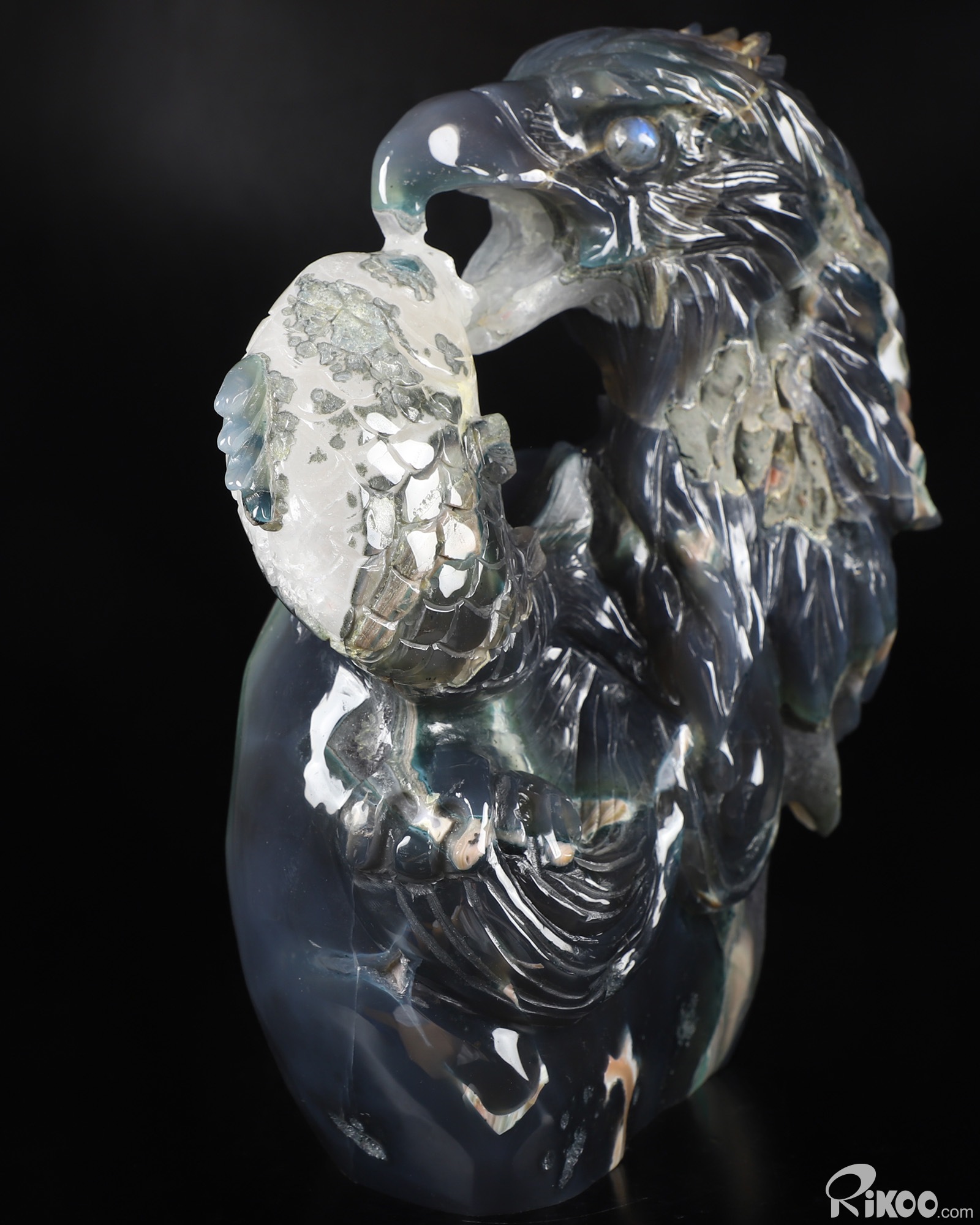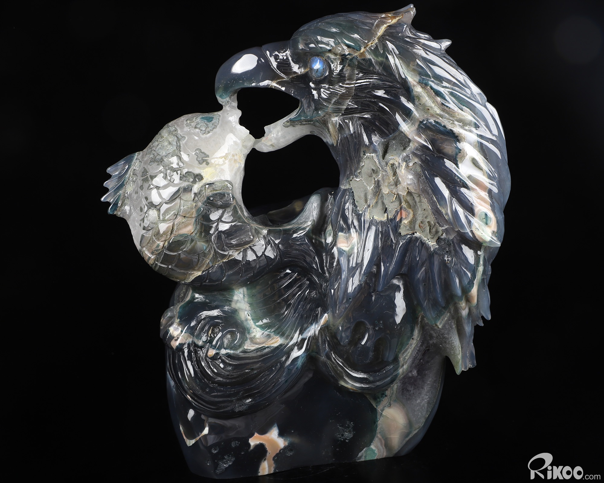 9.6" Agate Geode Carved Art Crystal Eagle & Fish Sculpture, Crystal Healing
