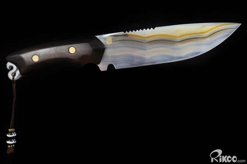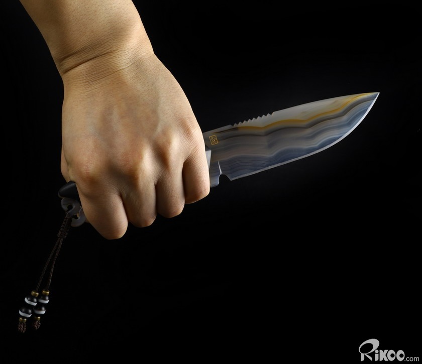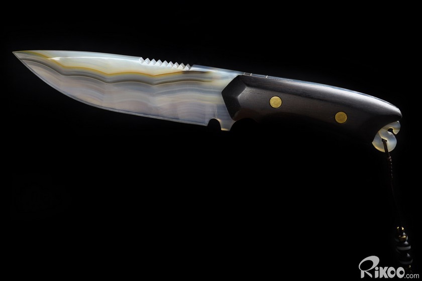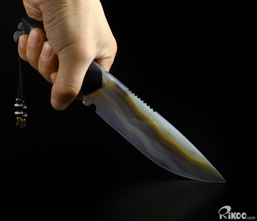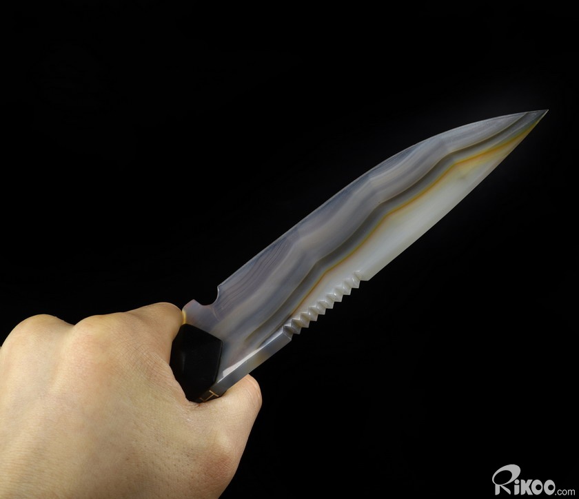 9.6" Gray & White Agate Carved Crystal Knife, Realistic