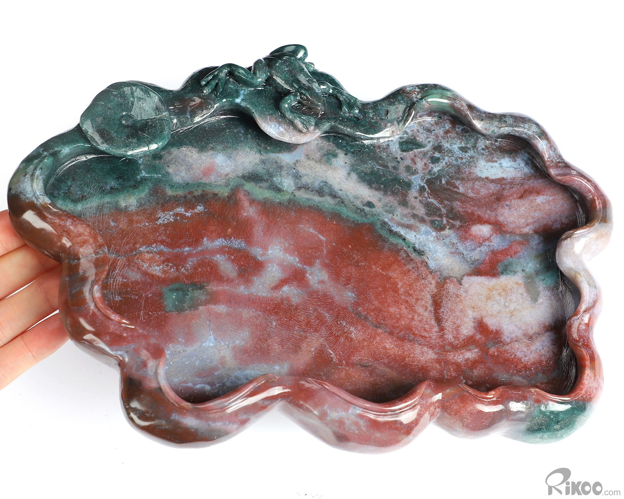 You are looking at a Indian Agate sculpture. The sculpture is 9.6 inches long.