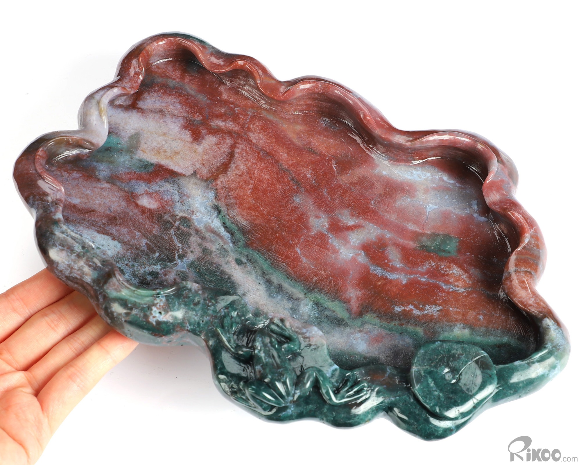 9.6" Indian Agate Hand Carved Crystal Frog Sculpture, Crystal Healing