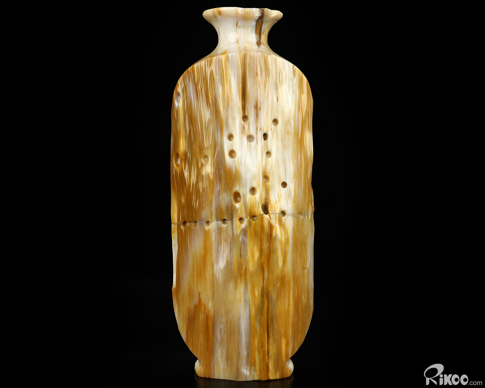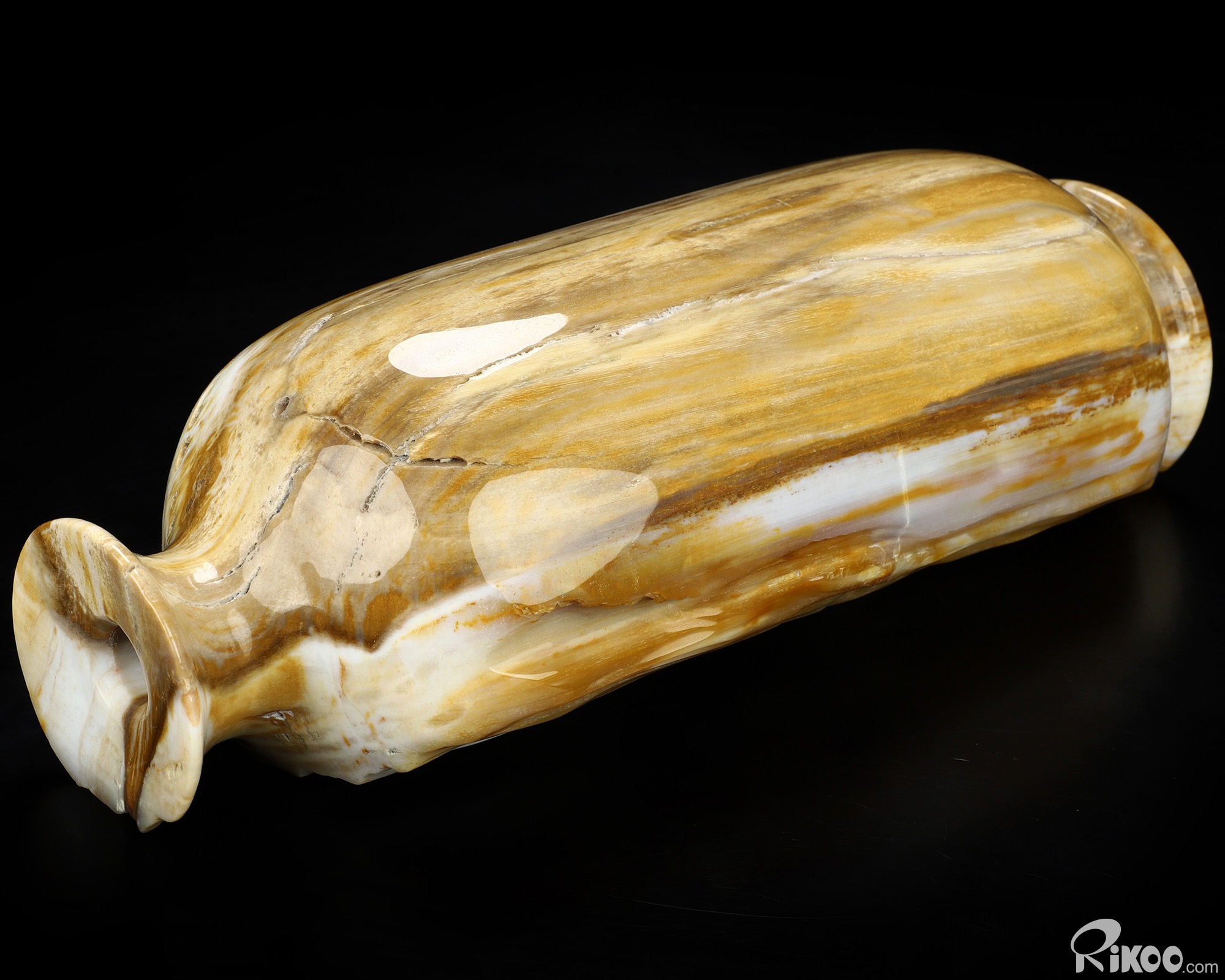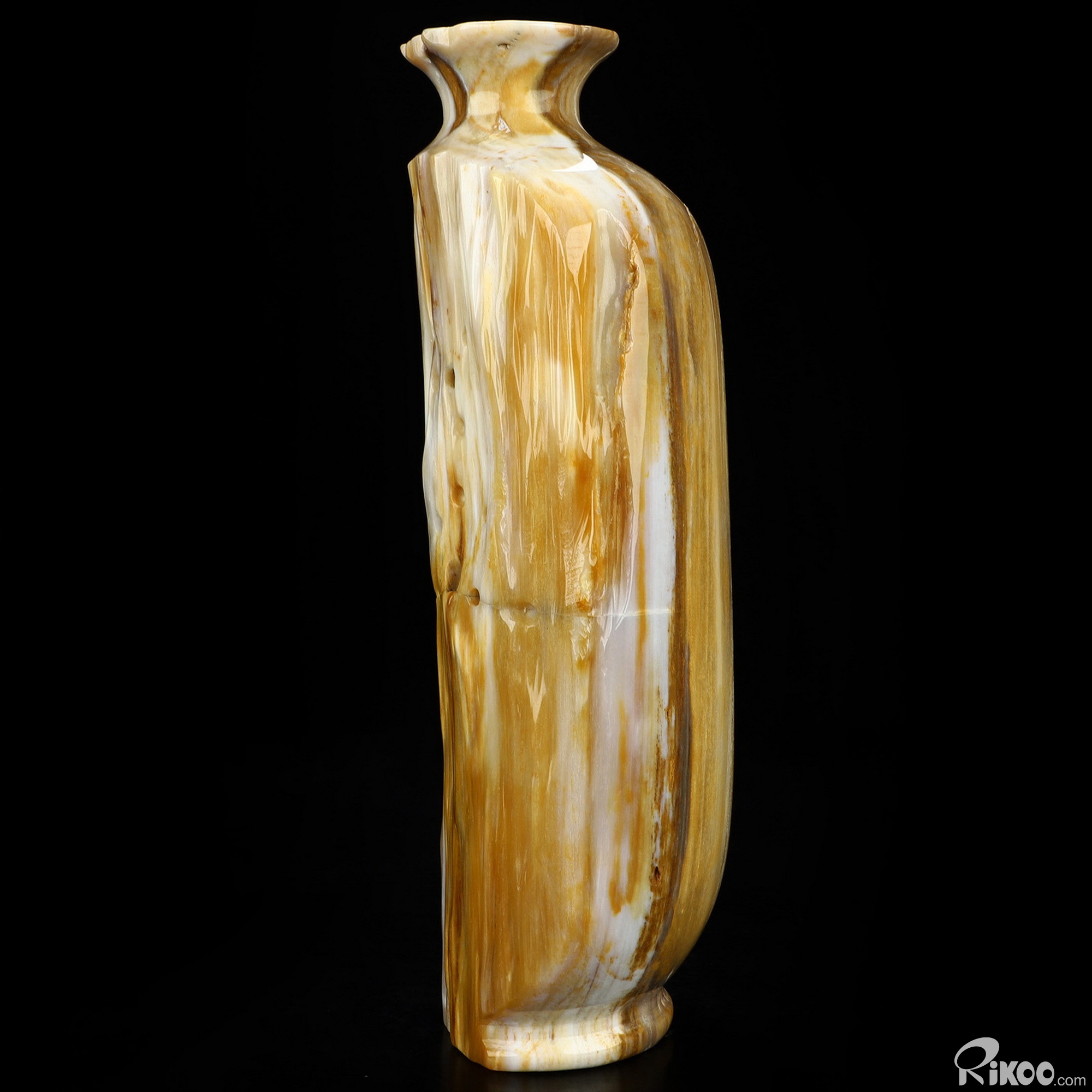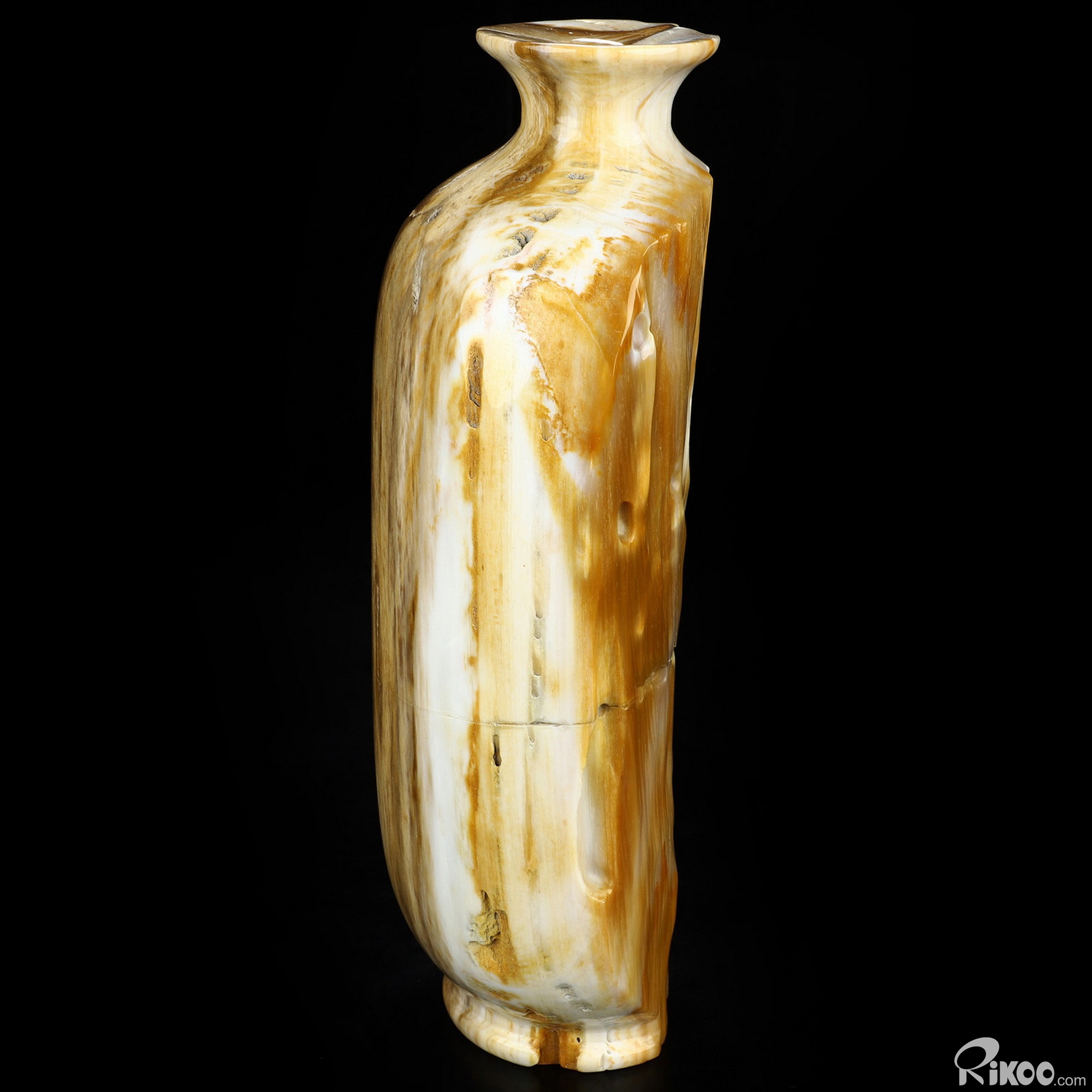 This vase with limited functionality is mainly for display.This "stone" is most noted in helping us to investigate past-life experiences. Makes the user more aware of nature. It is a warm earthy stone, which is used at the Root Chakra, encouraging ones survival instincts and is grounding. Petrified Wood is also believed to energize the Heart Chakra. In mythological times, petrified wood was believed to possess divine power and to this day, stands as a symbol of man's true connection to the natural world. This stone helps with mental longevity, helping to sooth emotions, generating calm and relieves stress.
