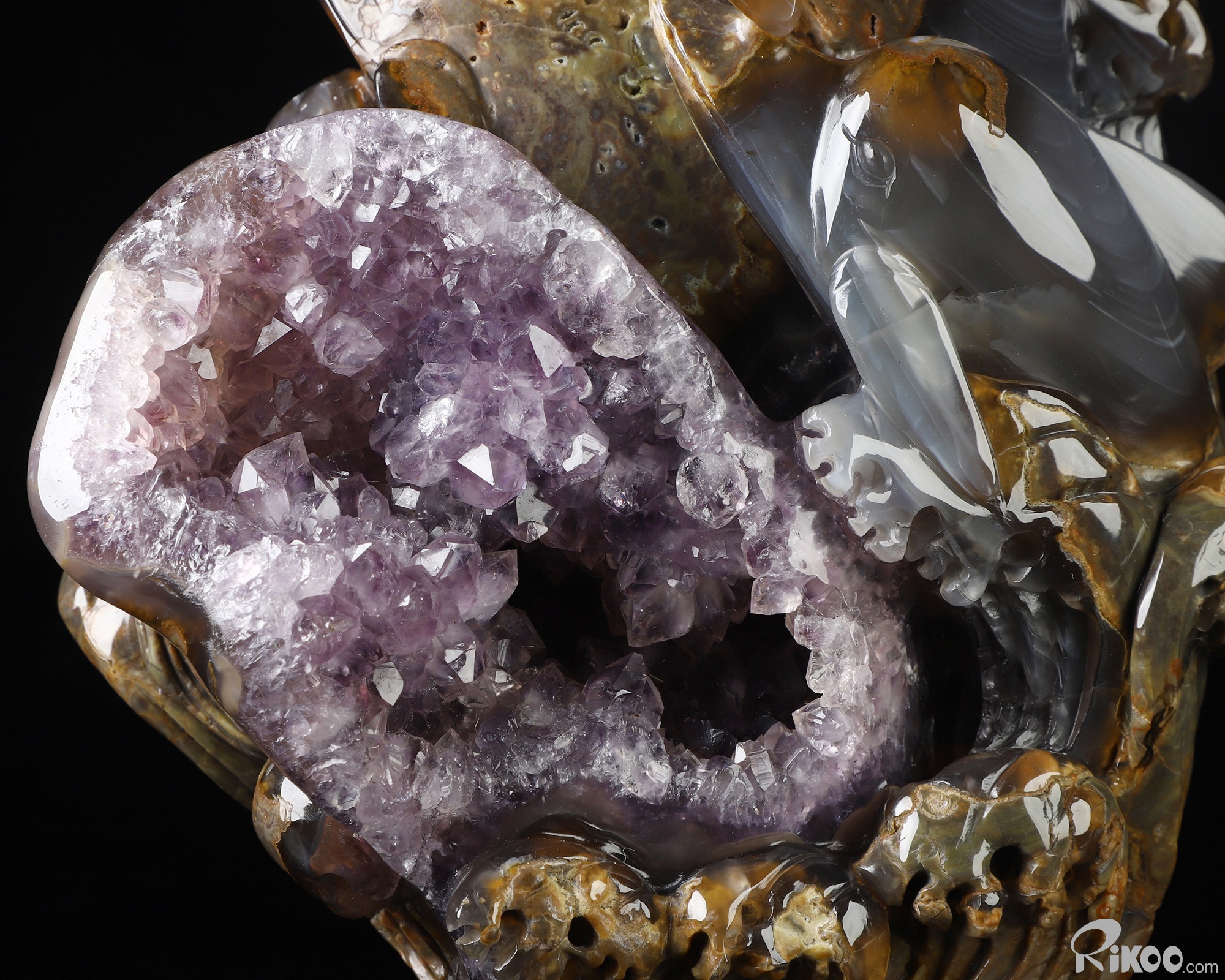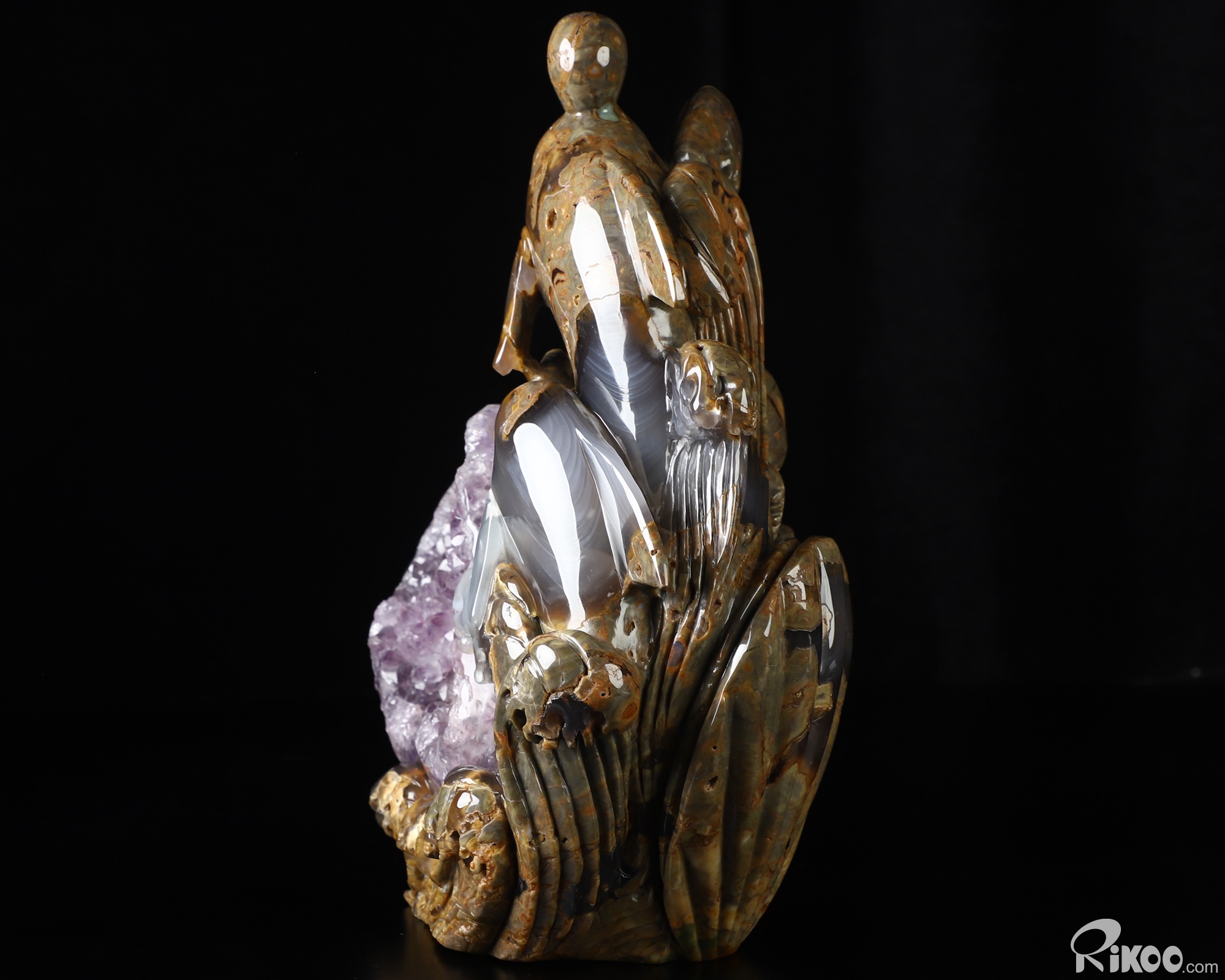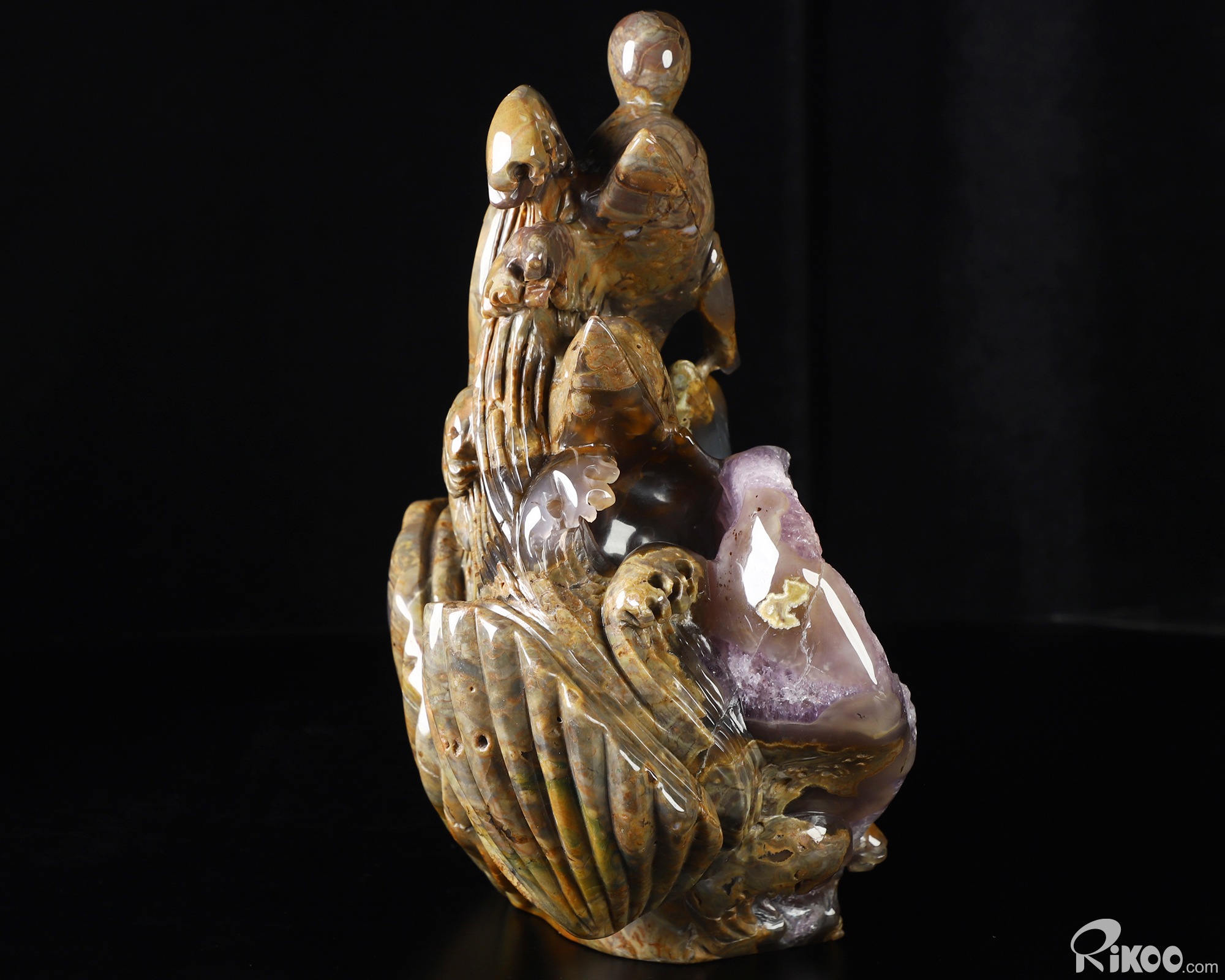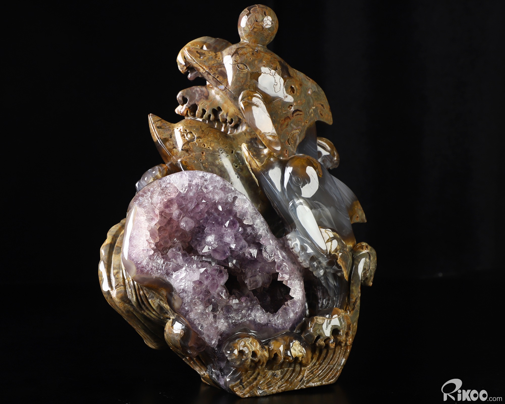 9.8" Dinosaur Egg Agate Amethyst Geode Hand Carved Crystal Dolphin Sculpture, Crystal Healing