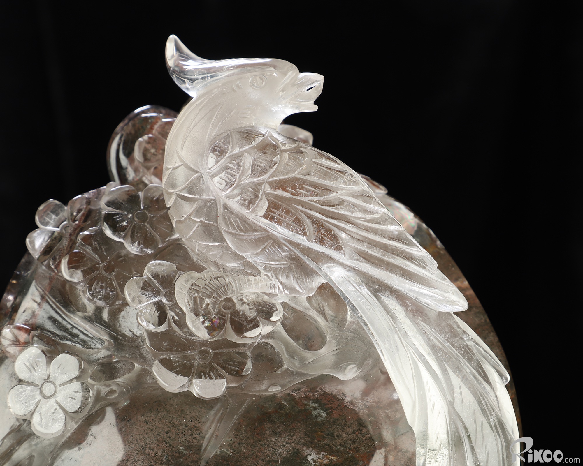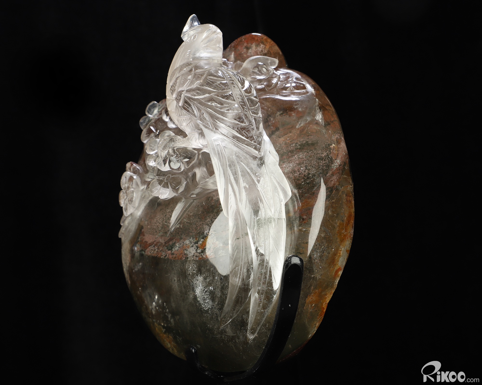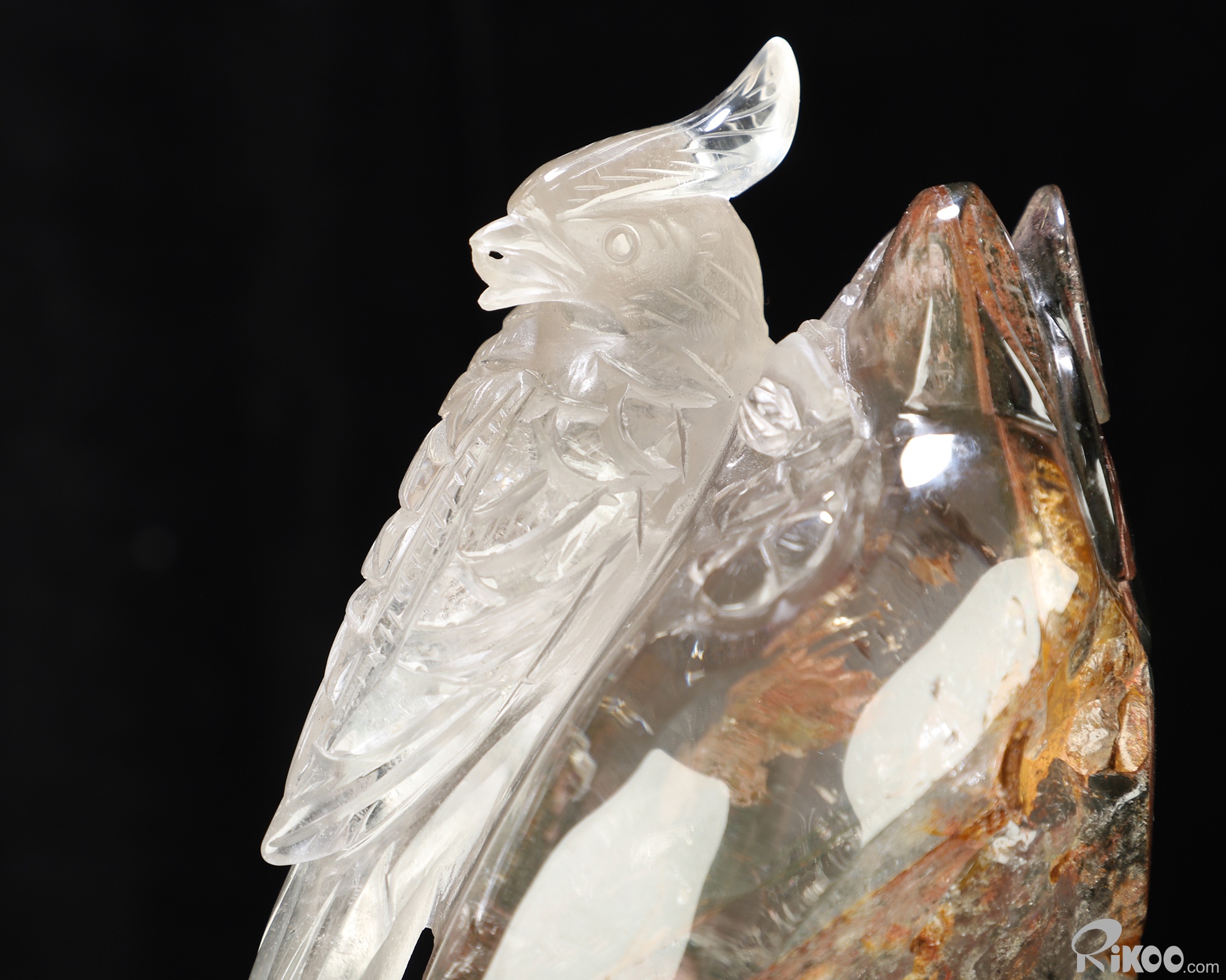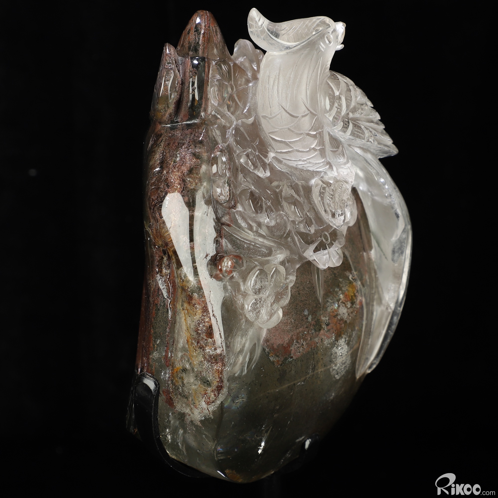 9.8" Phantom Quartz Rock Crystal Hand Carved Crystal Parrot Sculpture, Crystal Healing