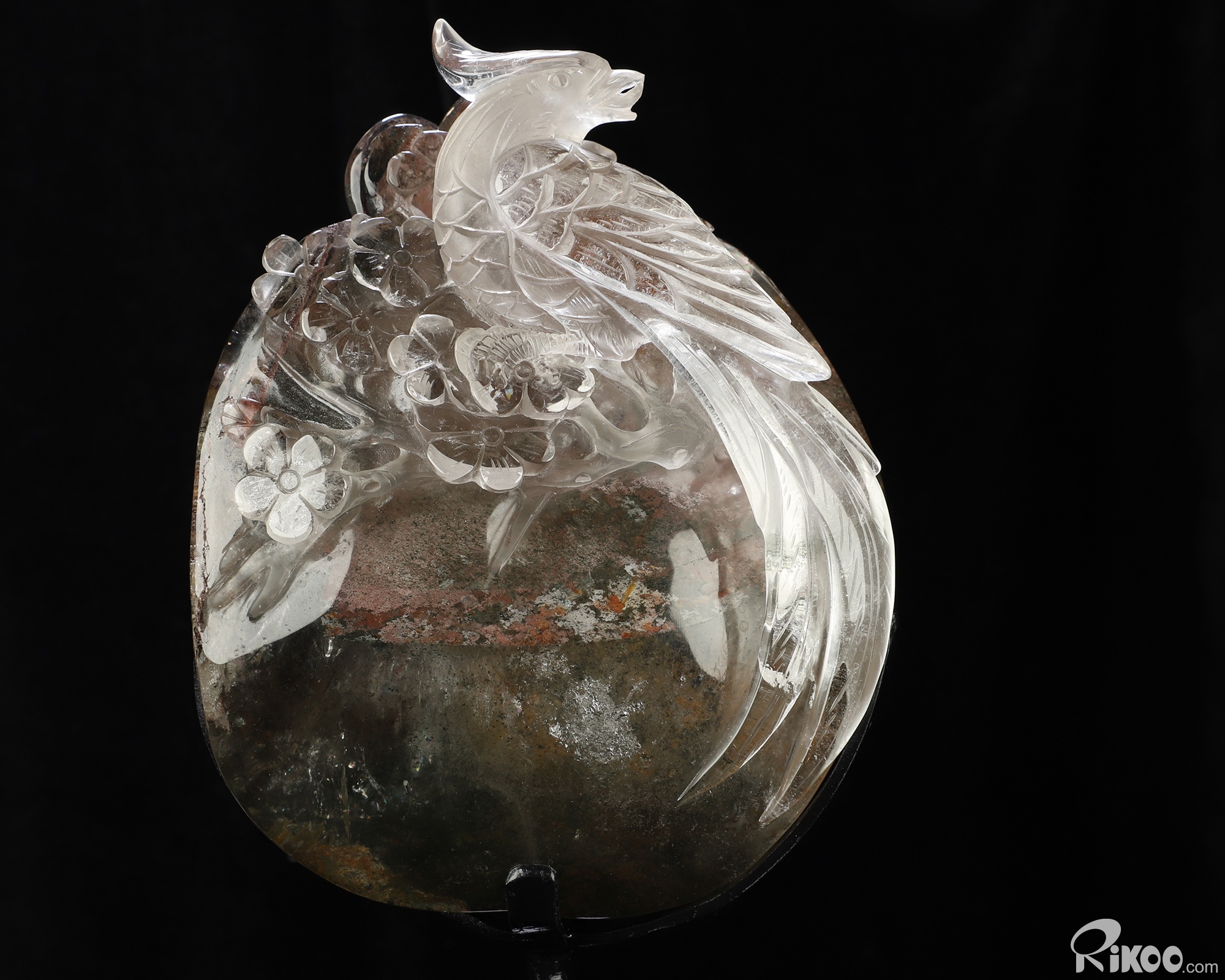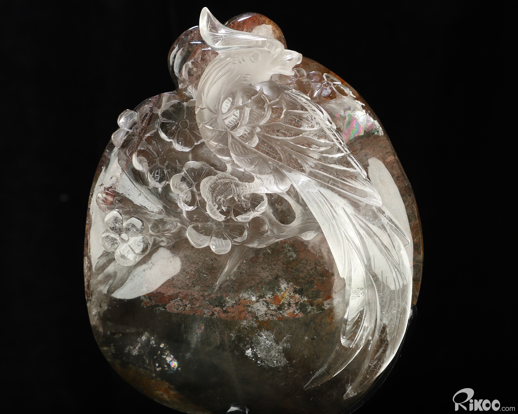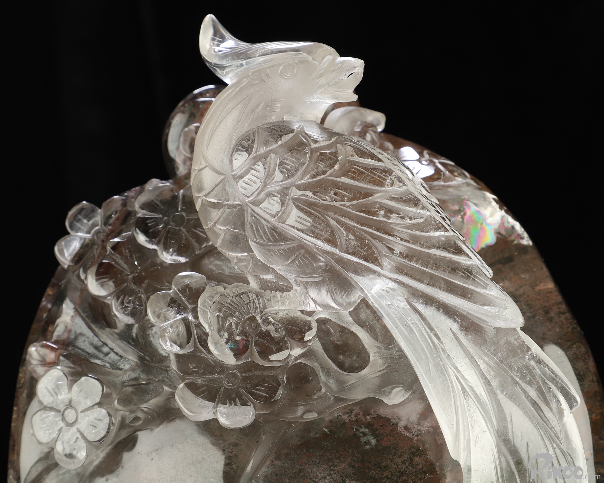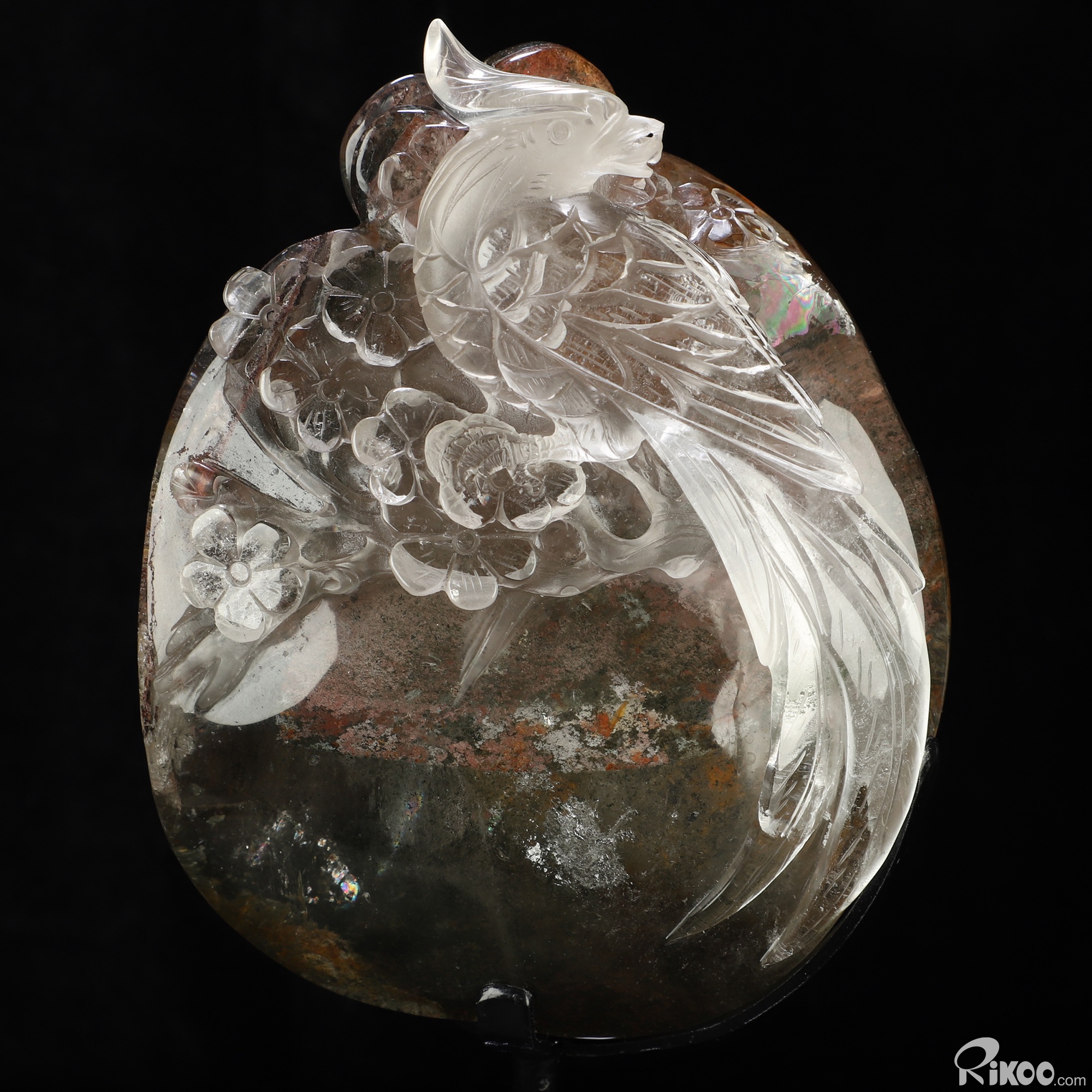 9.8" Phantom Quartz Rock Crystal Hand Carved Crystal Parrot Sculpture, Crystal Healing
