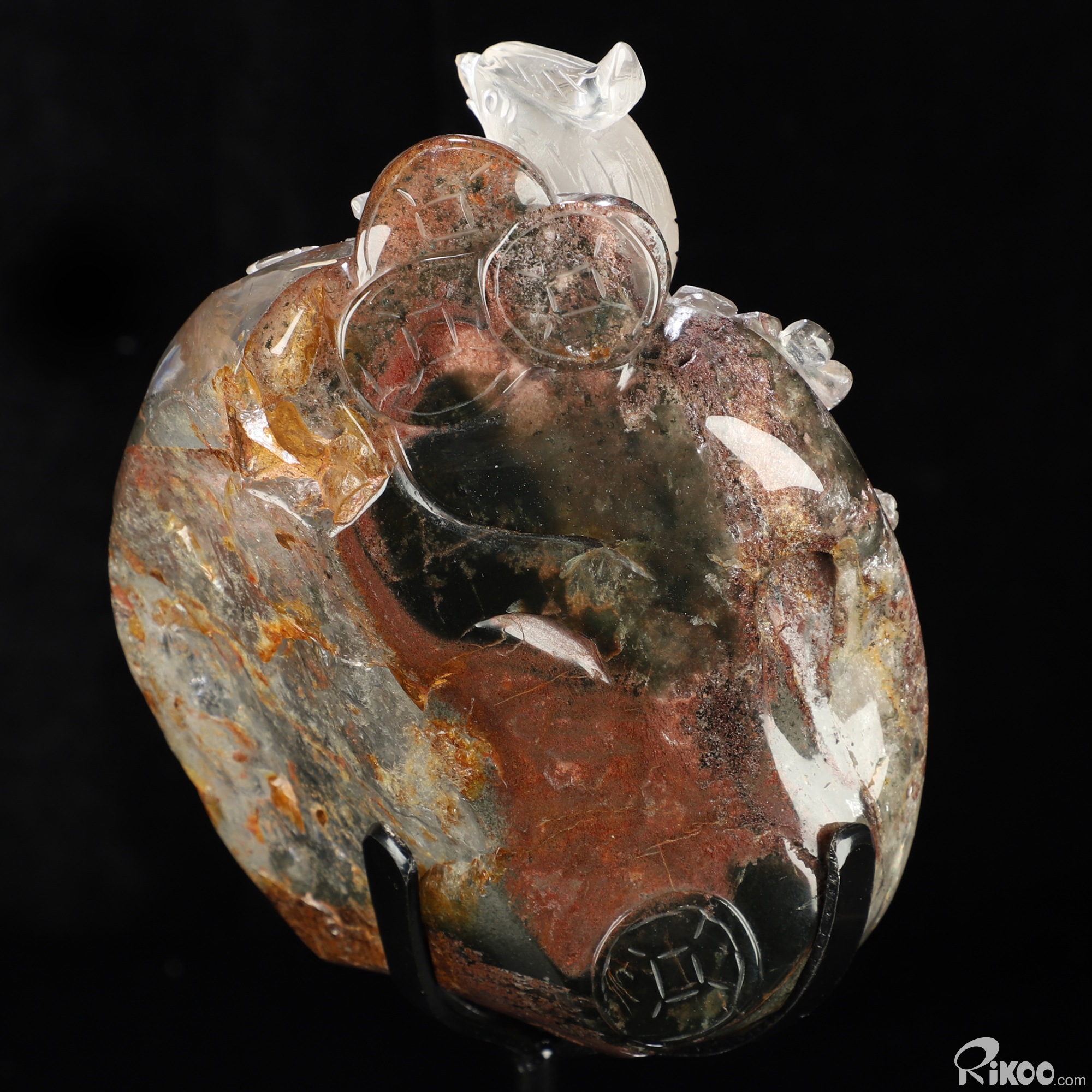 You are looking at a Phantom Quartz Rock Crystal sculpture. The sculpture is 9.8 inches long.