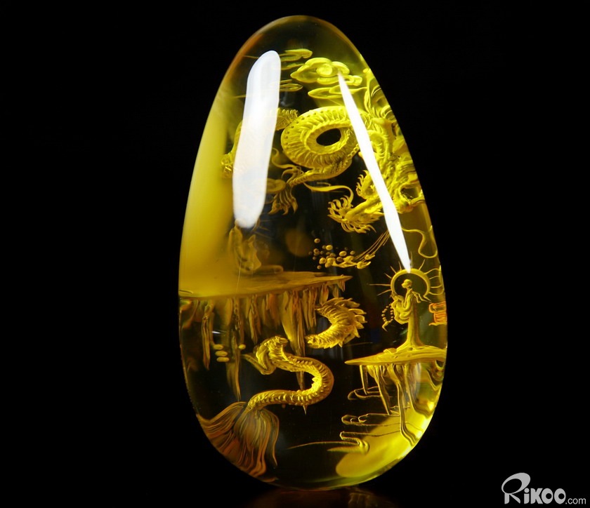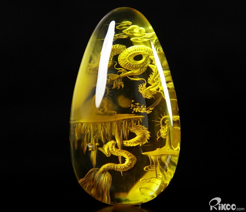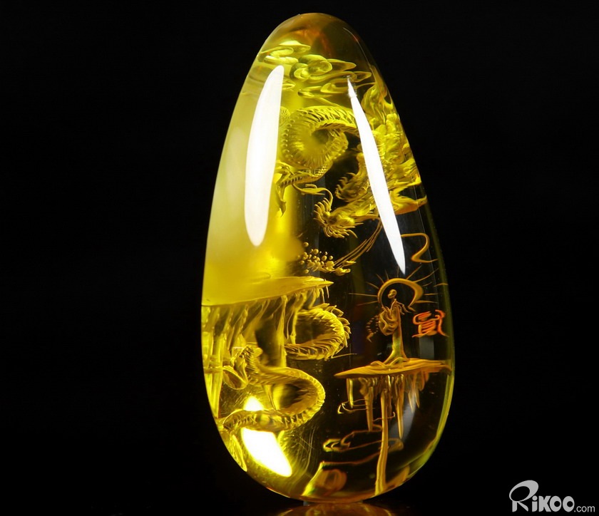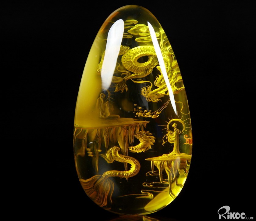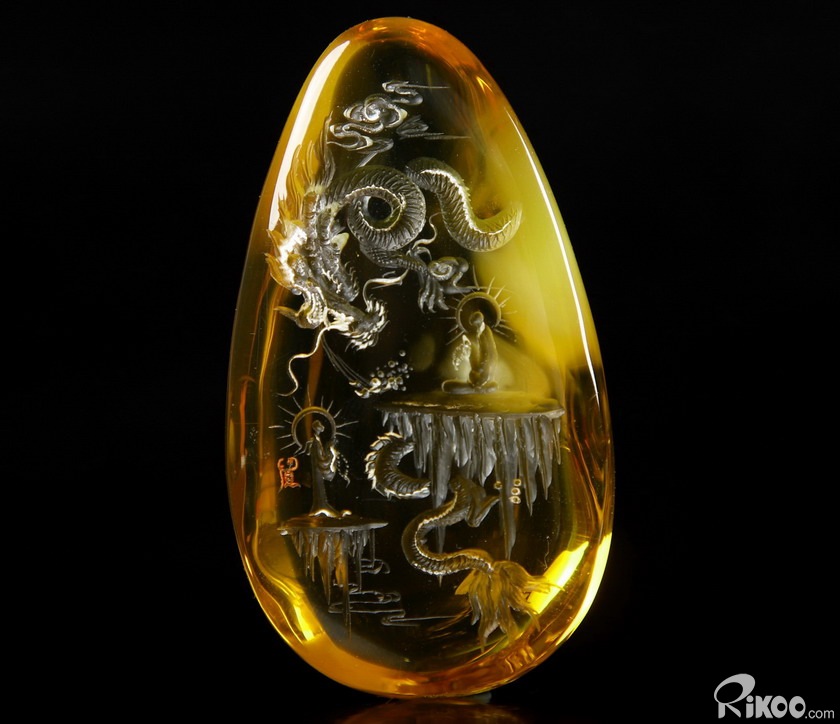 AMAZING 2.4" Baltic Amber Carved dragon Crystal Pendant Sculpture, Crystal Healing