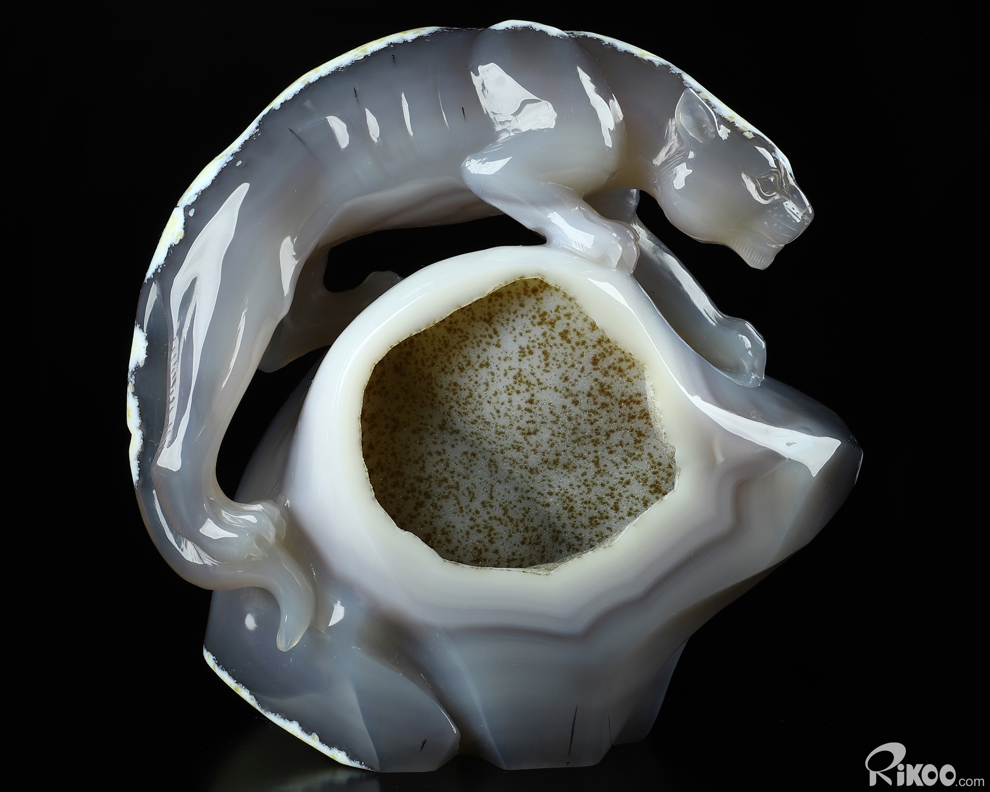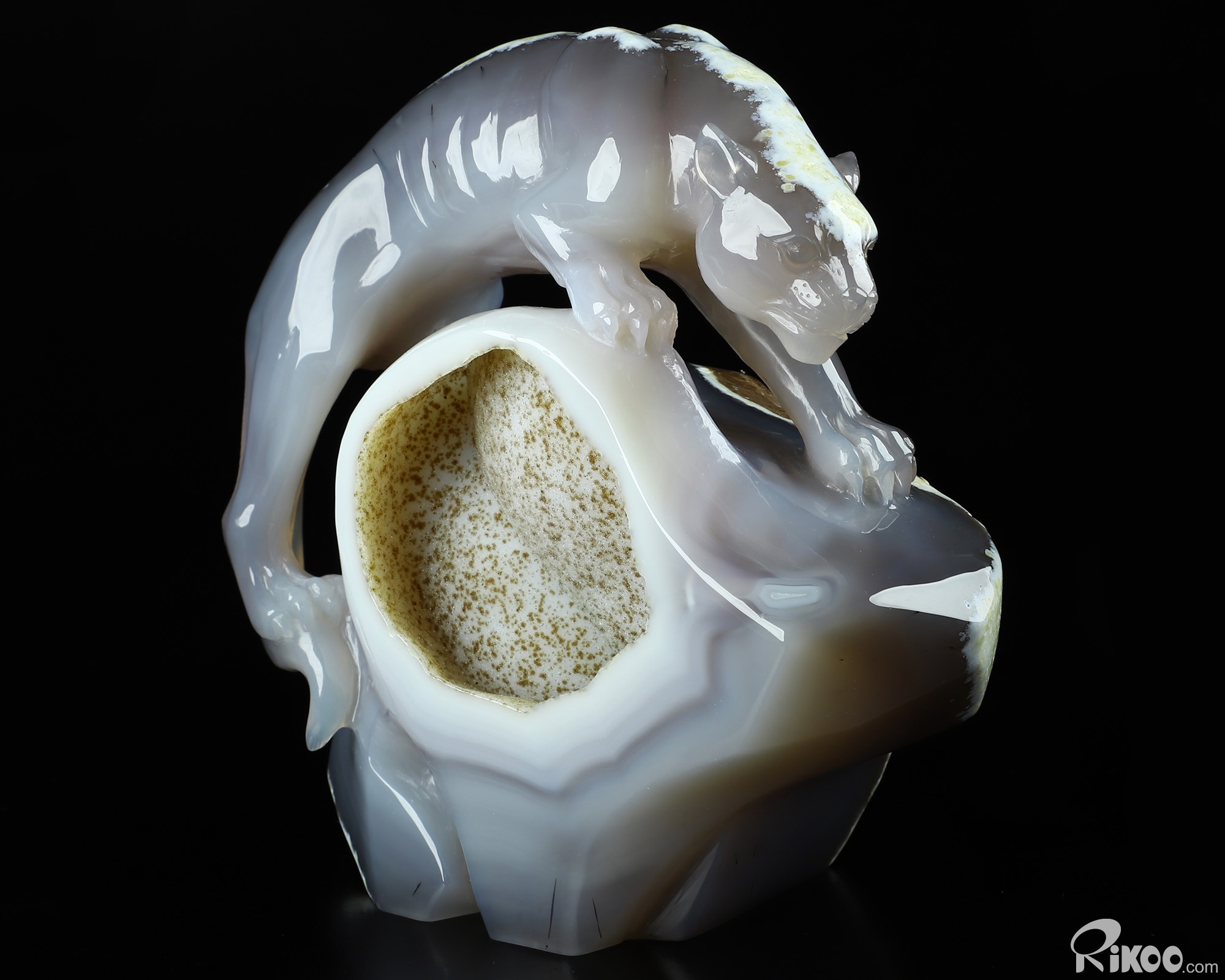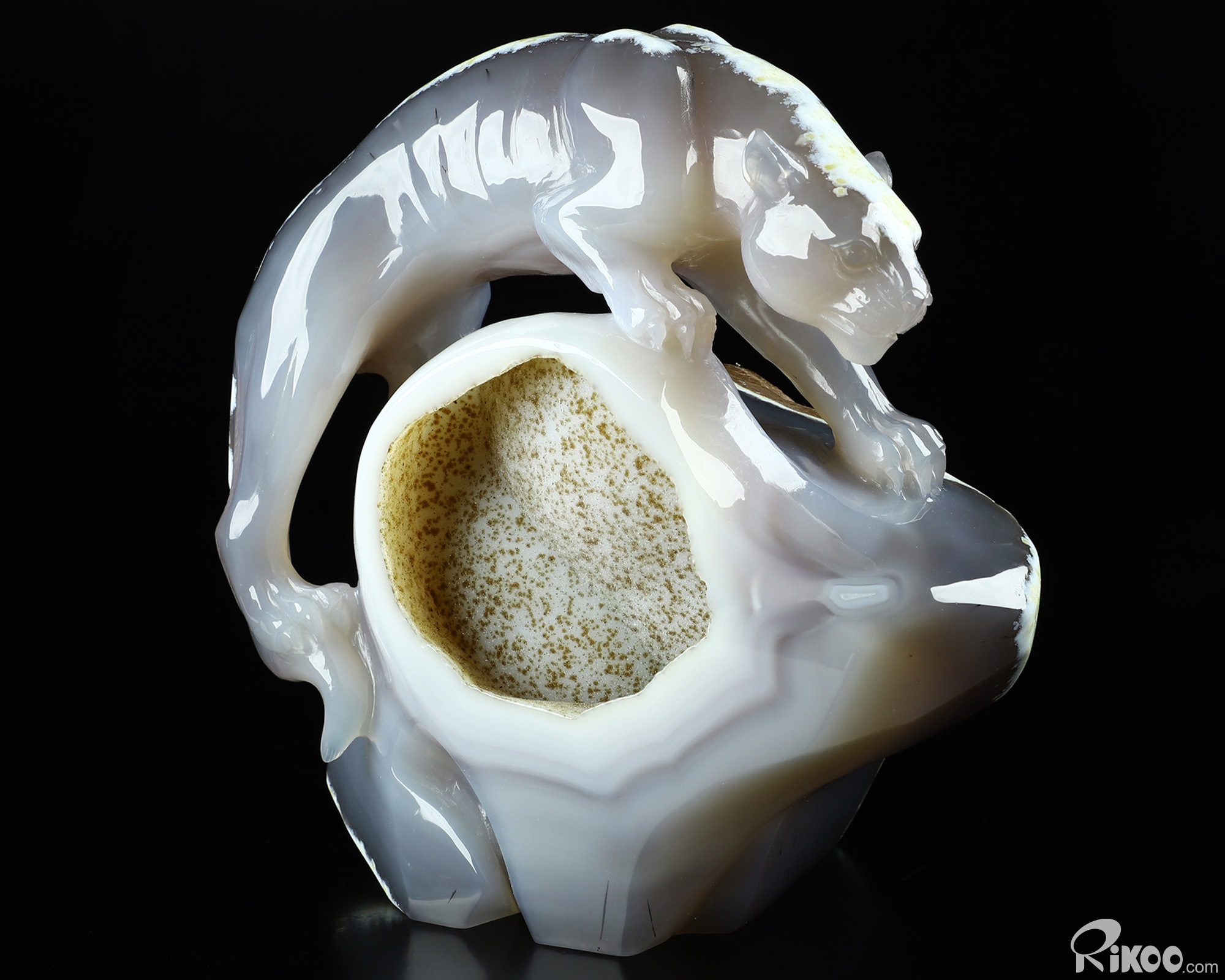 AMAZING 6.5" Agate Geode Carved Crystal Leopard Sculpture, Crystal Healing