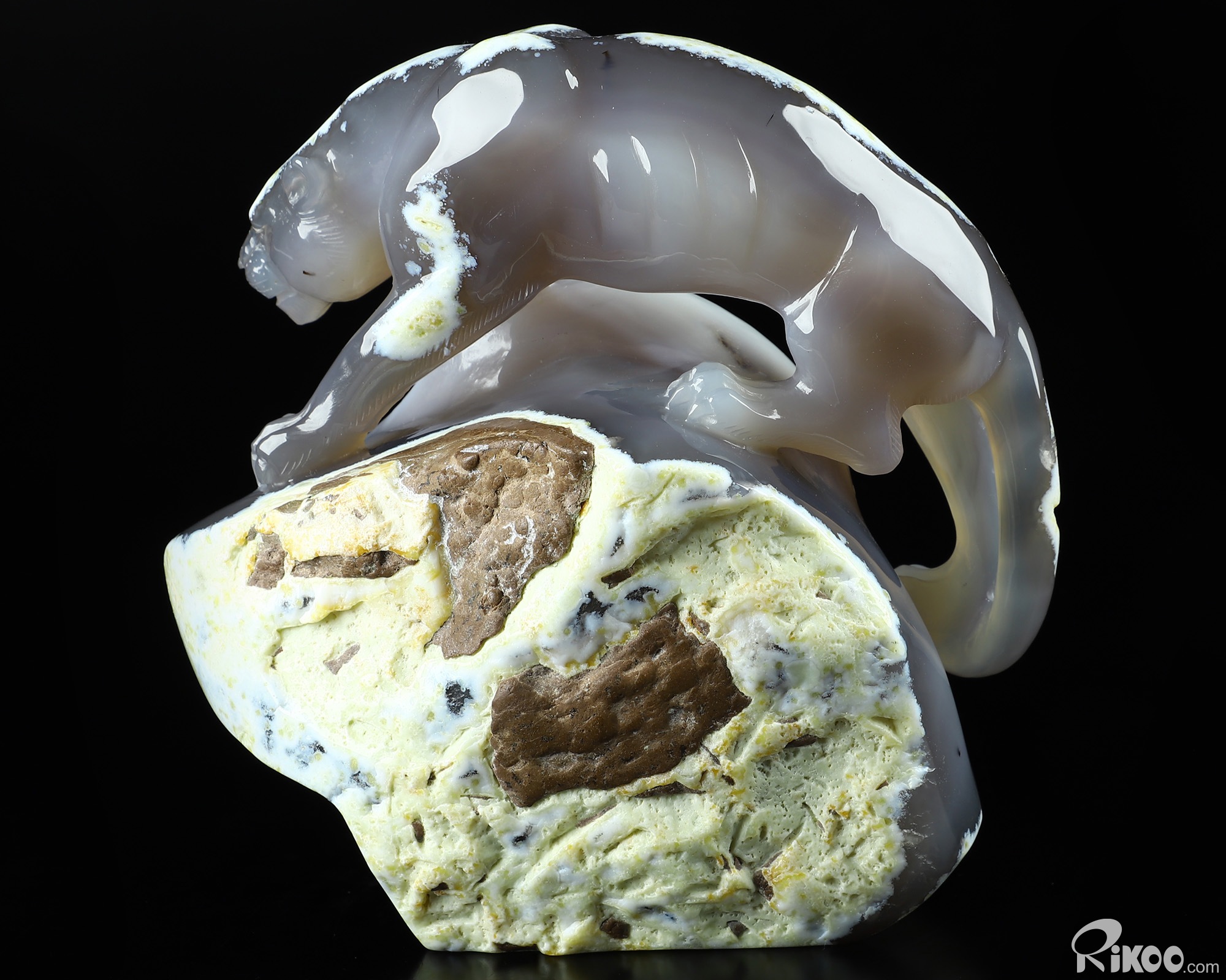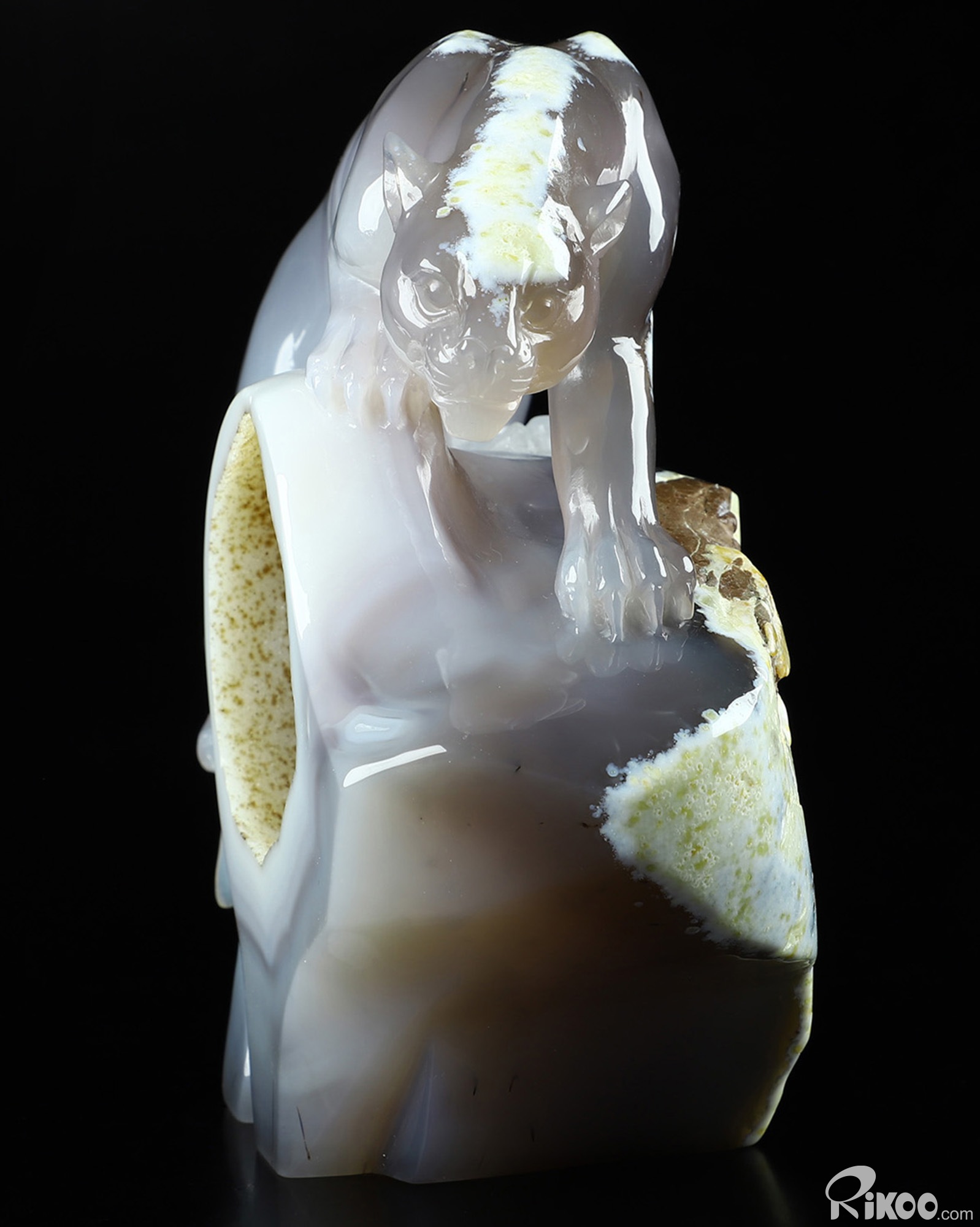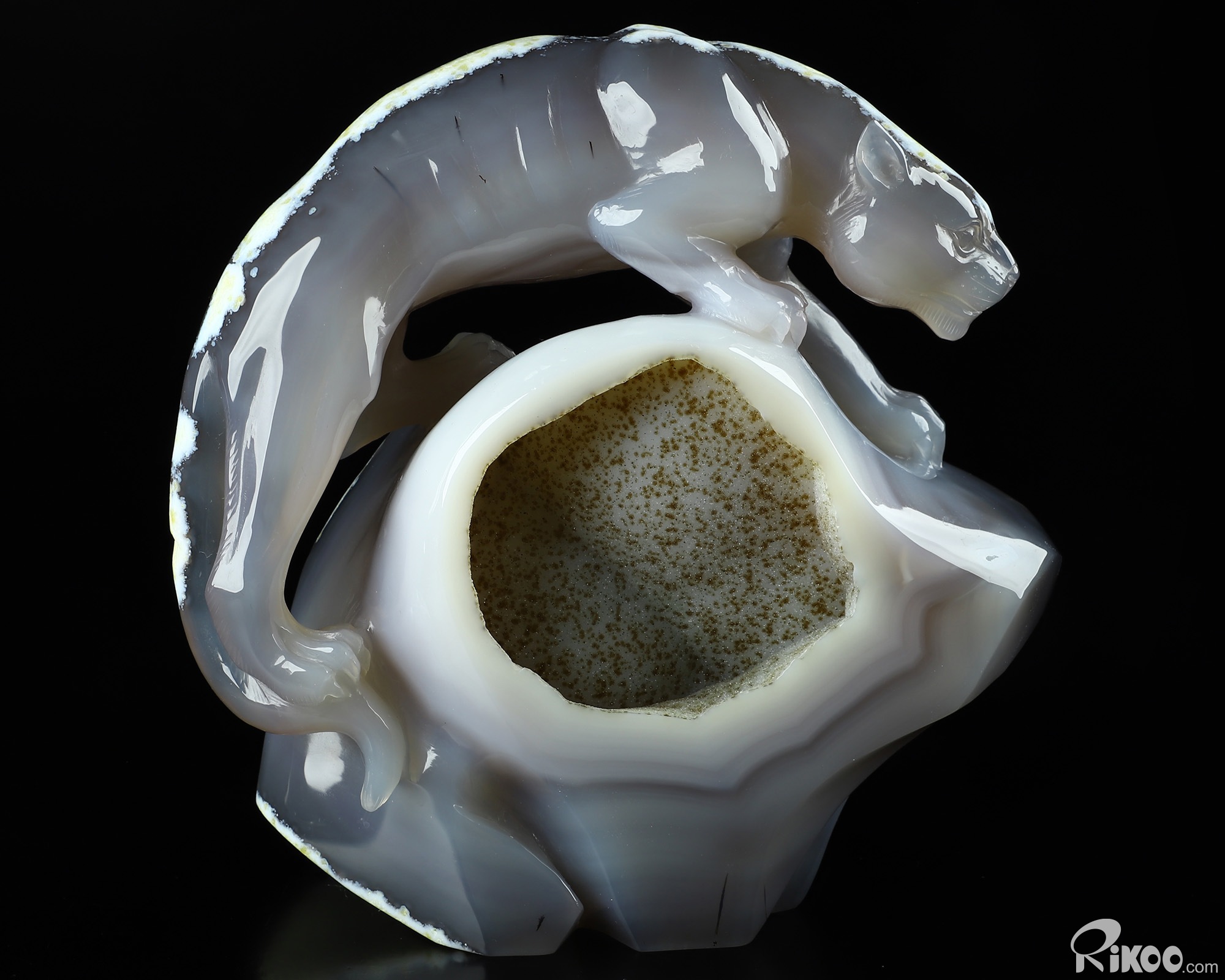 AMAZING 6.5" Agate Geode Carved Crystal Leopard Sculpture, Crystal Healing