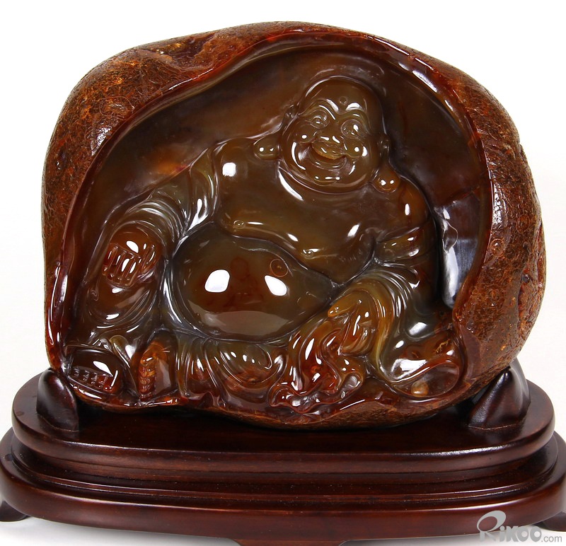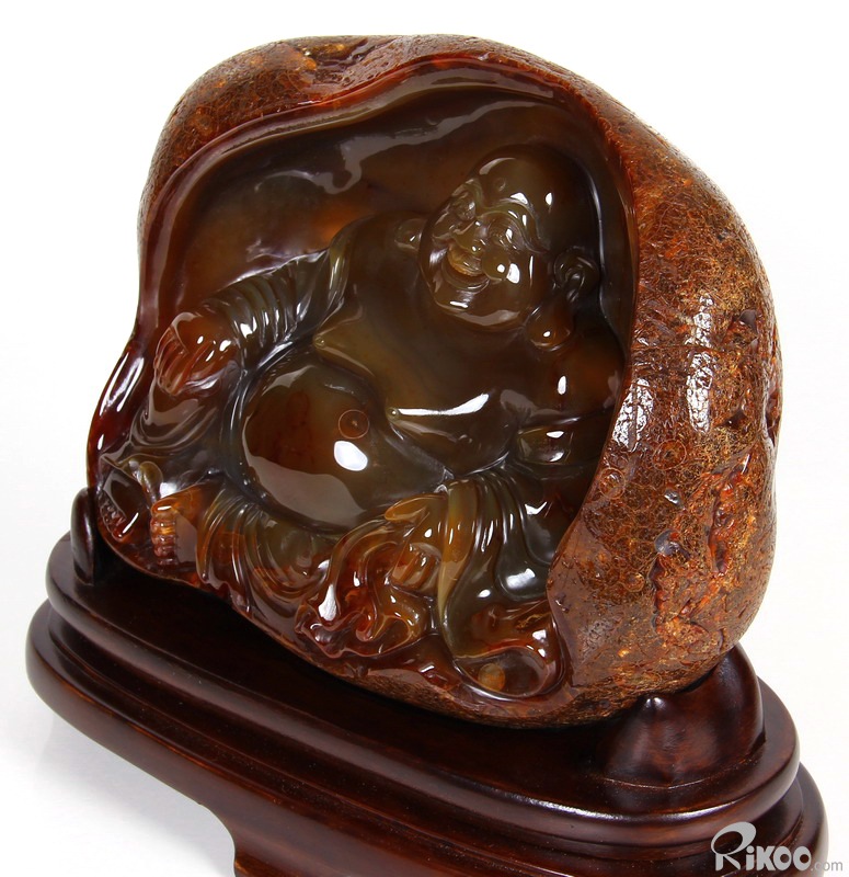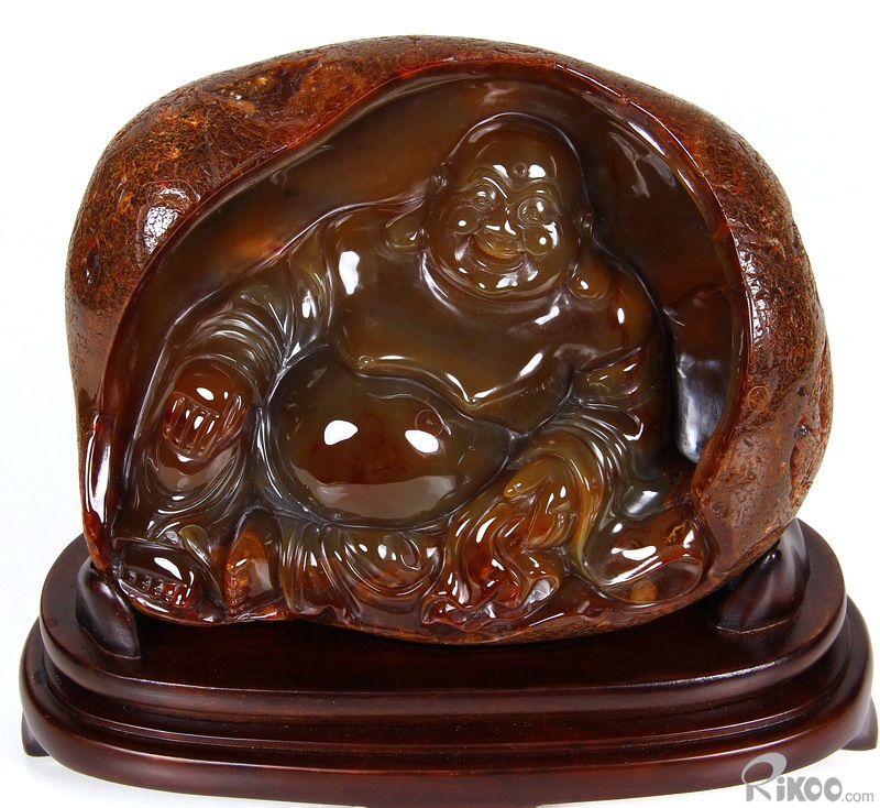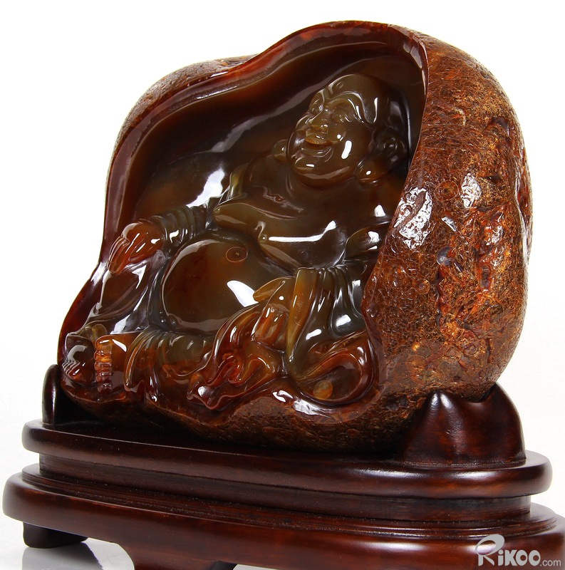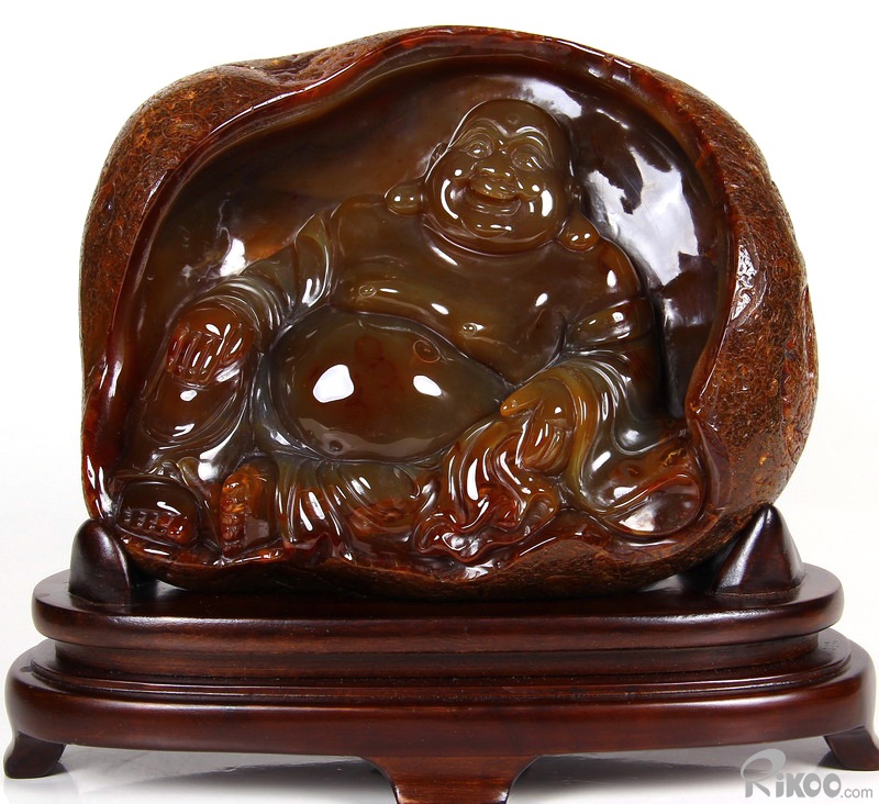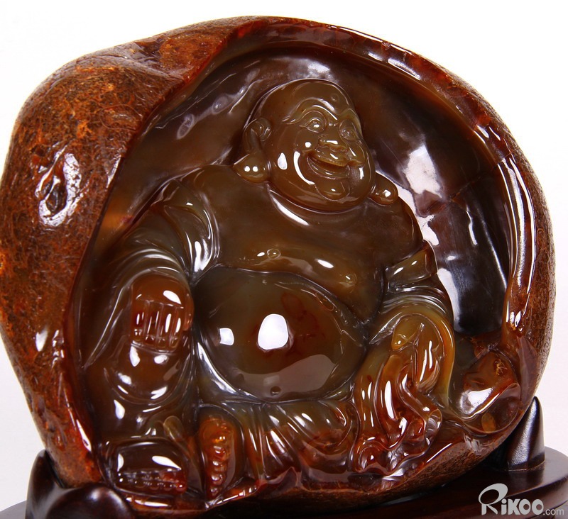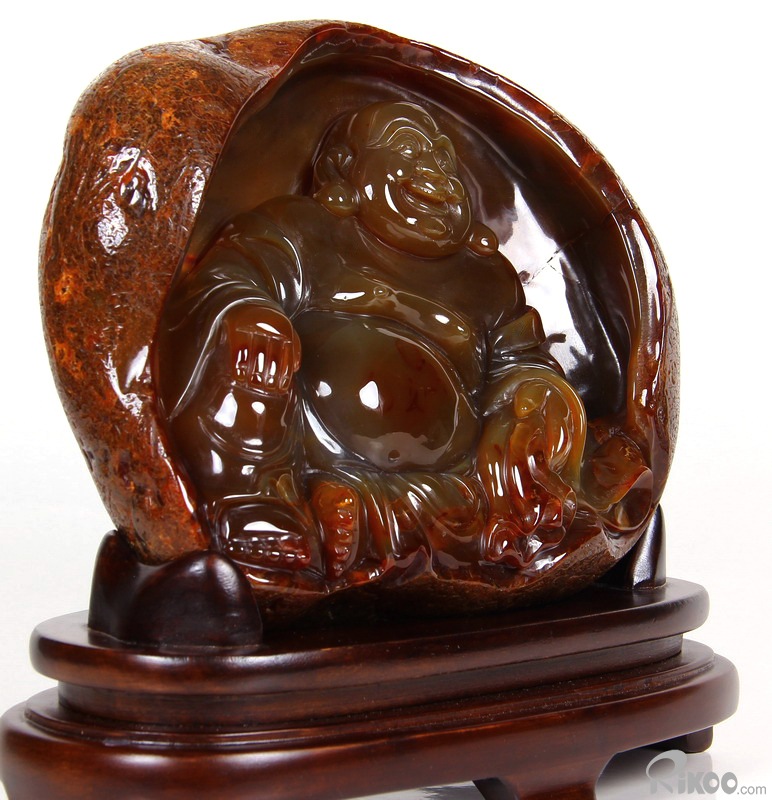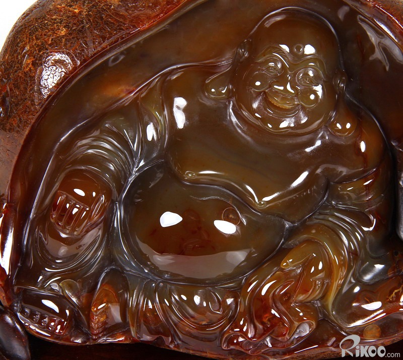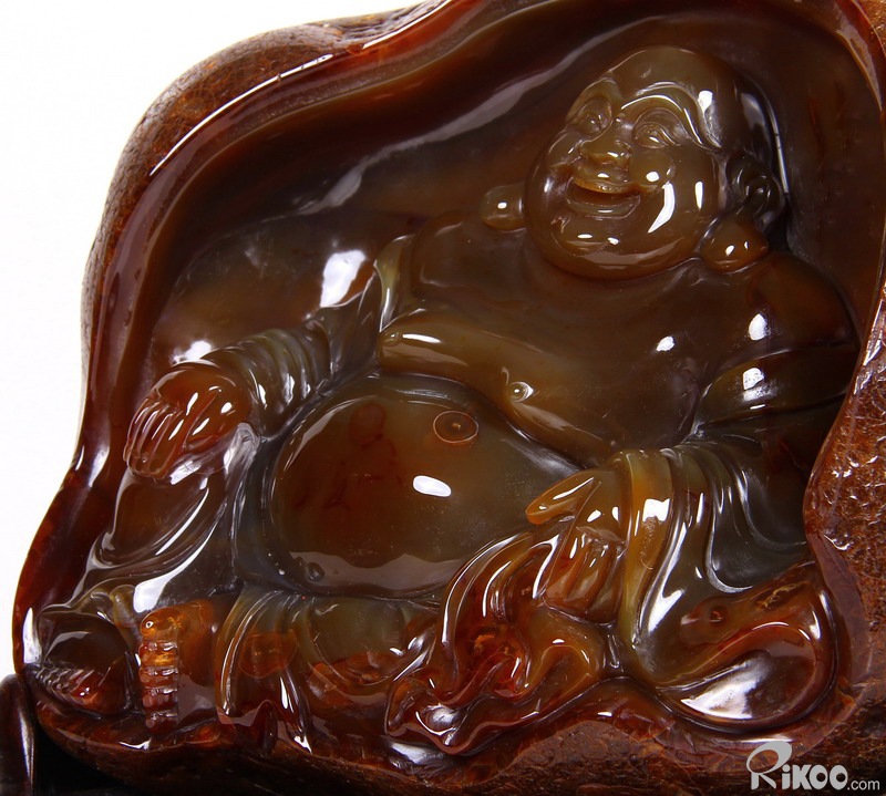 AMAZING, 8.1" Carnelian Carved Crystal Laughing Buddha Sculpture