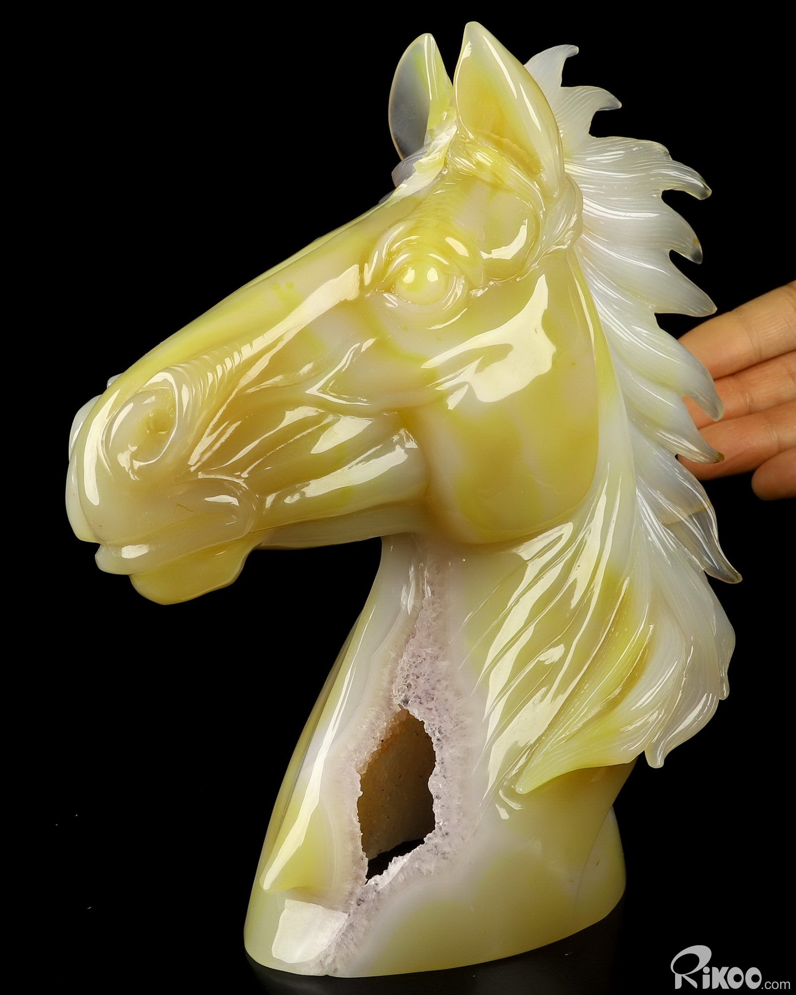 AMAZING 8.3" Agate Amethyst Geode Carved Crystal Horse Sculpture, Crystal Healing