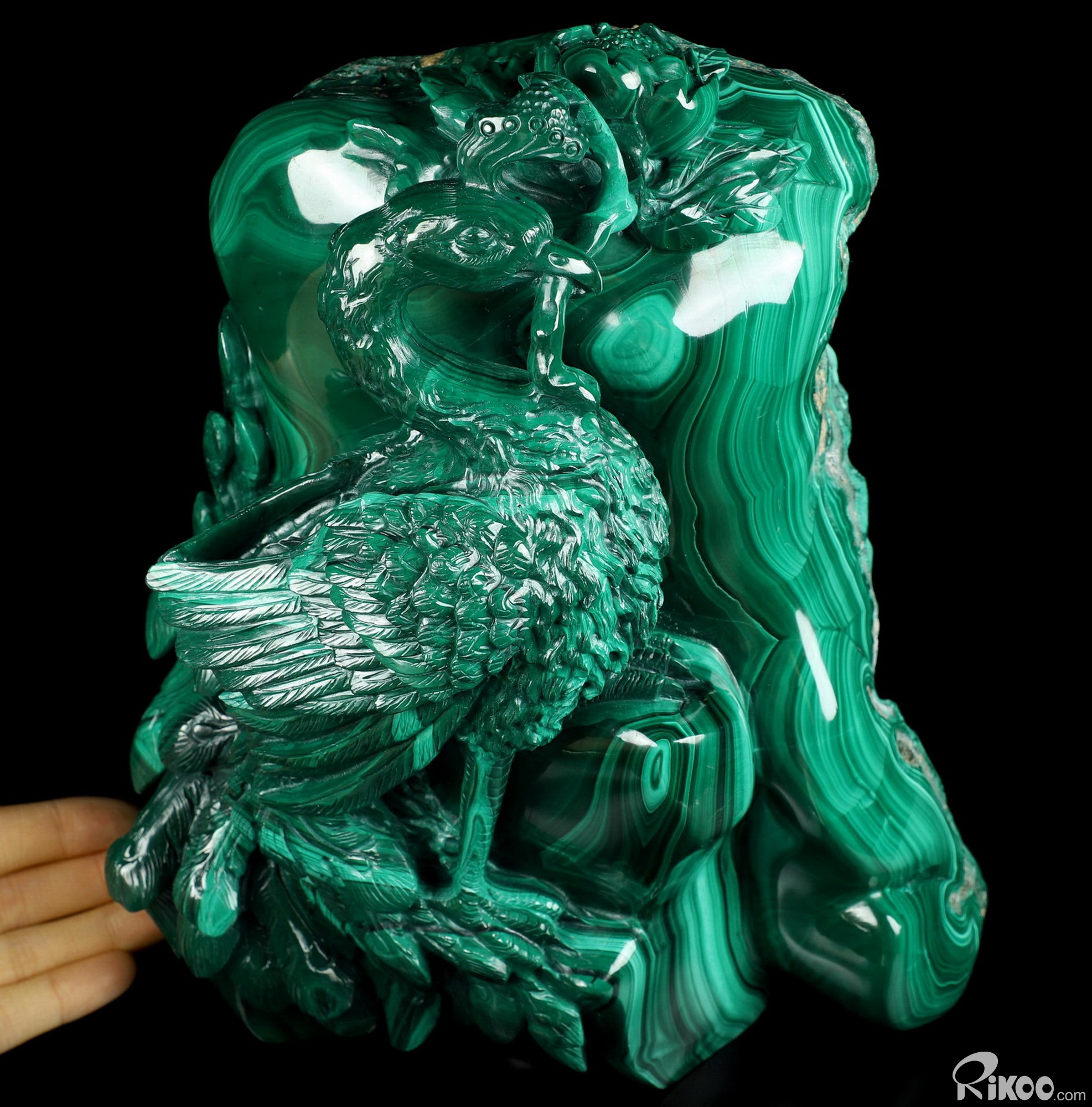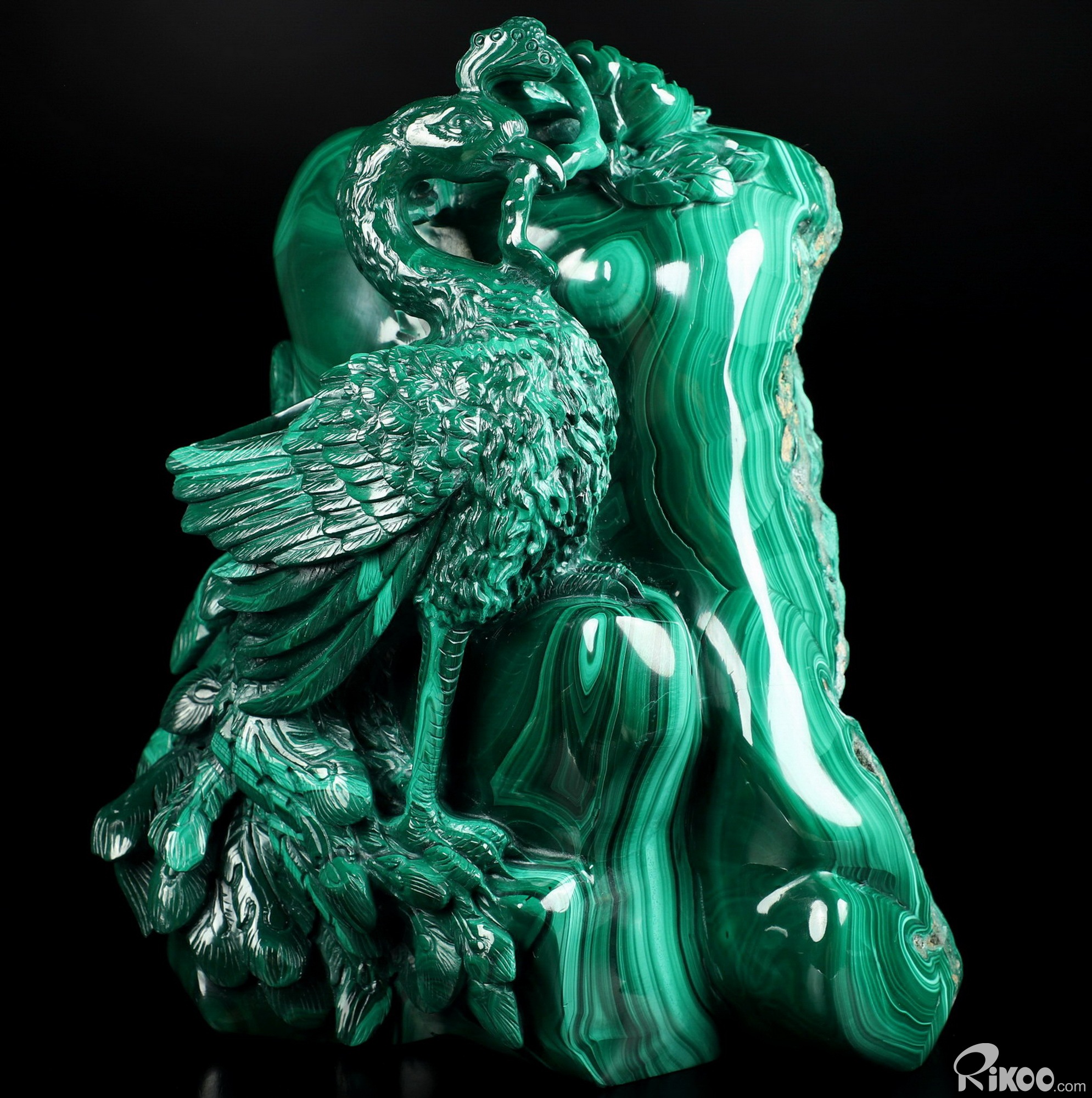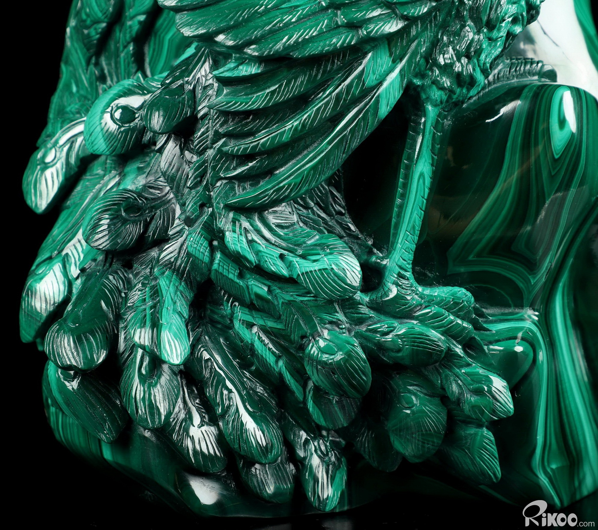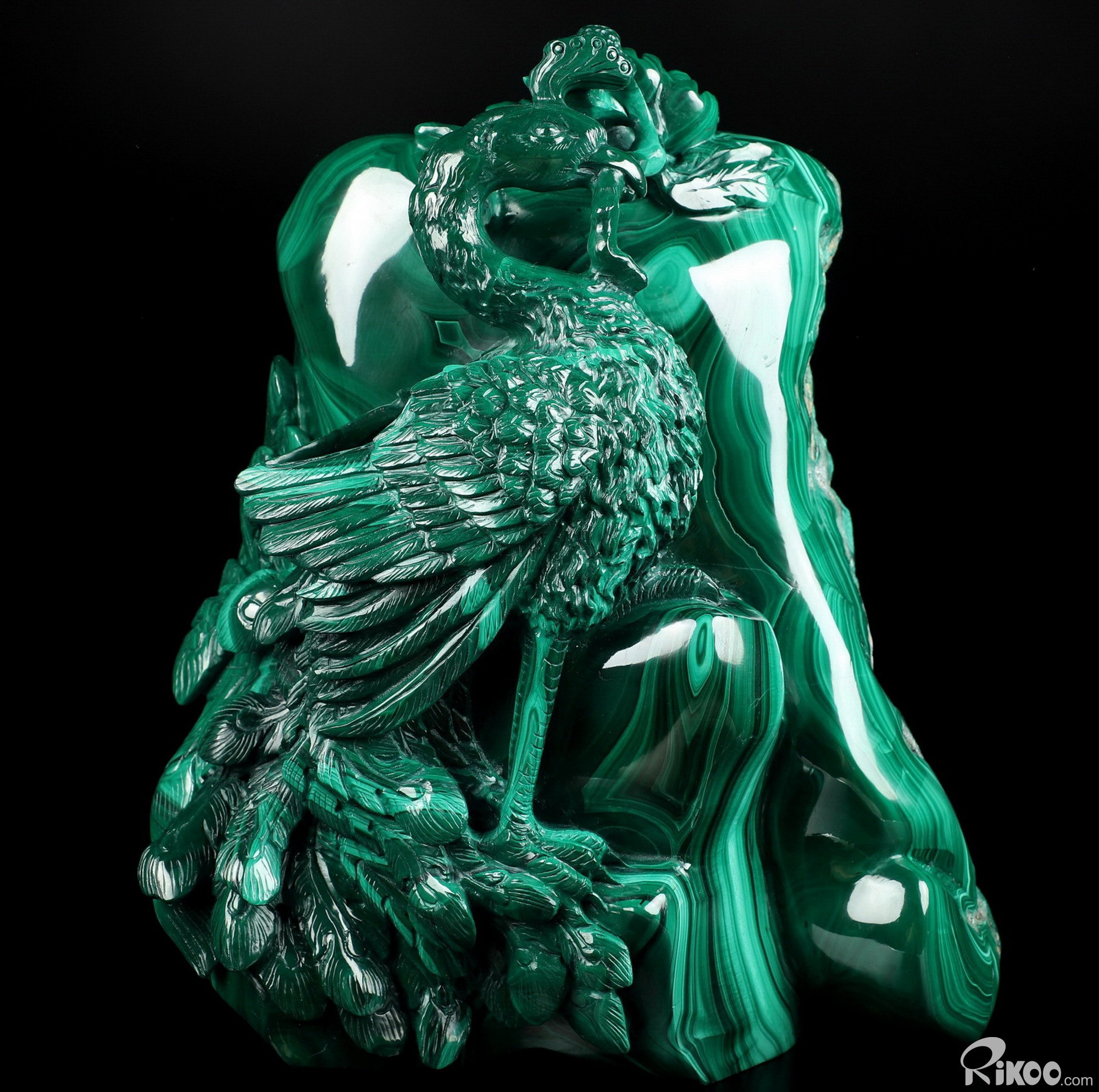 AMAZING 9.6" Malachite Carved Crystal Phoenix Peacock Bird, Crystal Healing