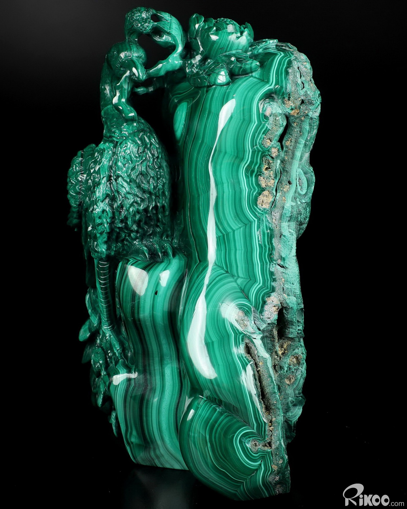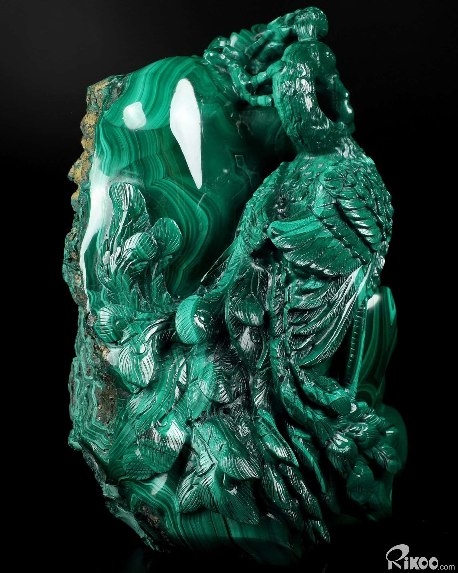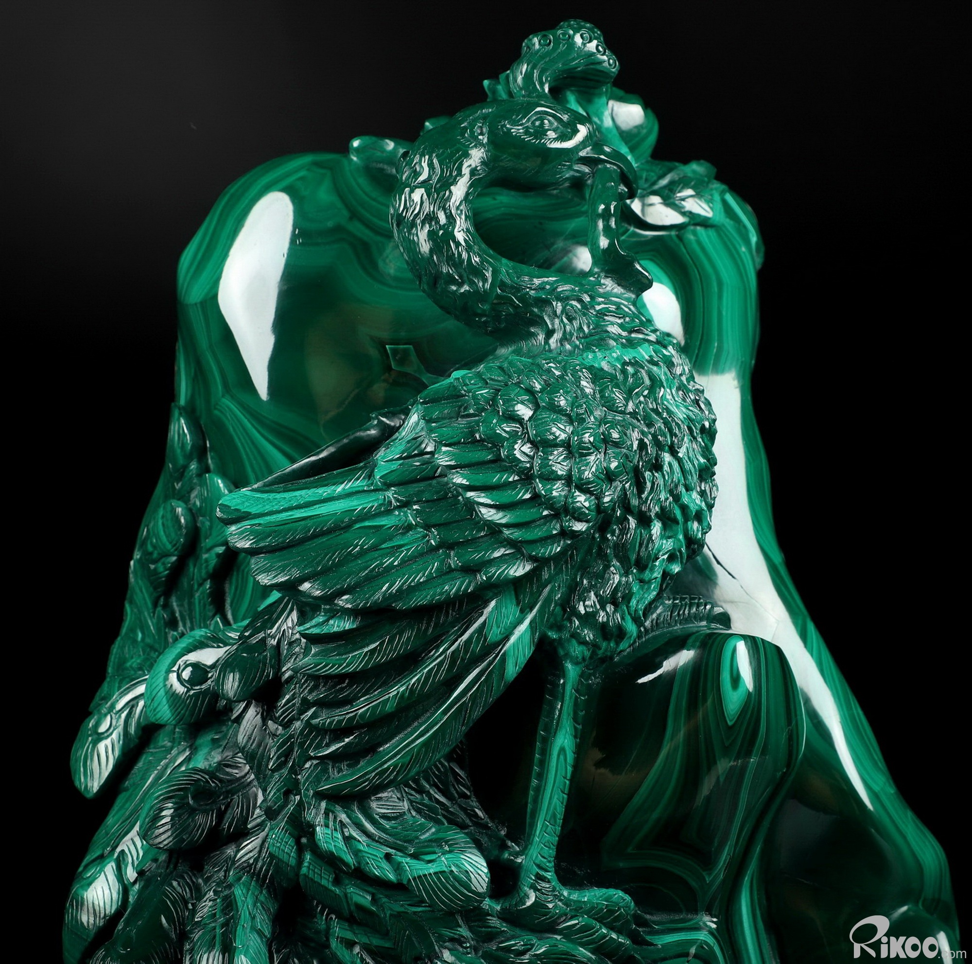 AMAZING 9.6" Malachite Carved Crystal Phoenix Peacock Bird, Crystal Healing