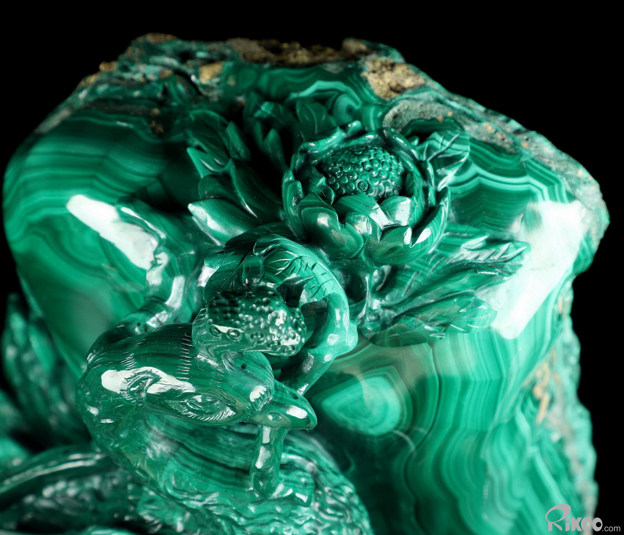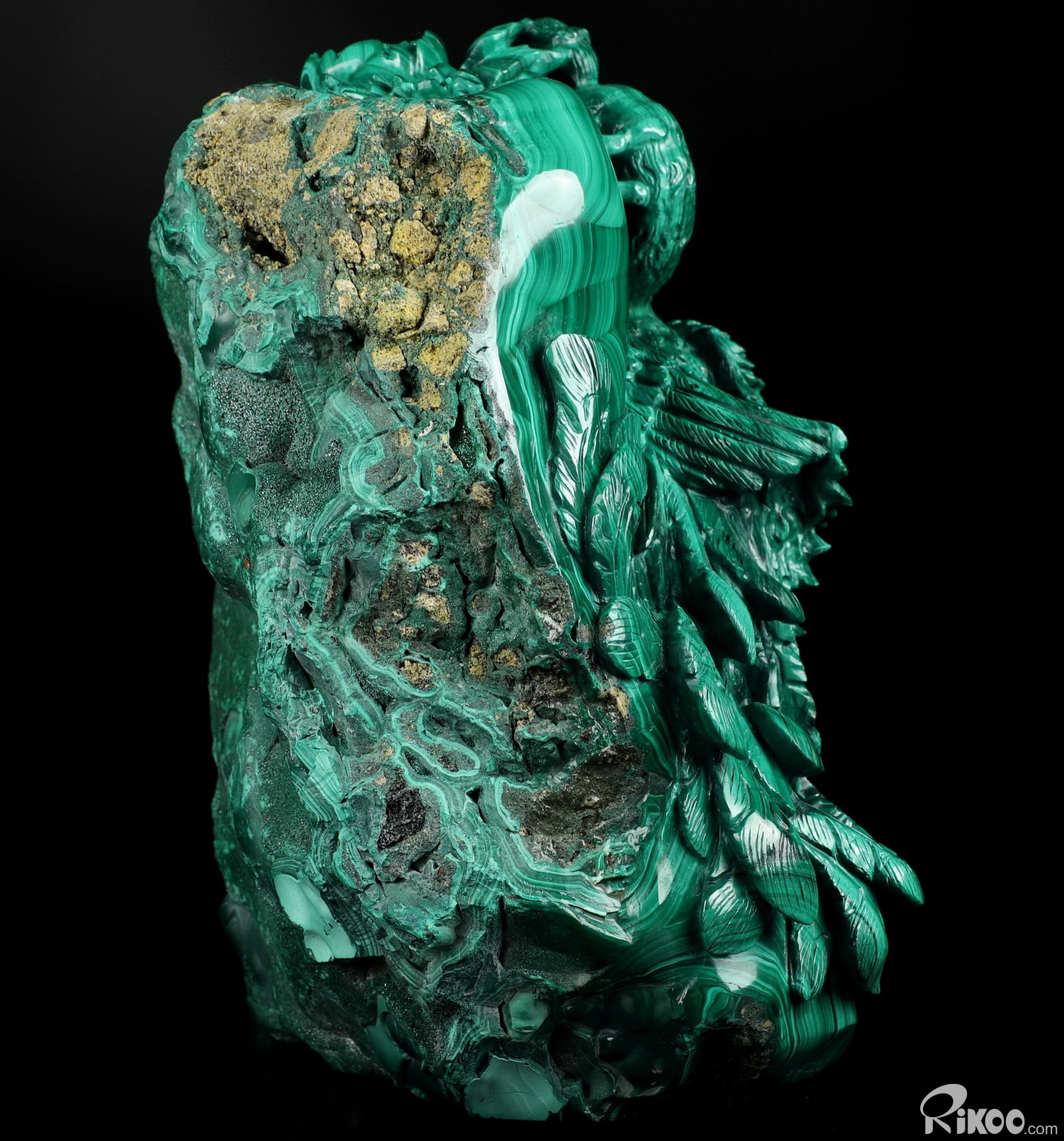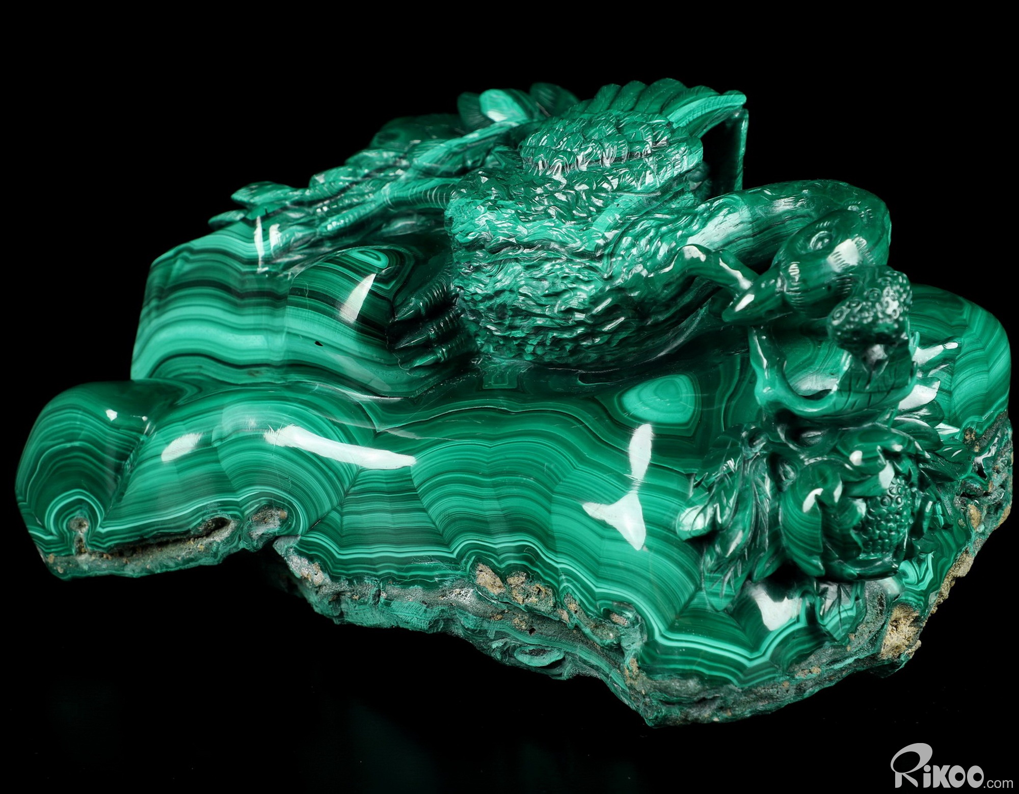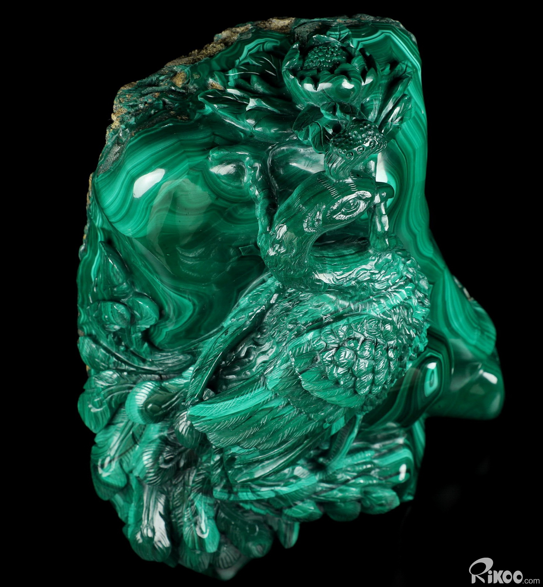 AMAZING 9.6" Malachite Carved Crystal Phoenix Peacock Bird, Crystal Healing