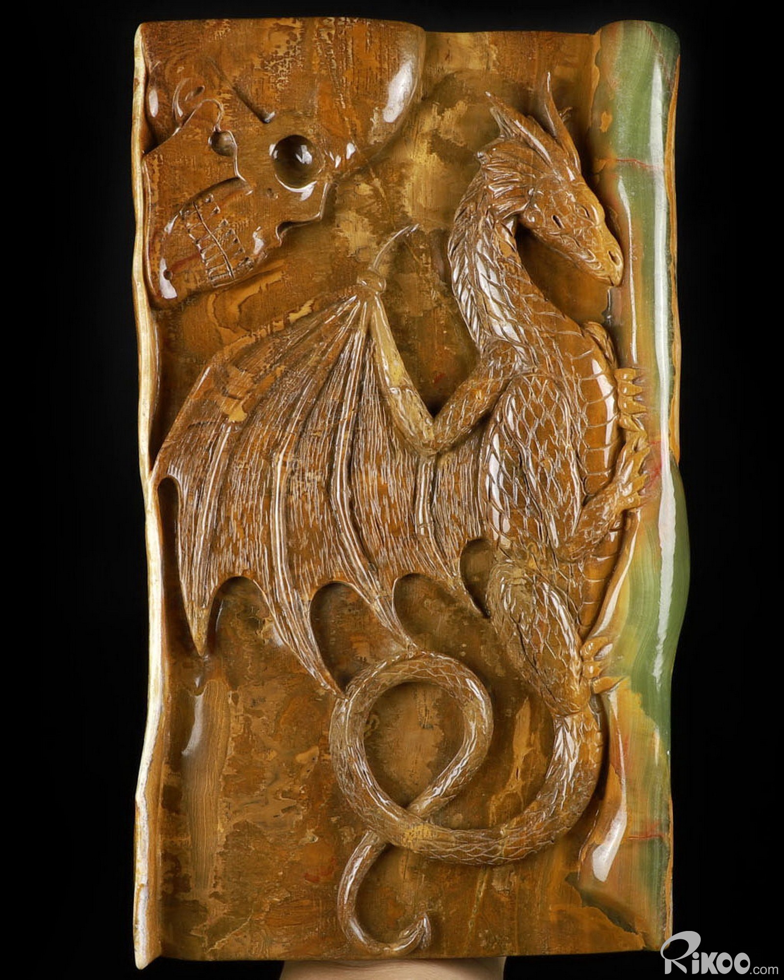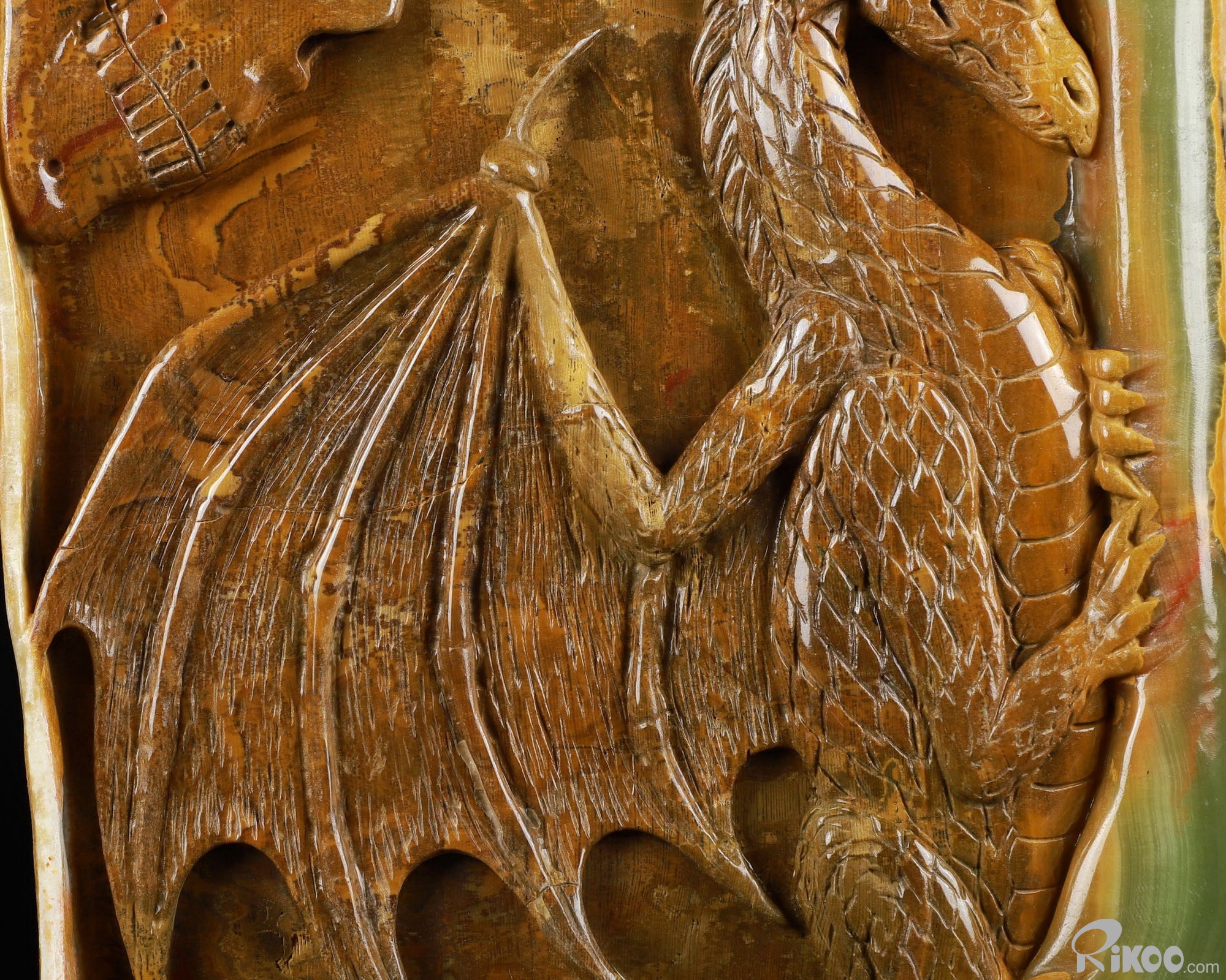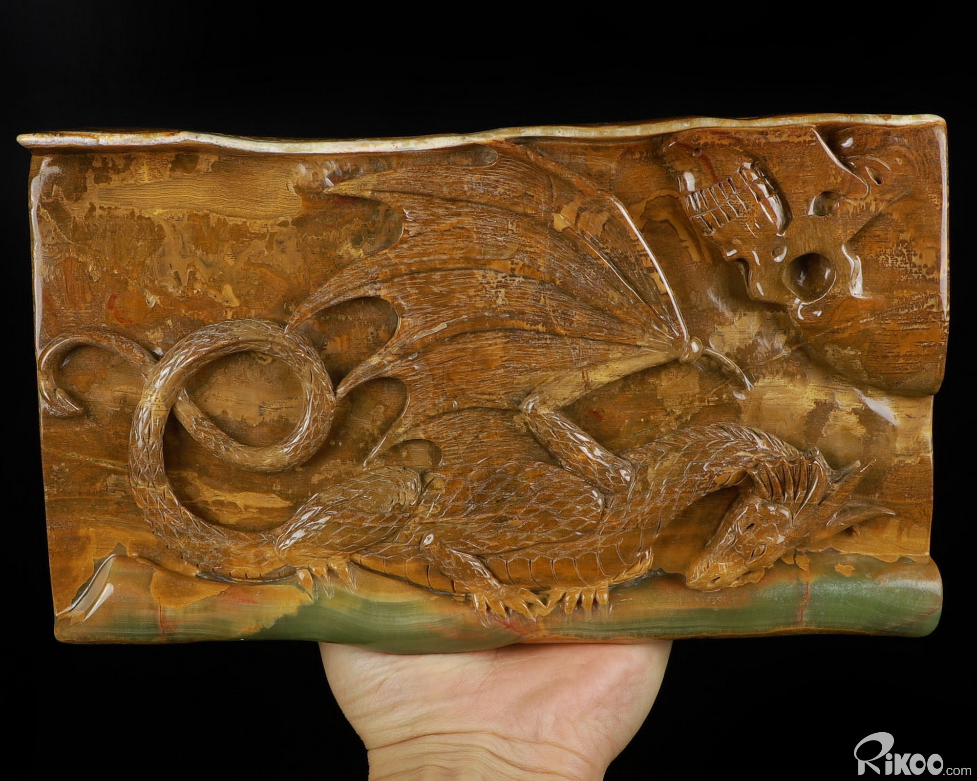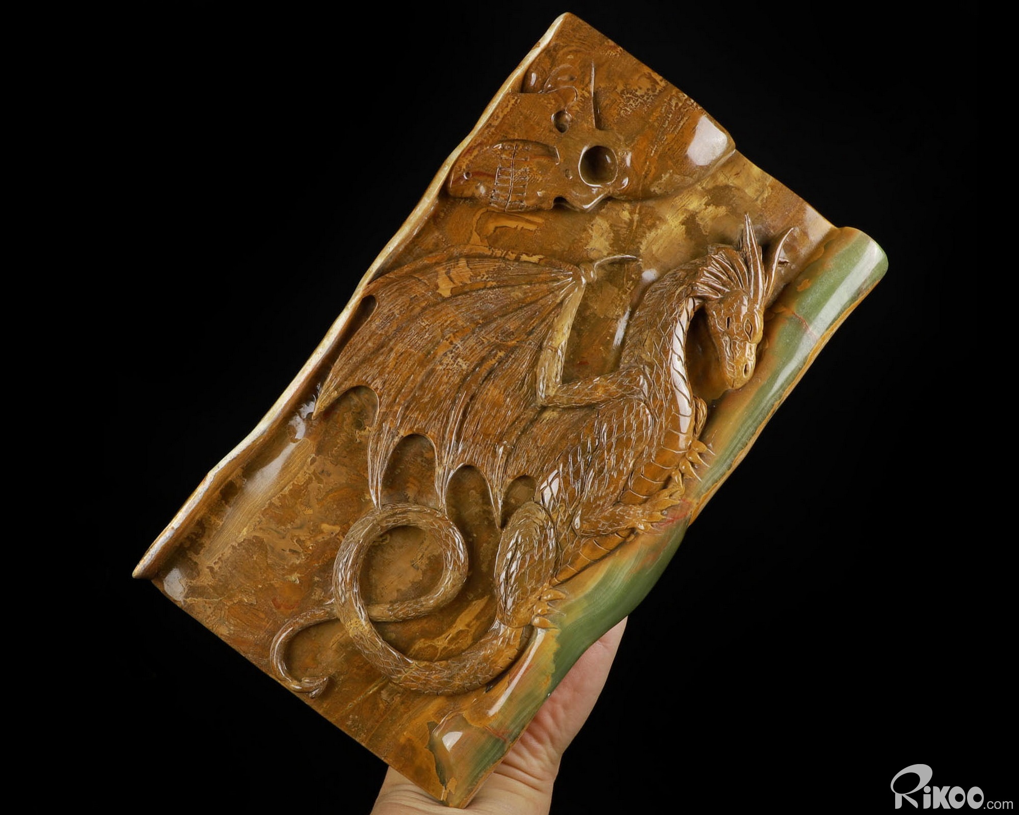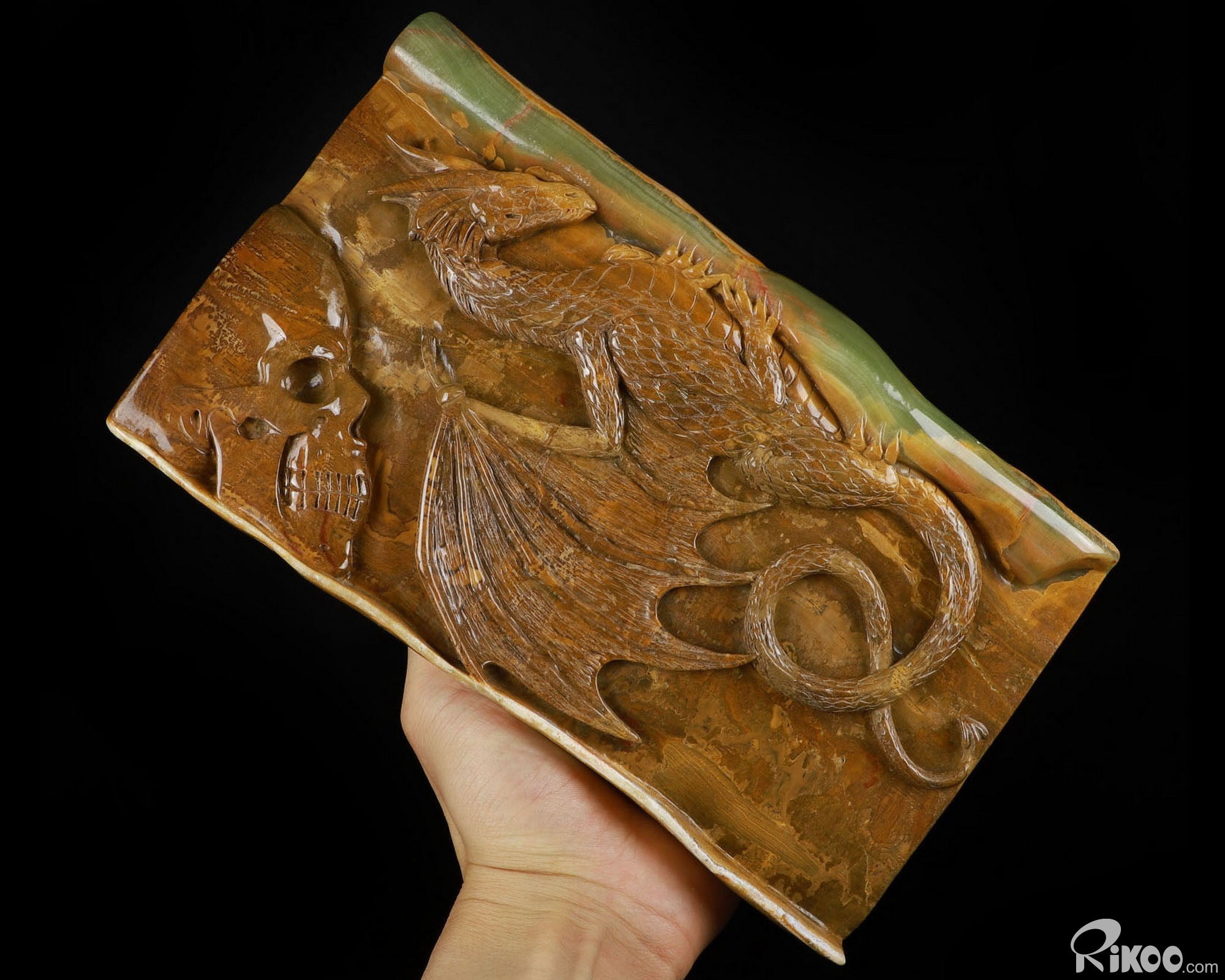 AMAZING 9.8" Afghanistan Jade Carved Crystal Dragon with Skull Sculpture, Crystal Healing
