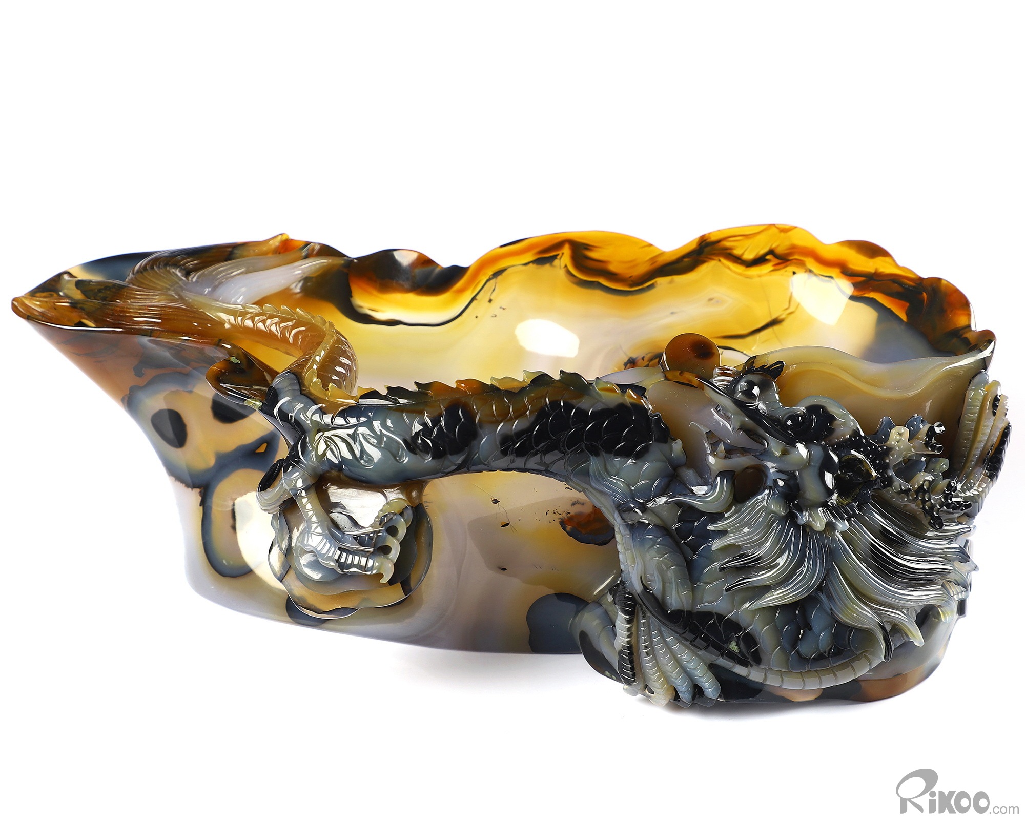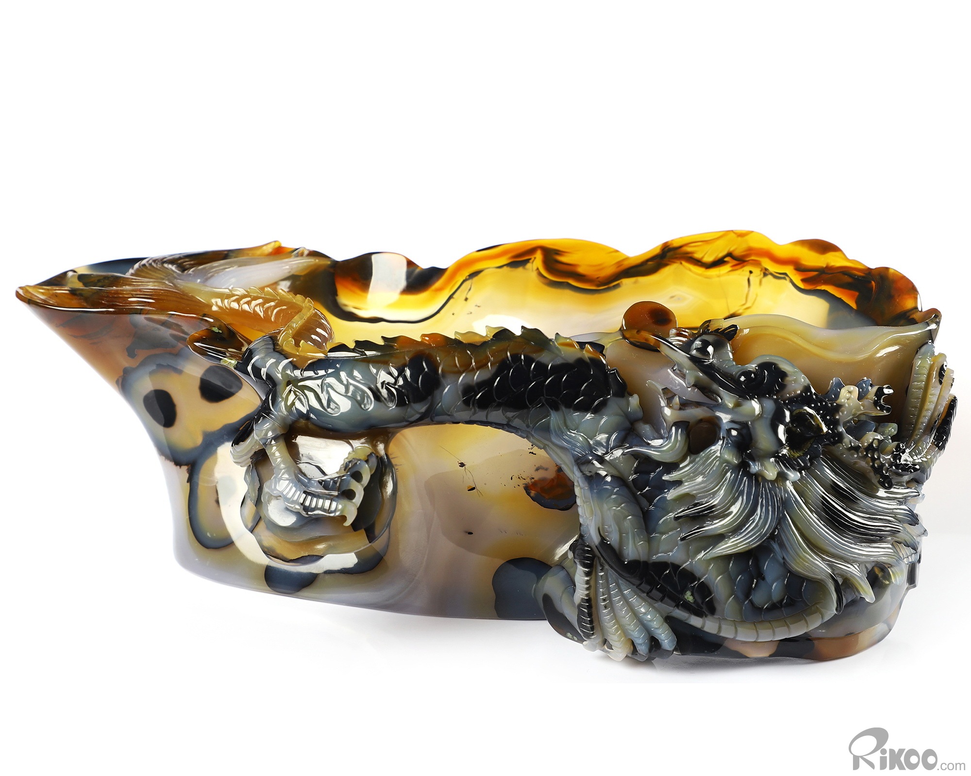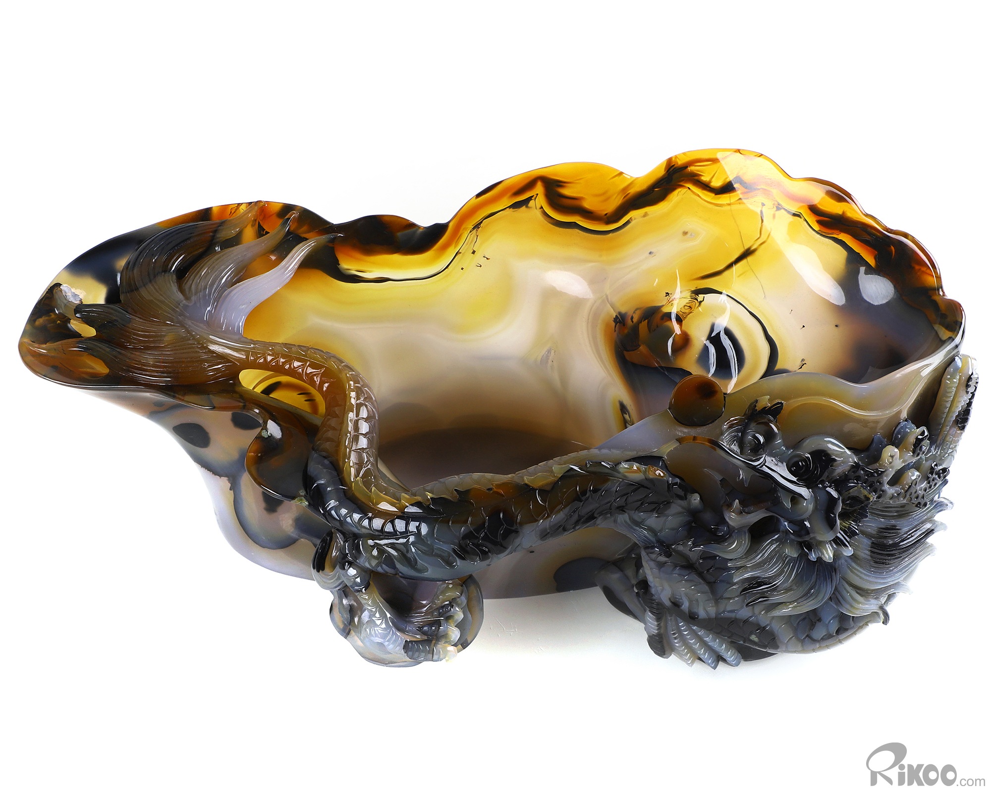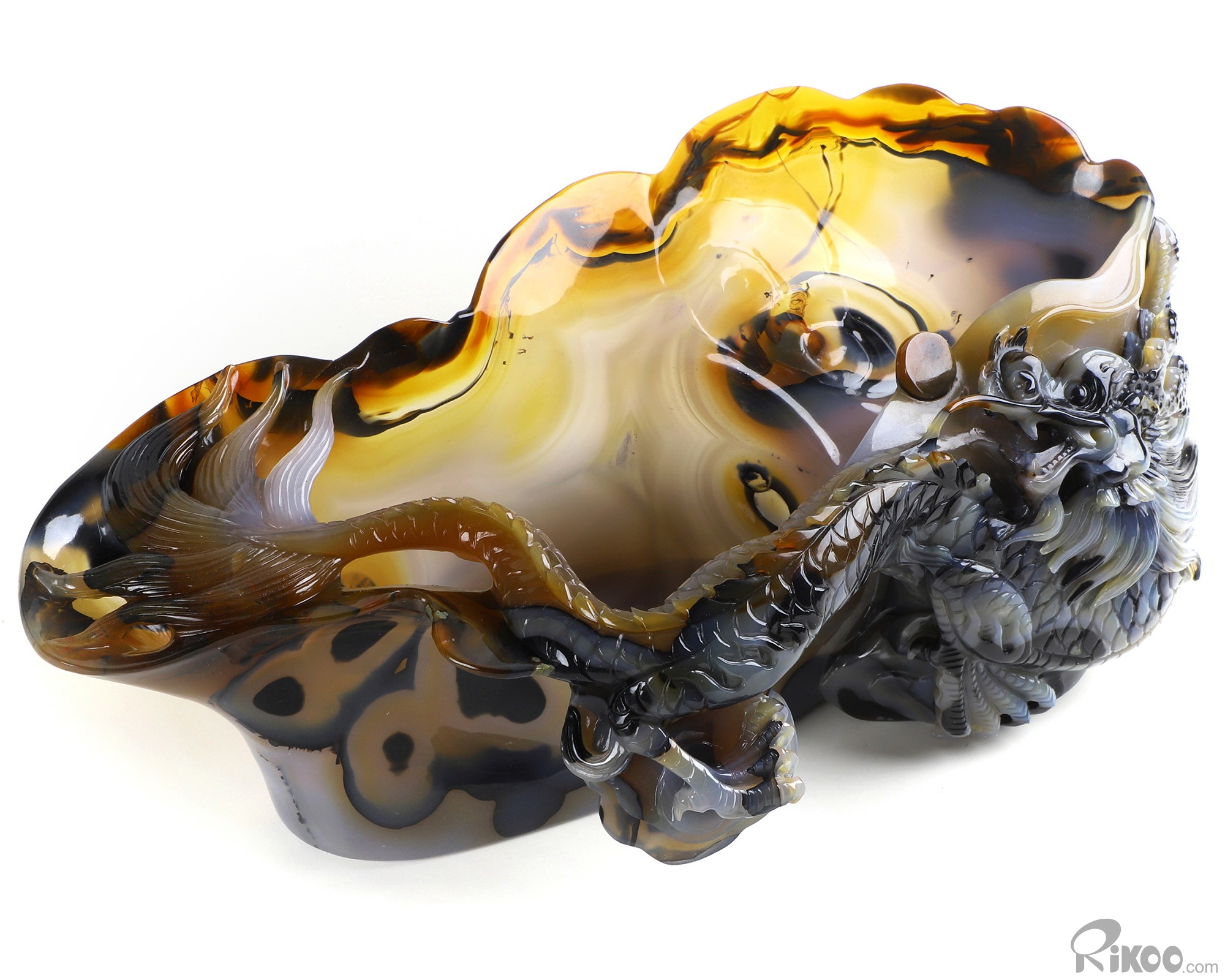 AMAZING 9.8" Premium Brazilian Agate Carved Crystal Wine Divider with Dragon Sculpture, Crystal Healing