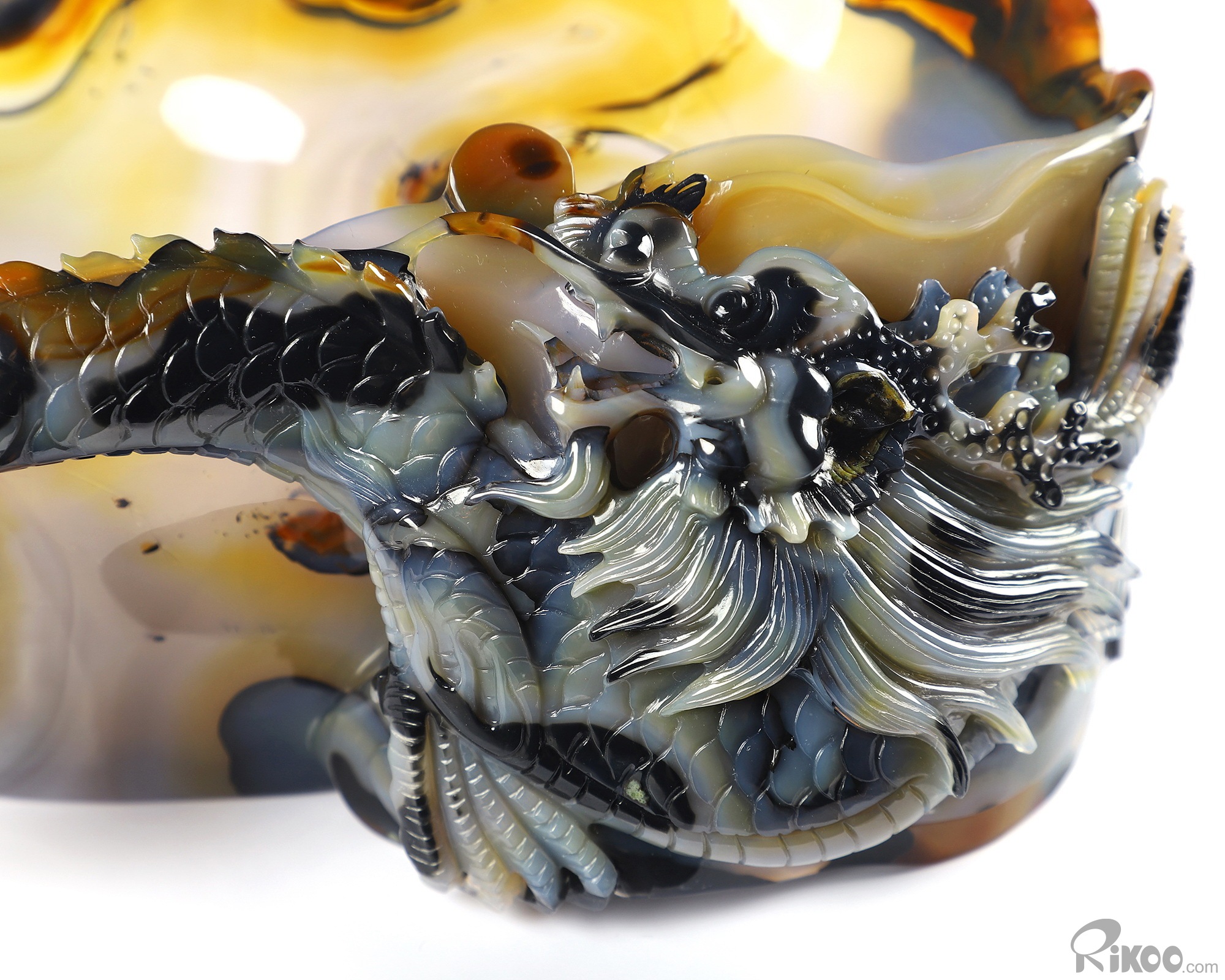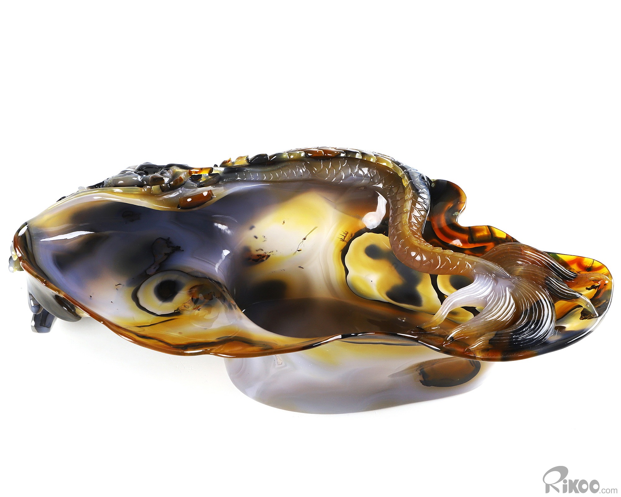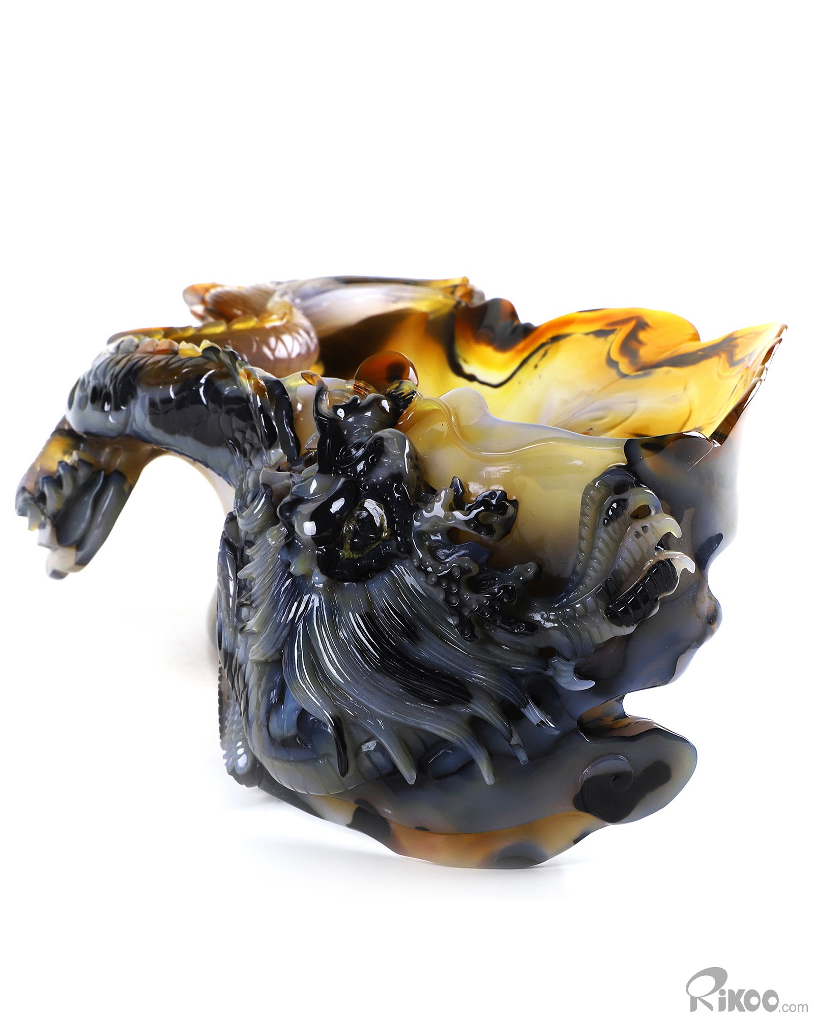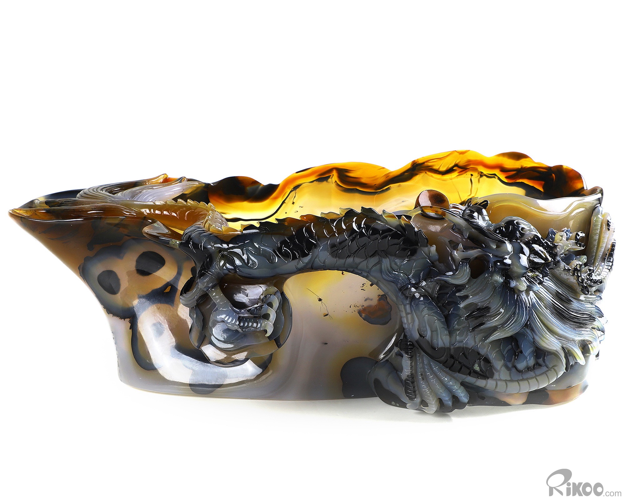 AMAZING 9.8" Premium Brazilian Agate Carved Crystal Wine Divider with Dragon Sculpture, Crystal Healing