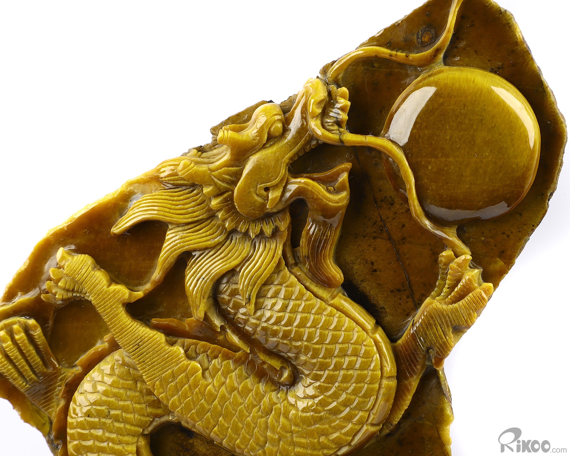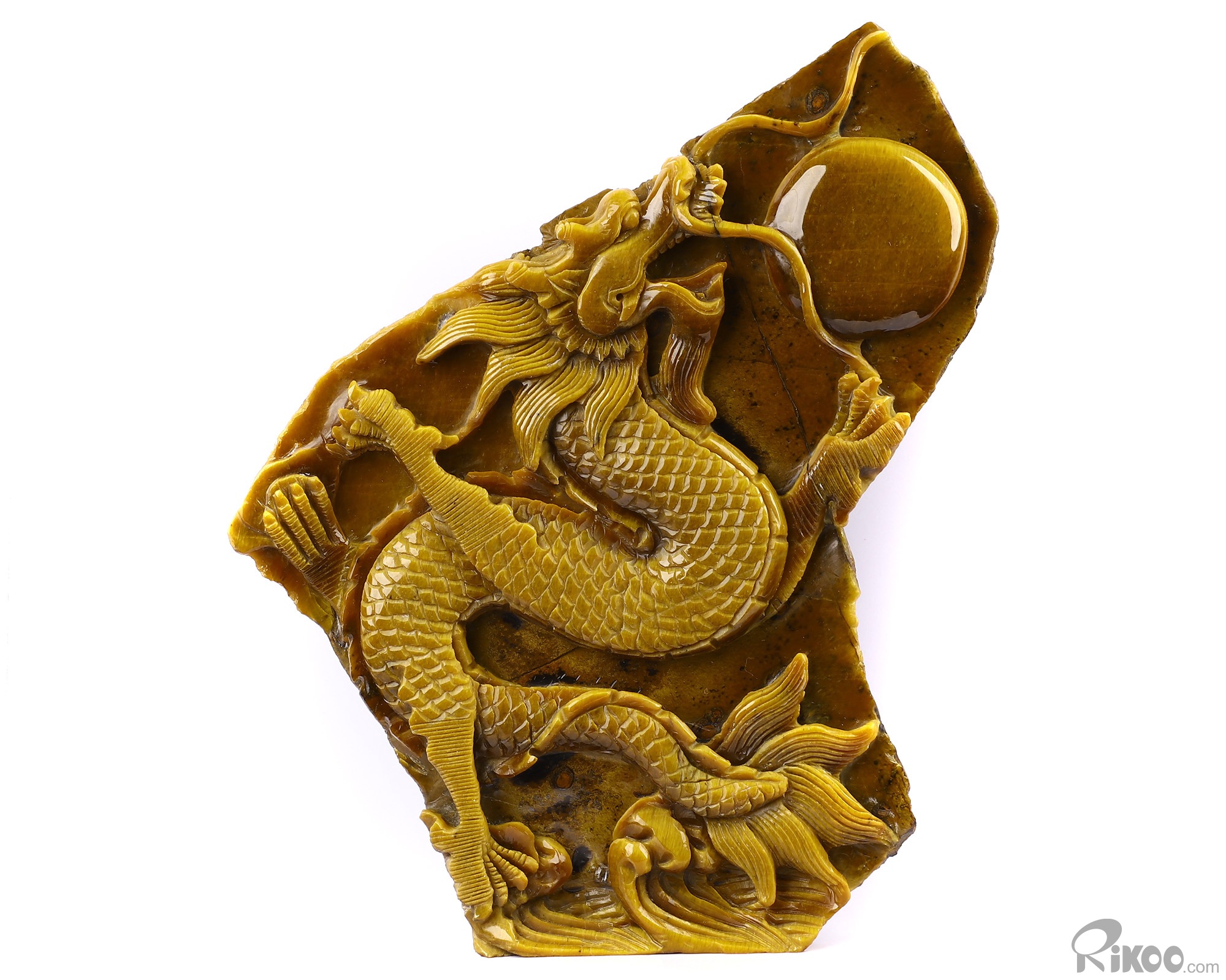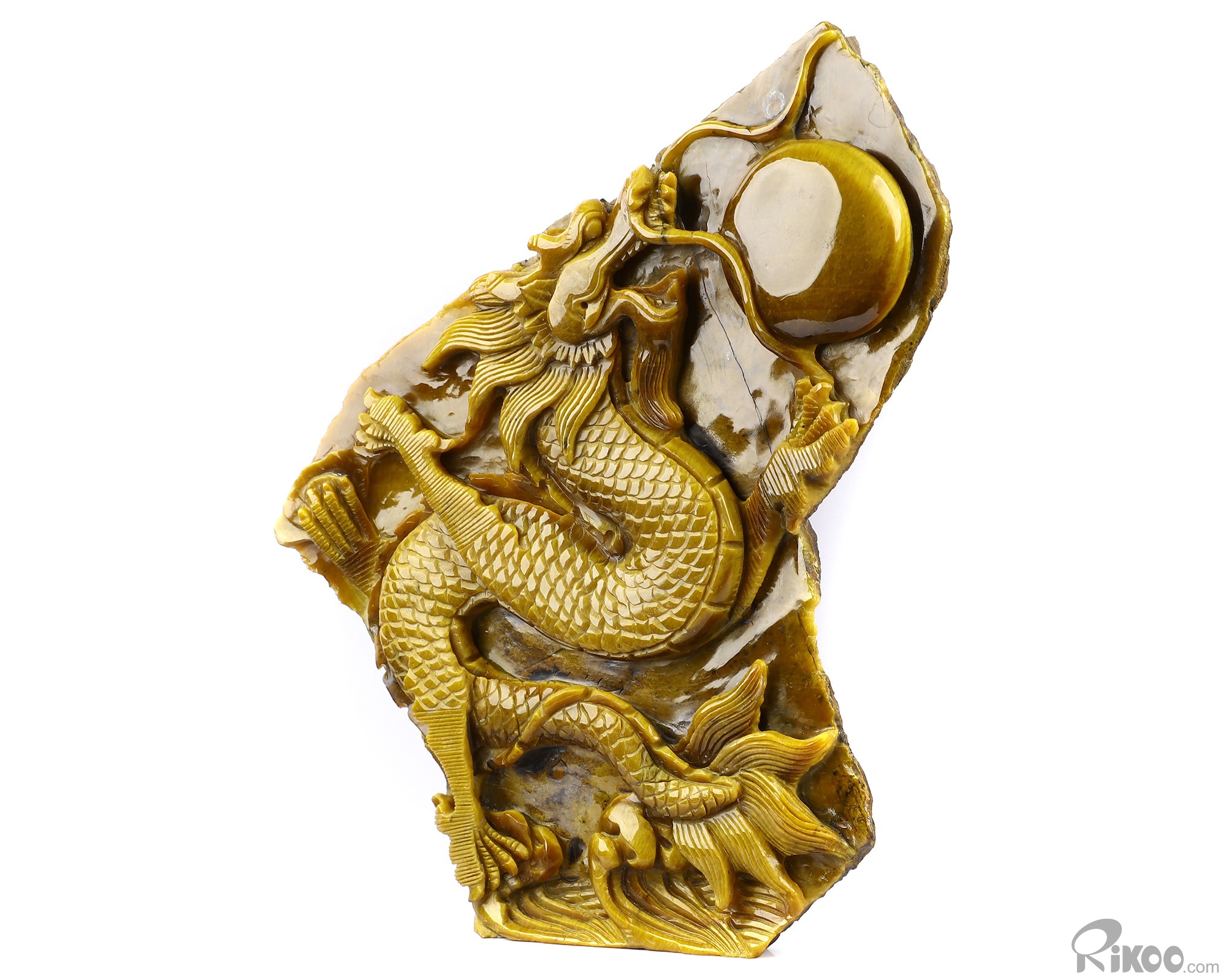AMAZING FLASH Giant 9.4" Gold Tiger Eye Carved Crystal Dragon Sculpture