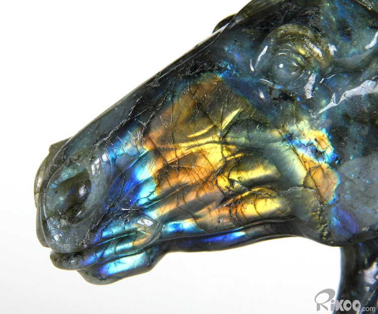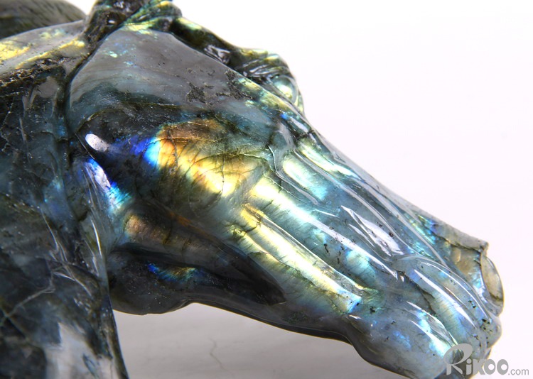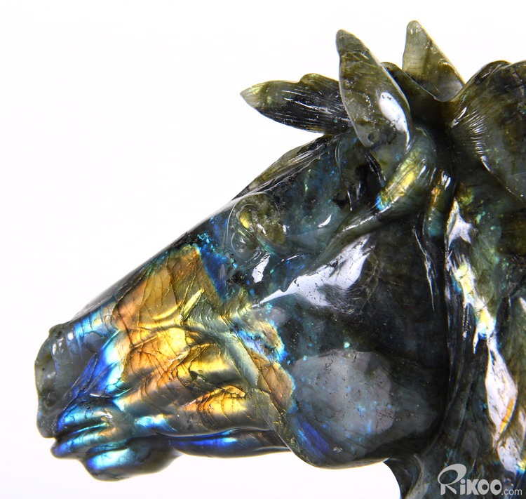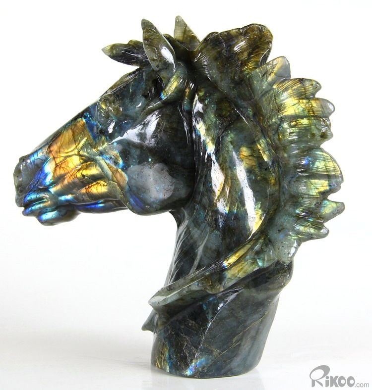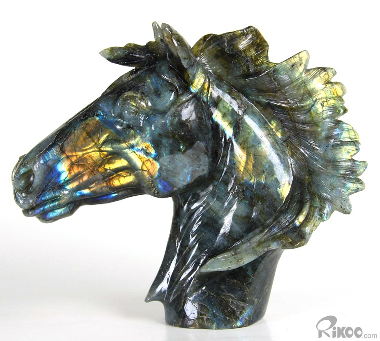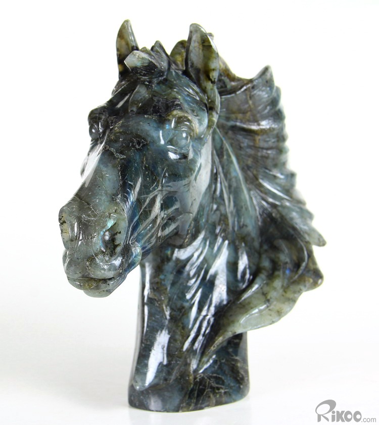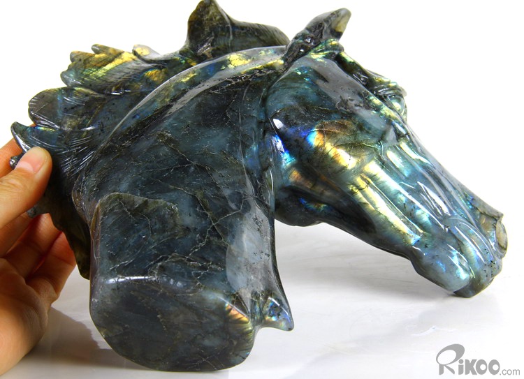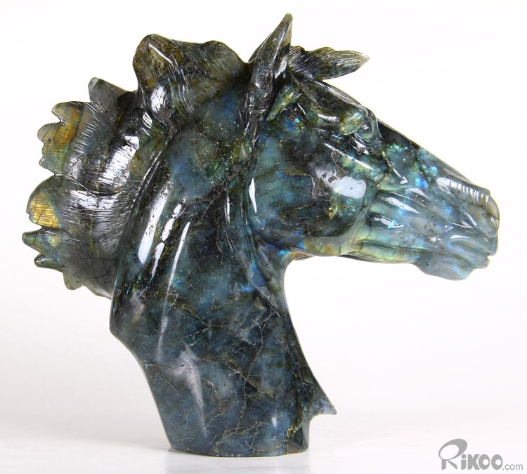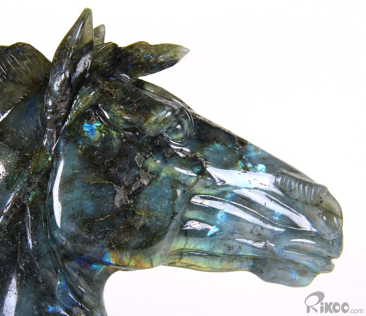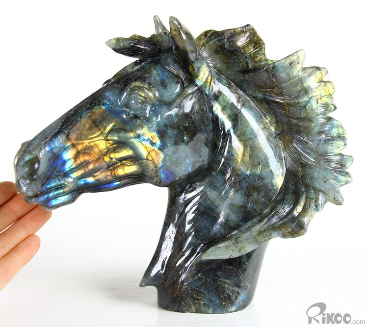 AMAZING FLASH Huge 8.5" Labradorite Carved Crystal Horse Head Sculpture