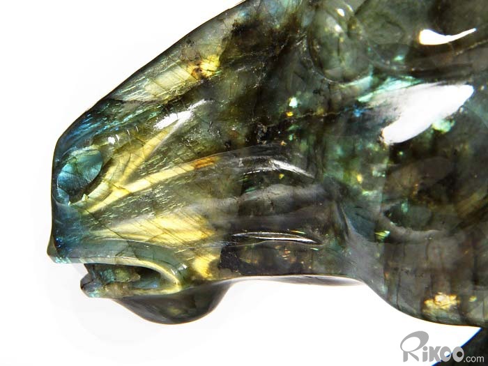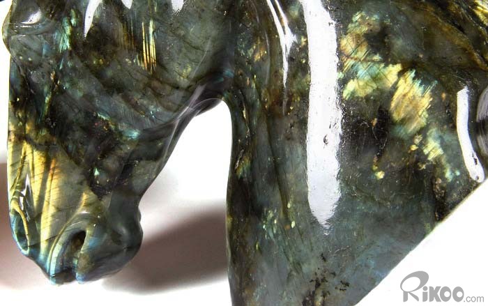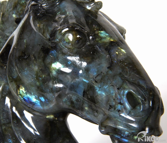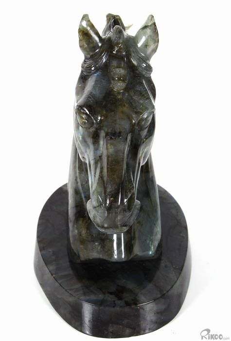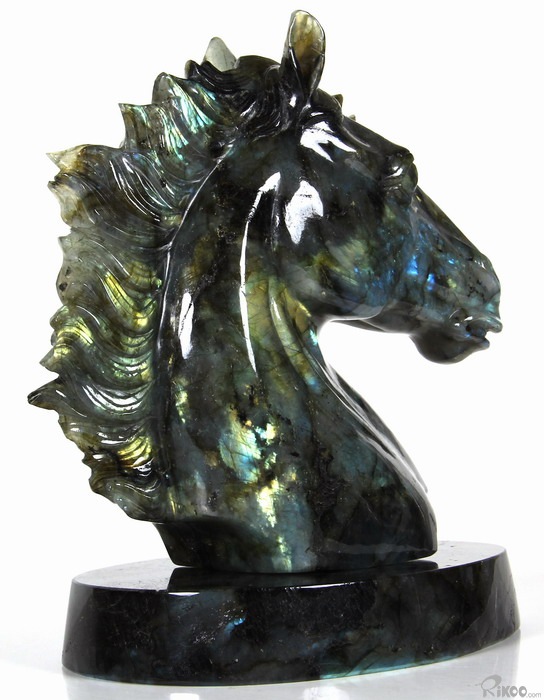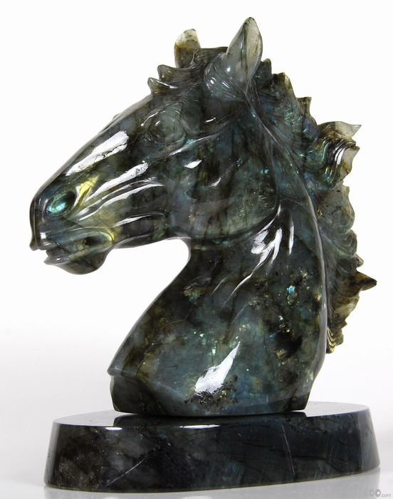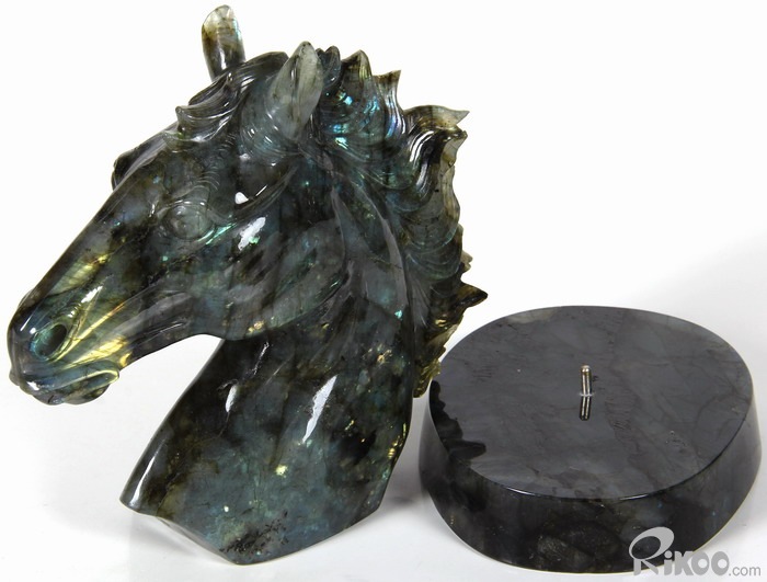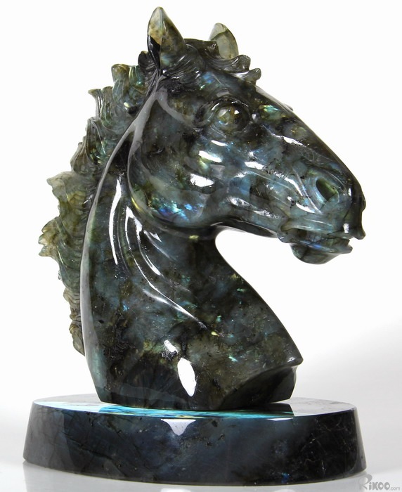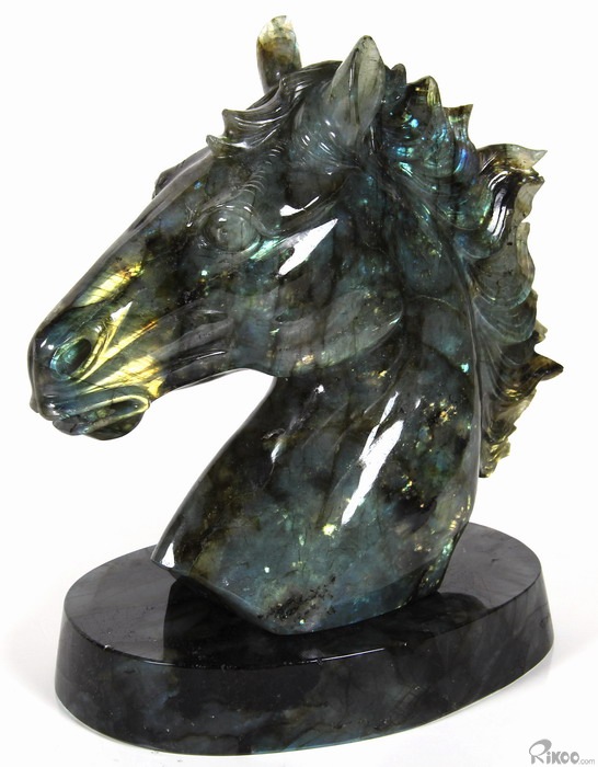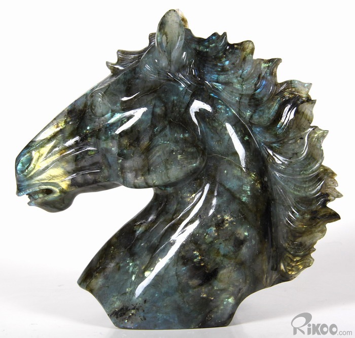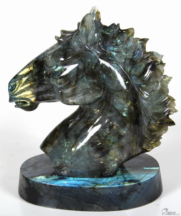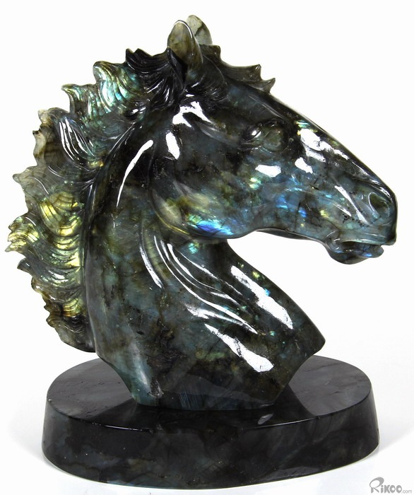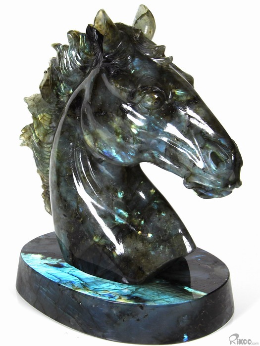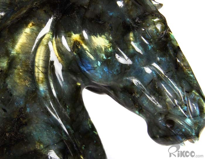 AMAZING Flash GIANT 6.4" Labradorite Carved Crystal Horse Head & Stand Sculpture
