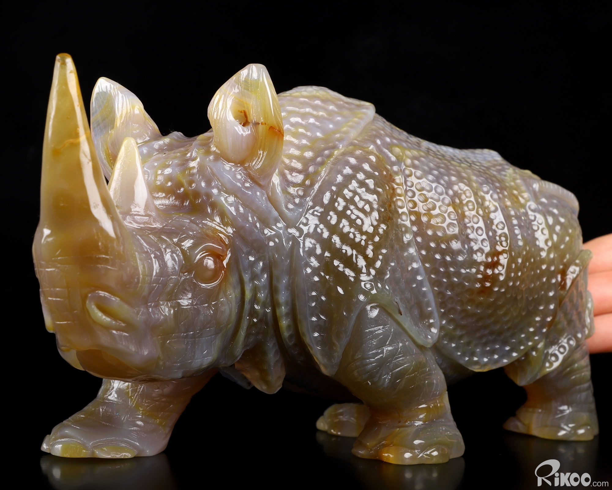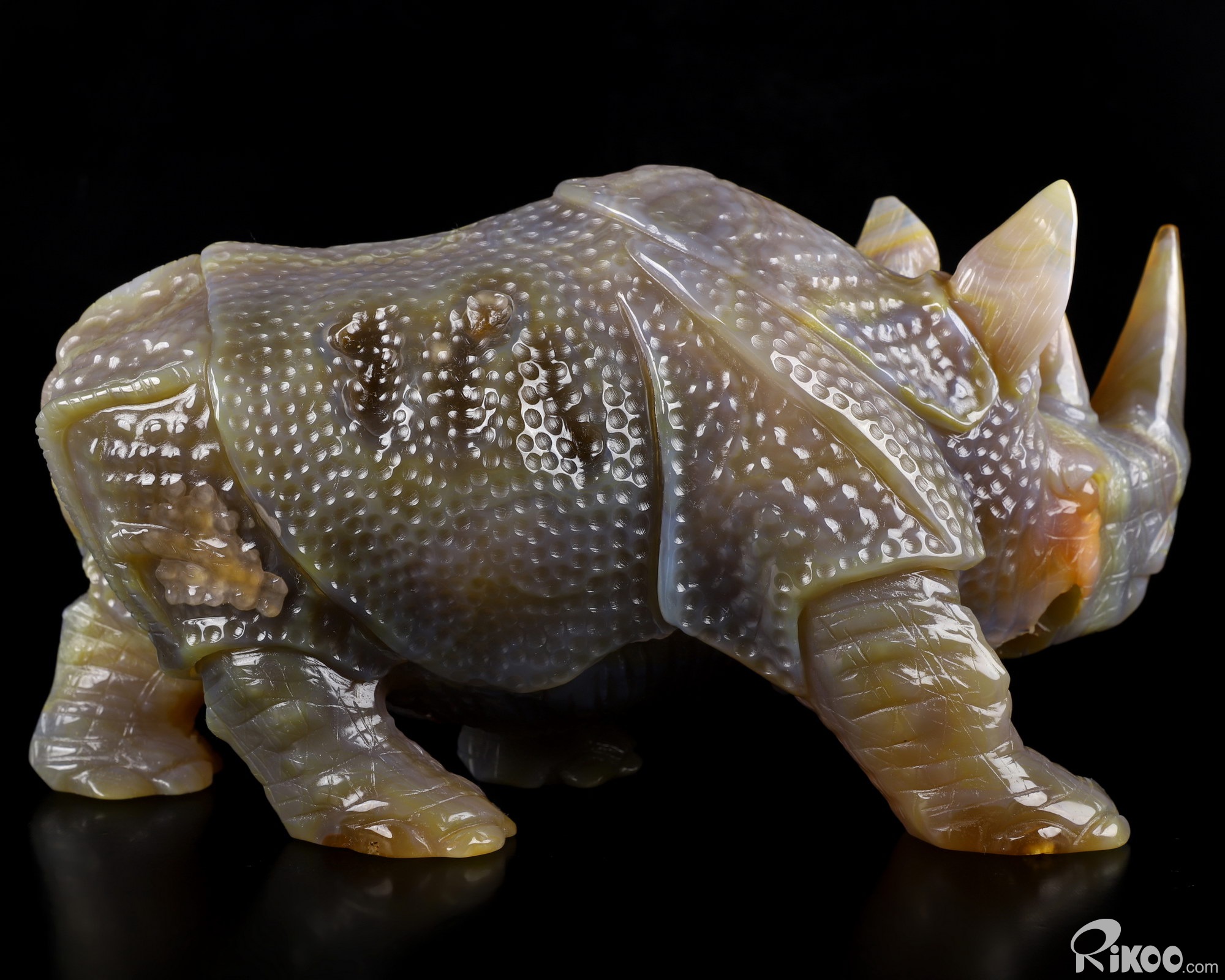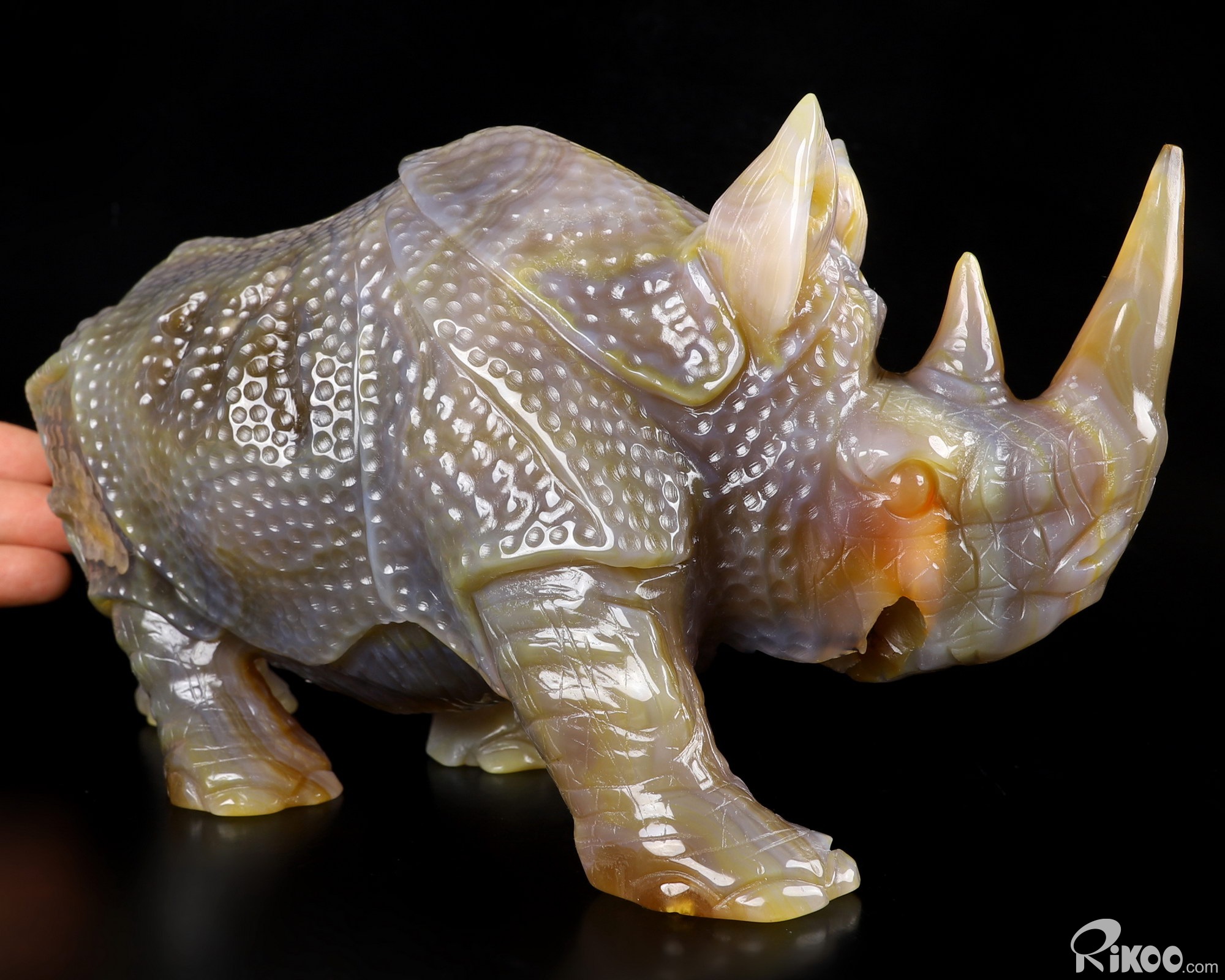 AMAZING Titan 10.0" Agate Carved Crystal Rhinoceros, Realistic, Crystal Healing