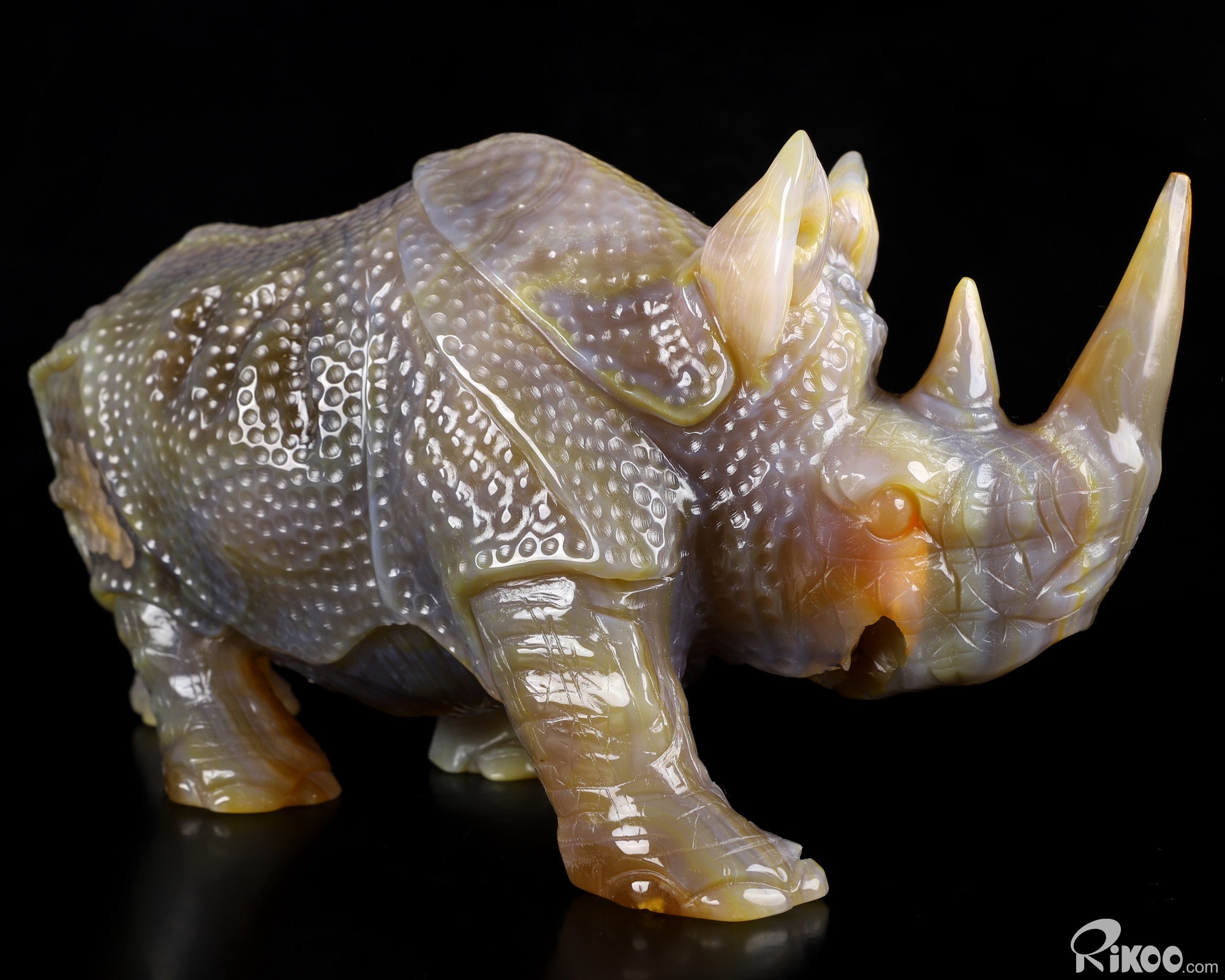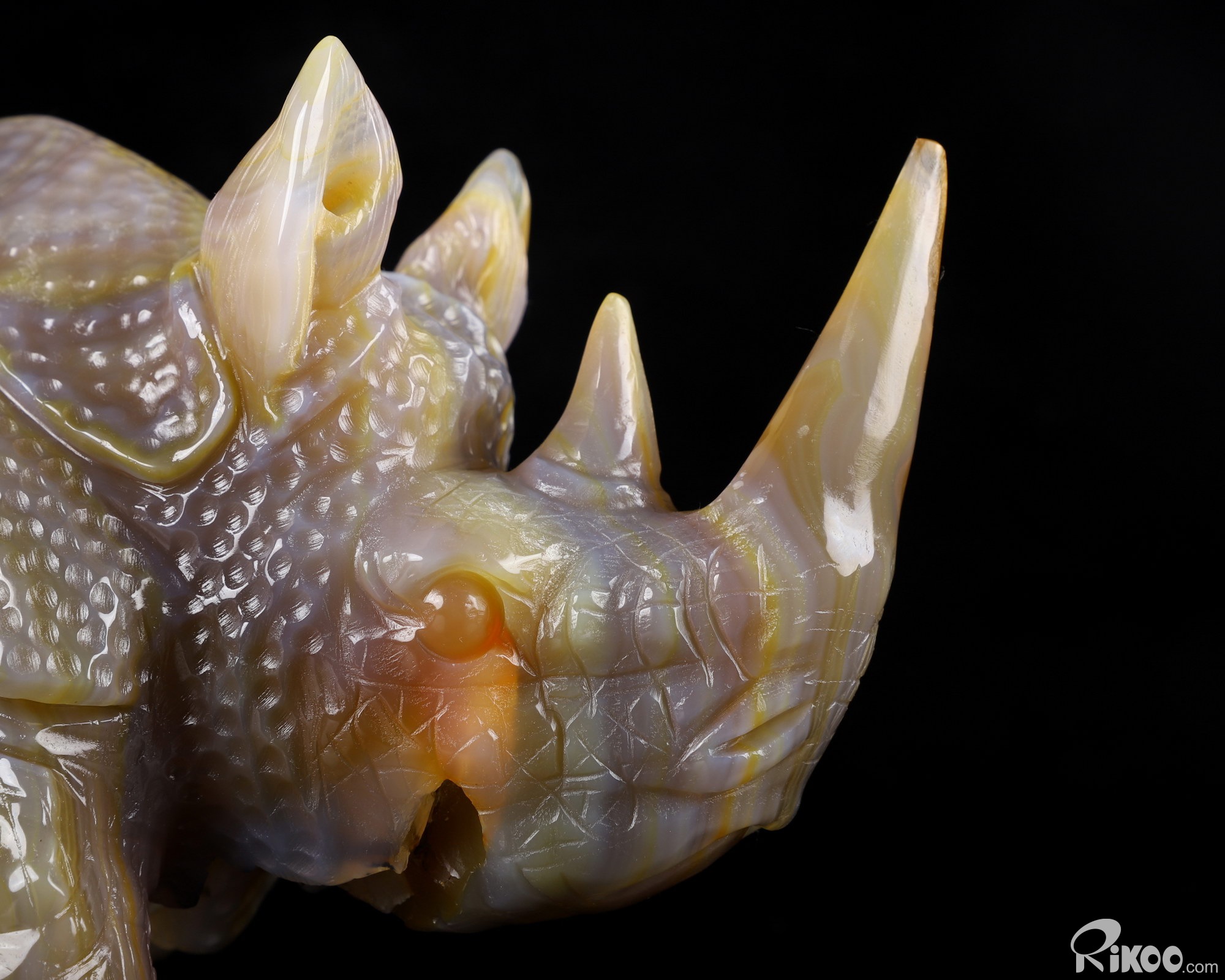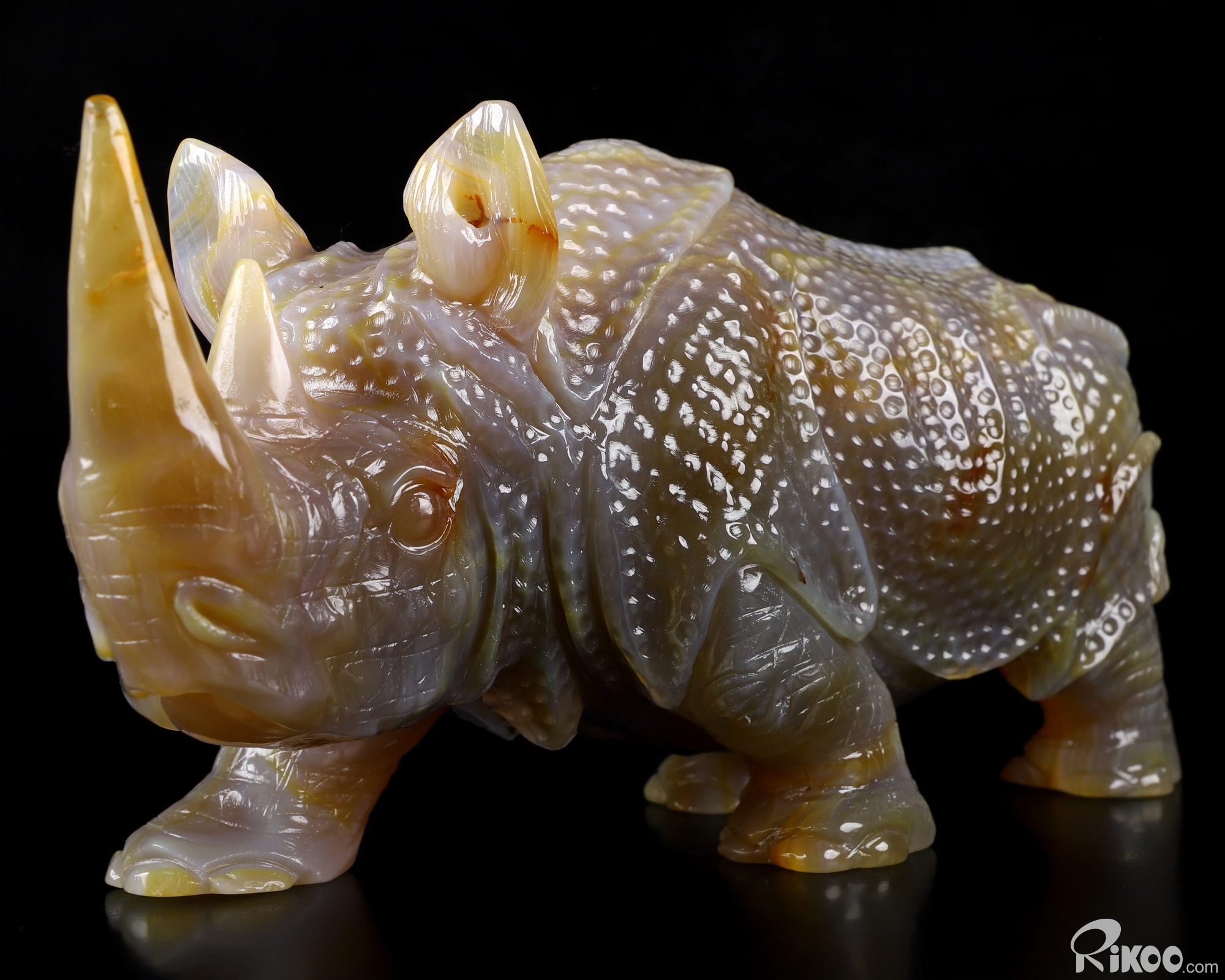 AMAZING Titan 10.0" Agate Carved Crystal Rhinoceros, Realistic, Crystal Healing