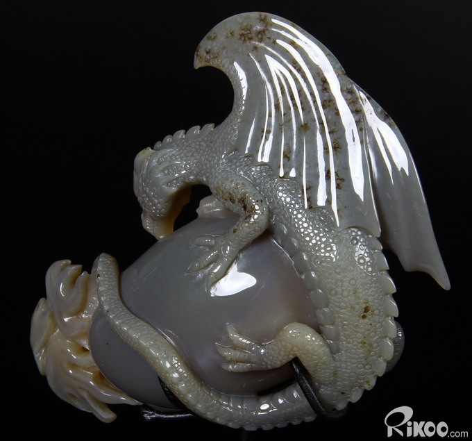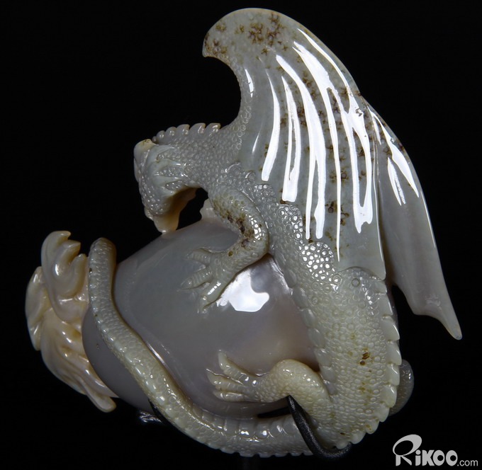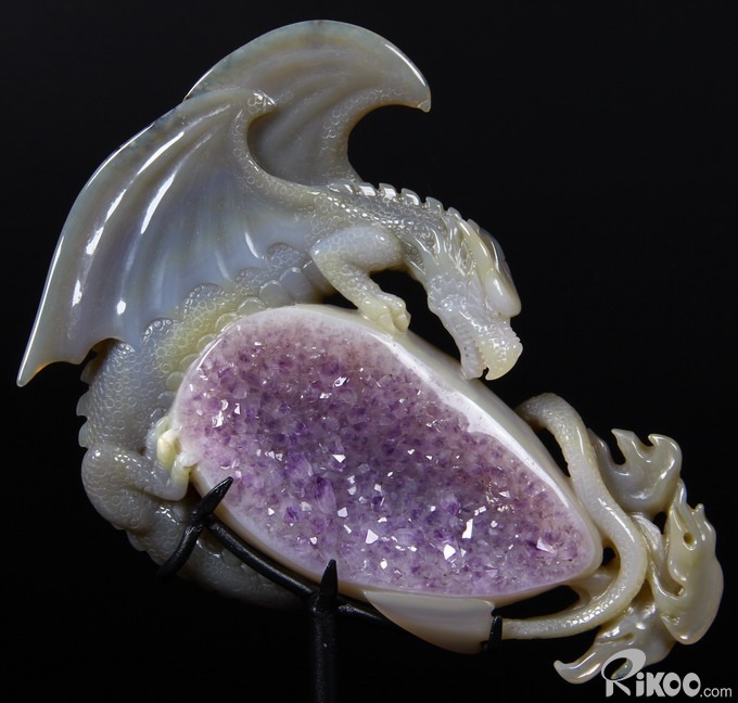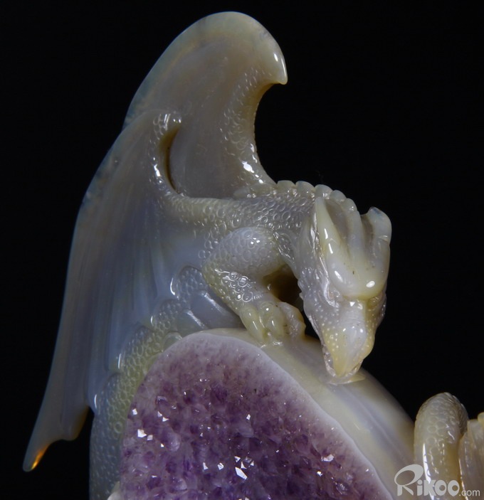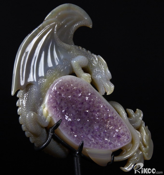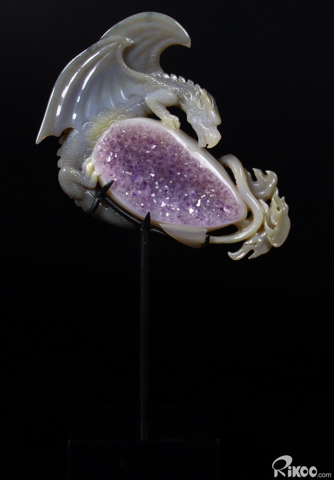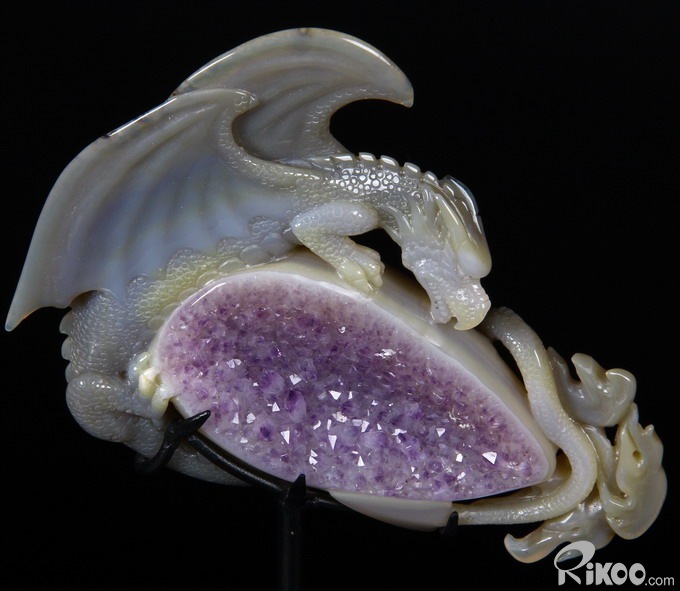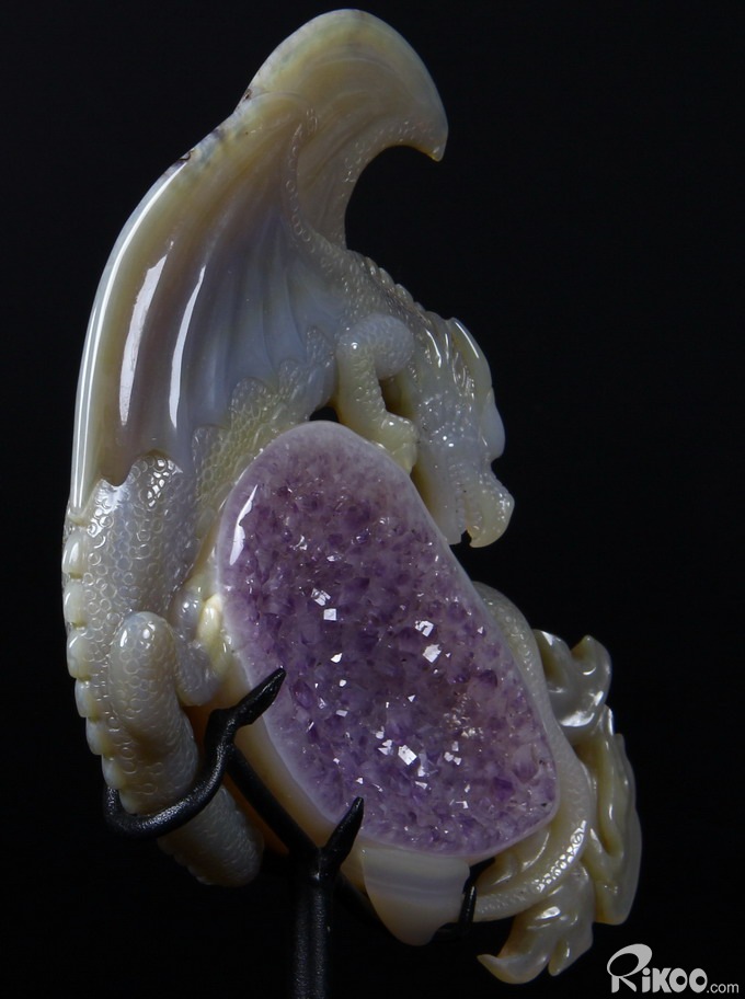 AMAZING UNIQUE HUGE Amethyst GEODE 5.9" Agate Carved Crystal The First Western Dragon Sculpture
