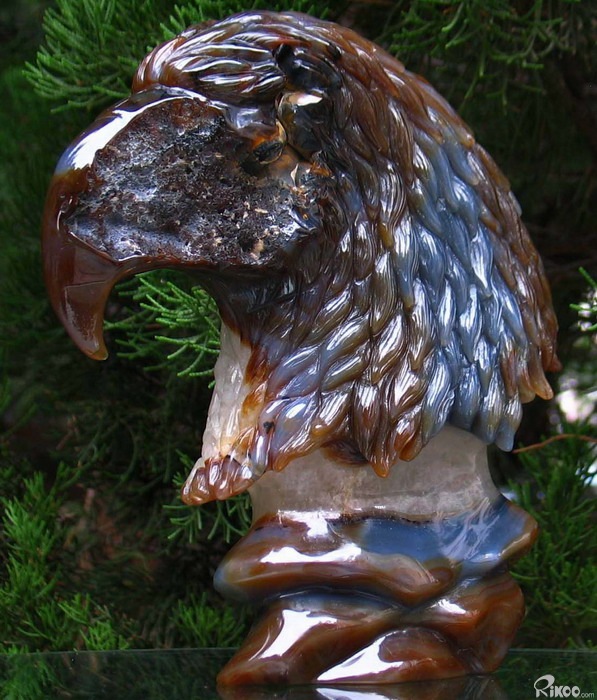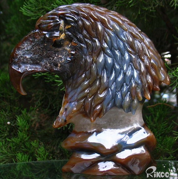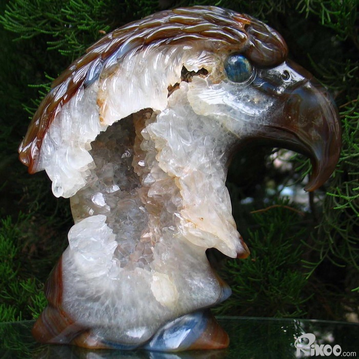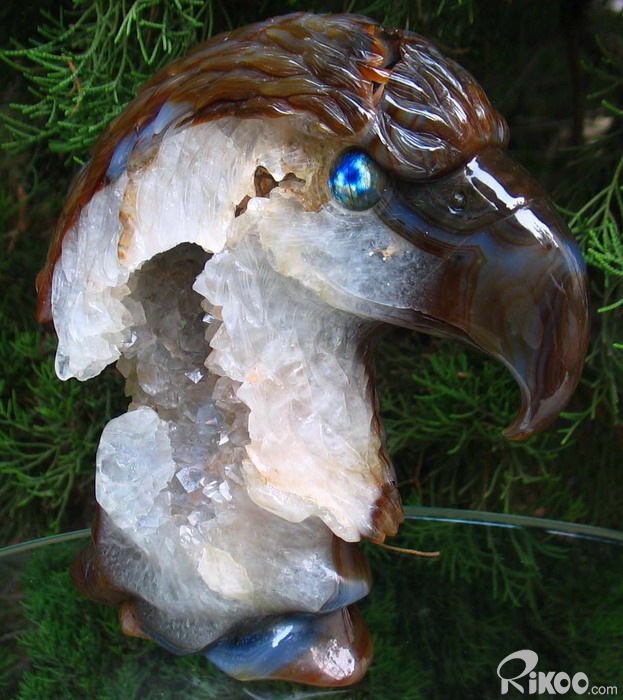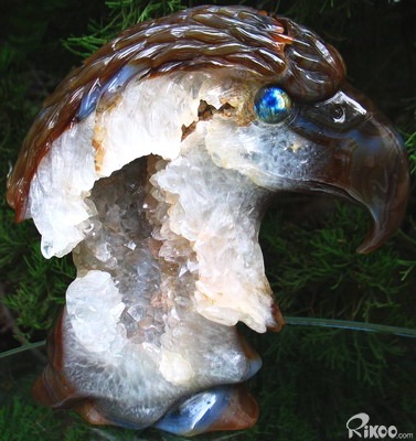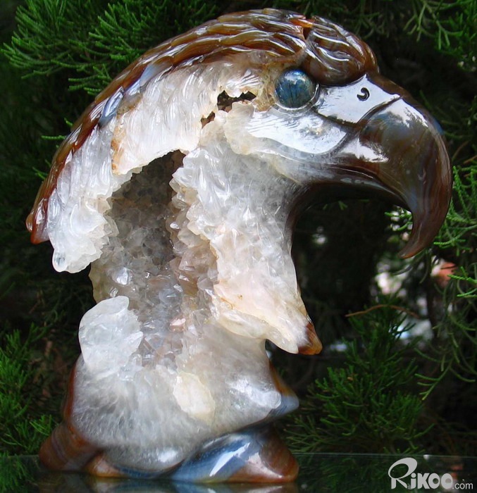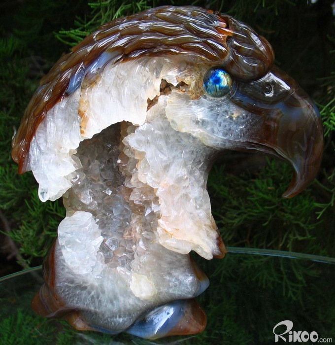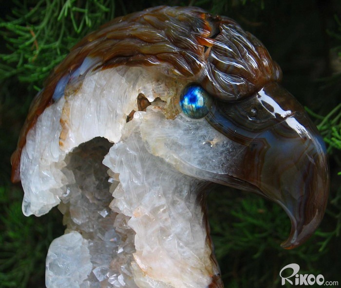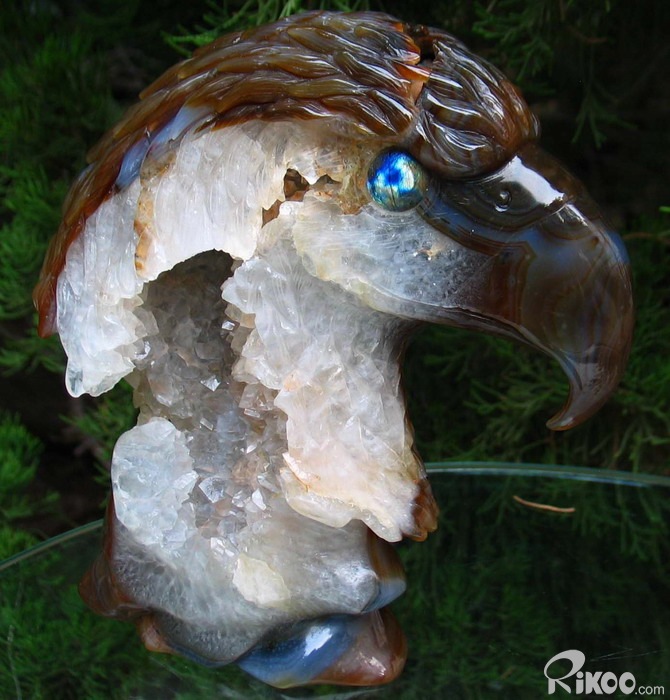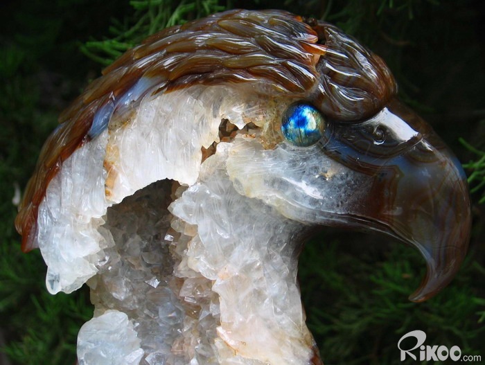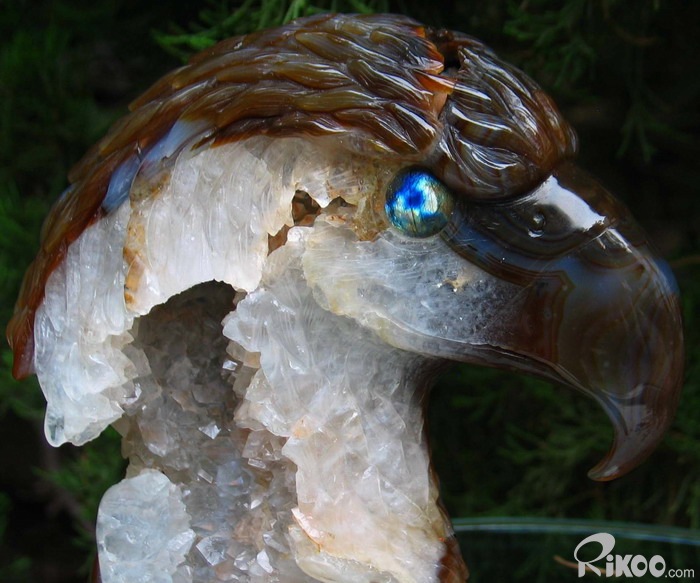 AWESOME Agate Carved Eagle Head Sculpture, Labradorite Eyes