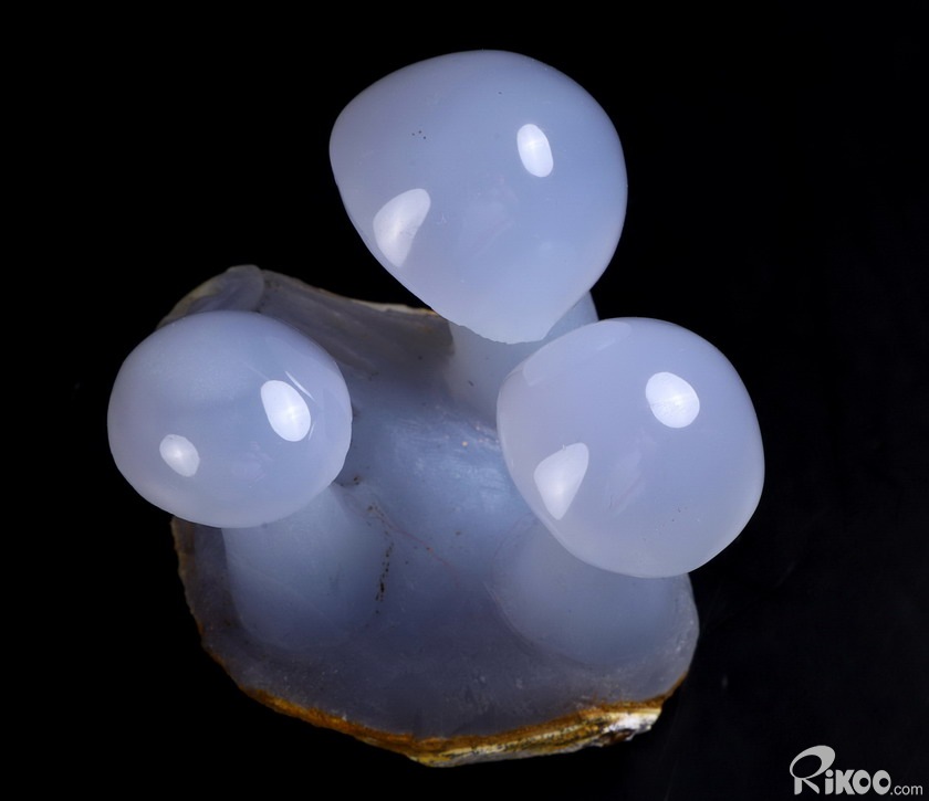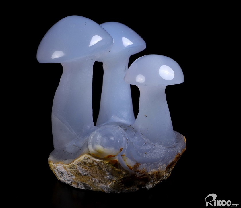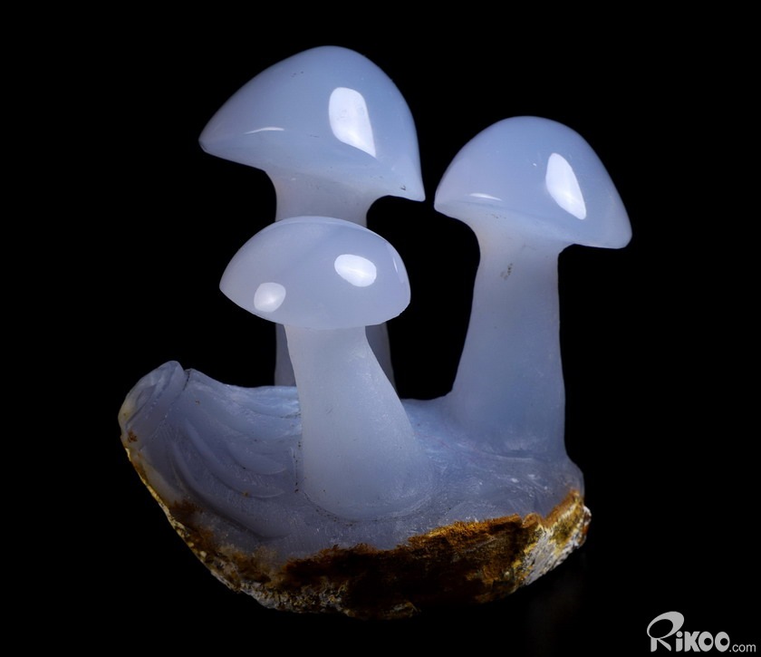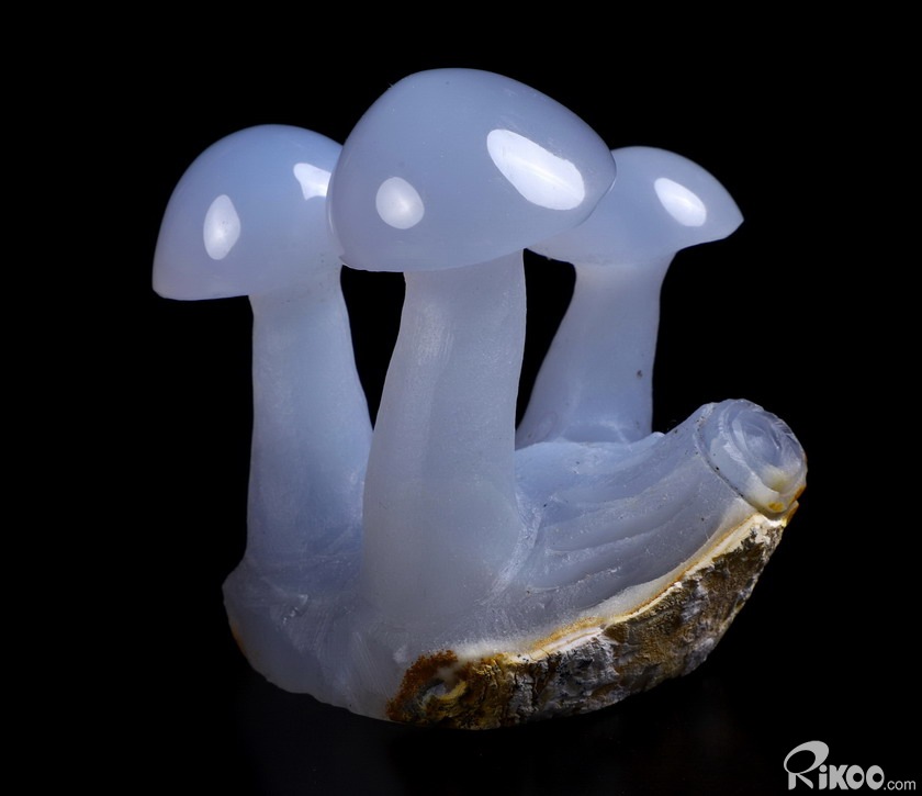 - You are looking at a blue chalcedony mushroom. The mushroom is 2.6 inches long from front to back.