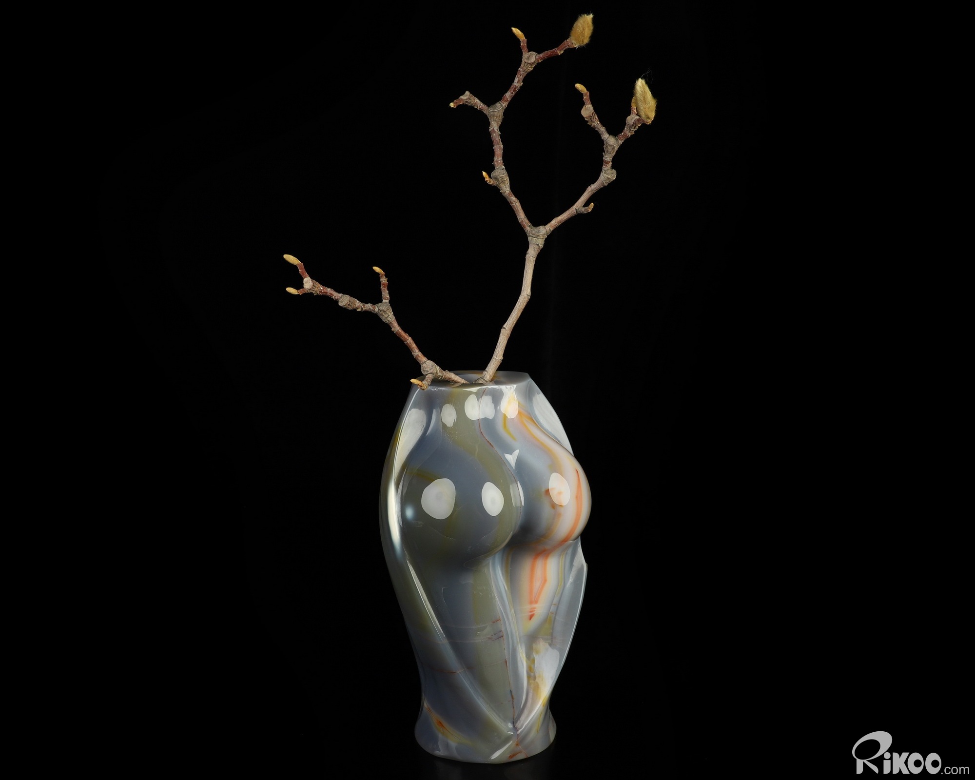 Amazing 6.7" Agate Hand Carved Crystal Body Vase Sculpture, Crystal Healing