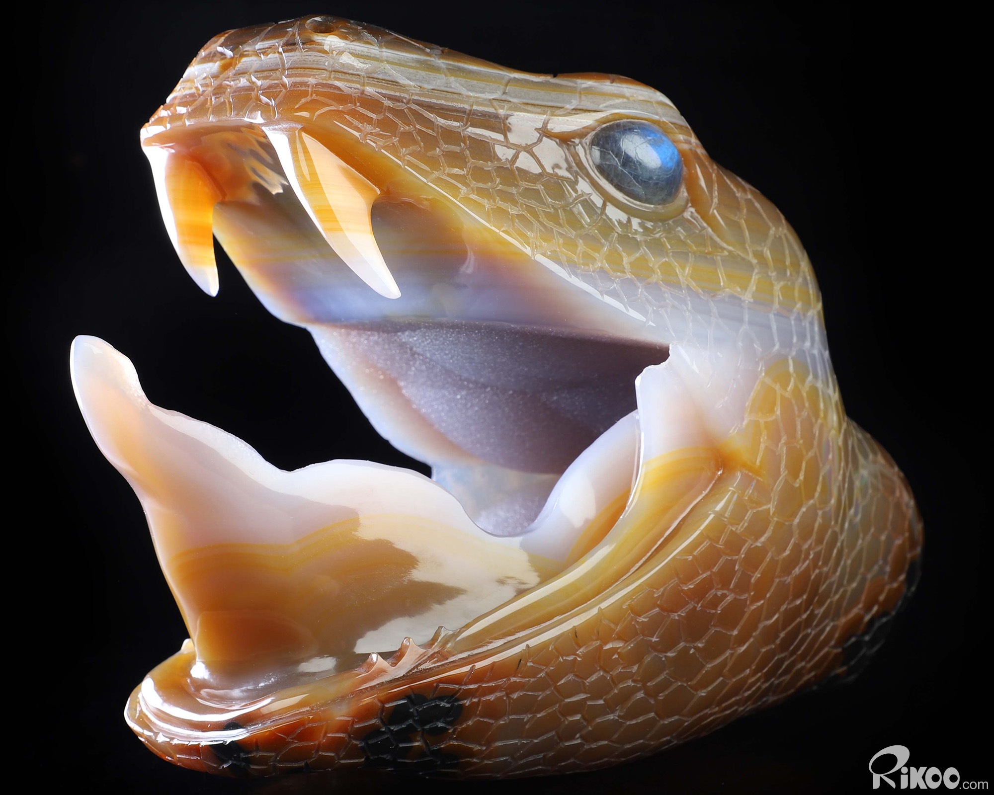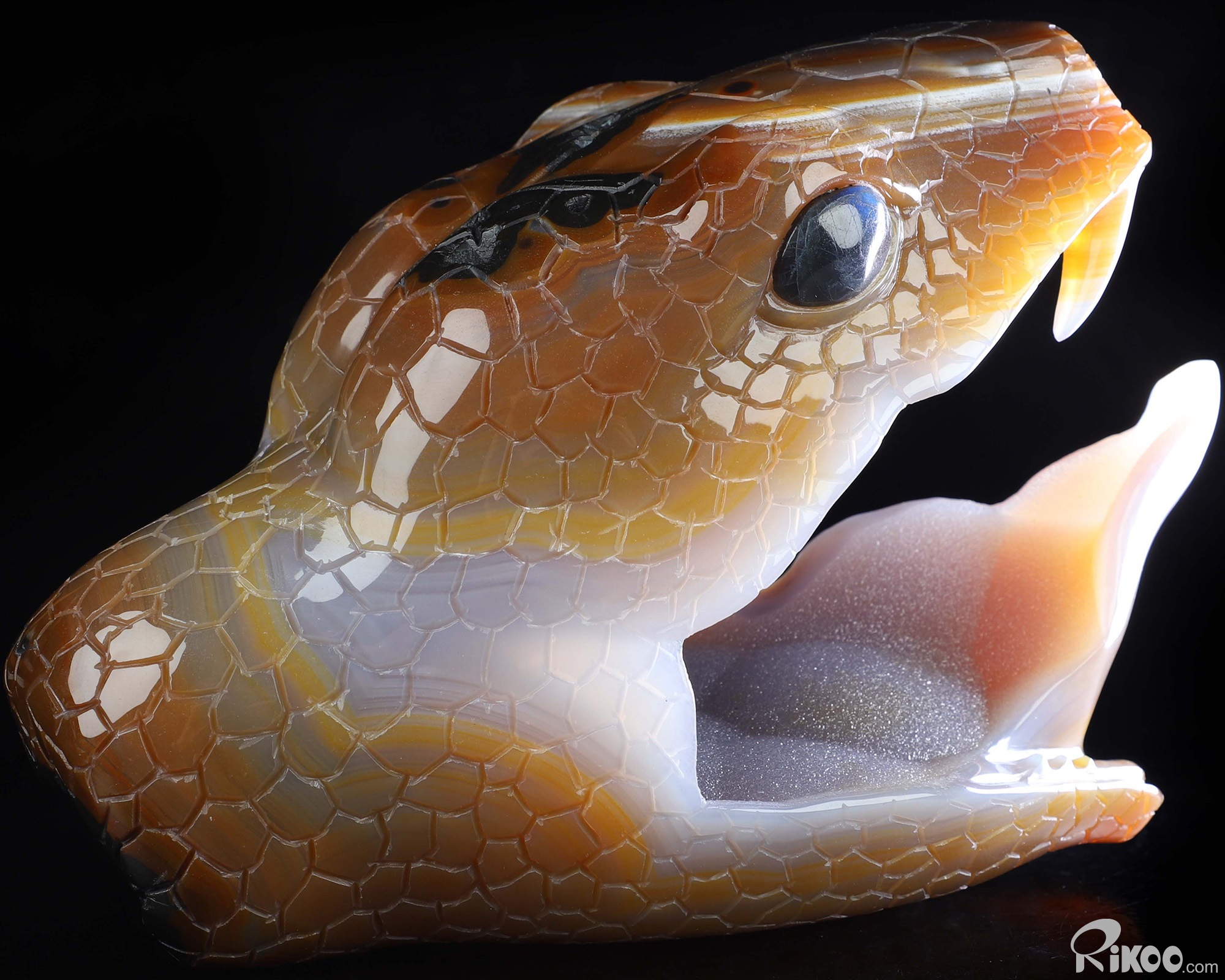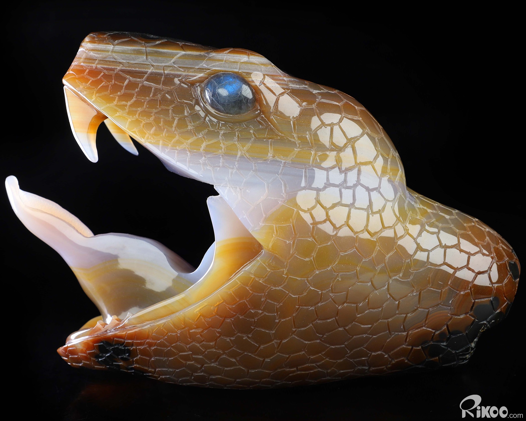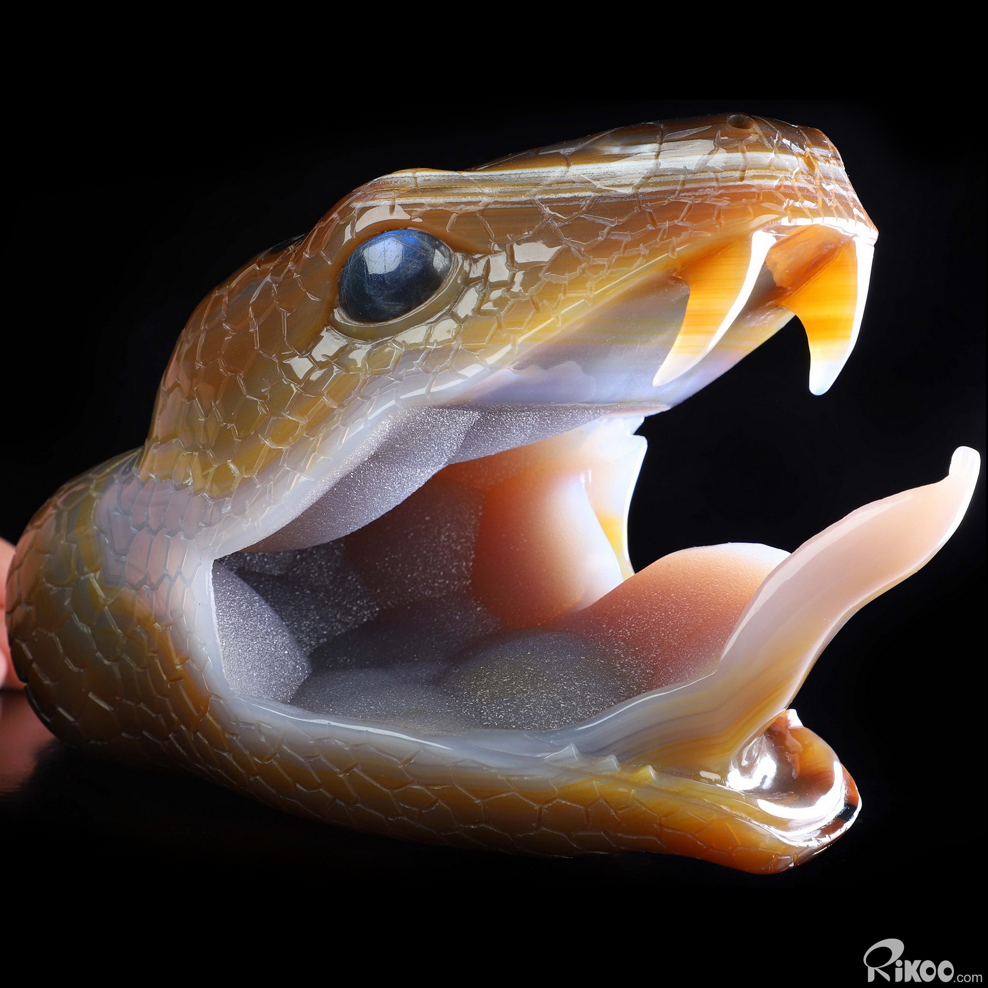 Amazing 7.9" Premium Brazilian Agate Hand Carved Crystal Snake Sculpture, Crystal Healing