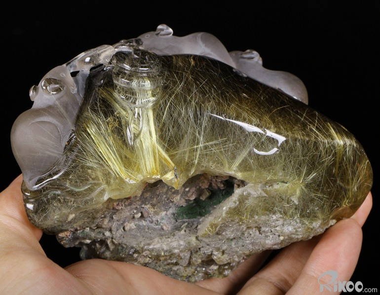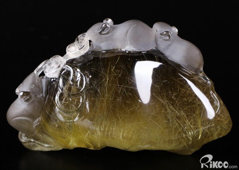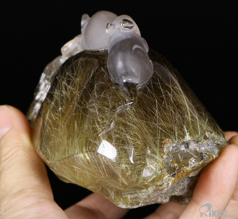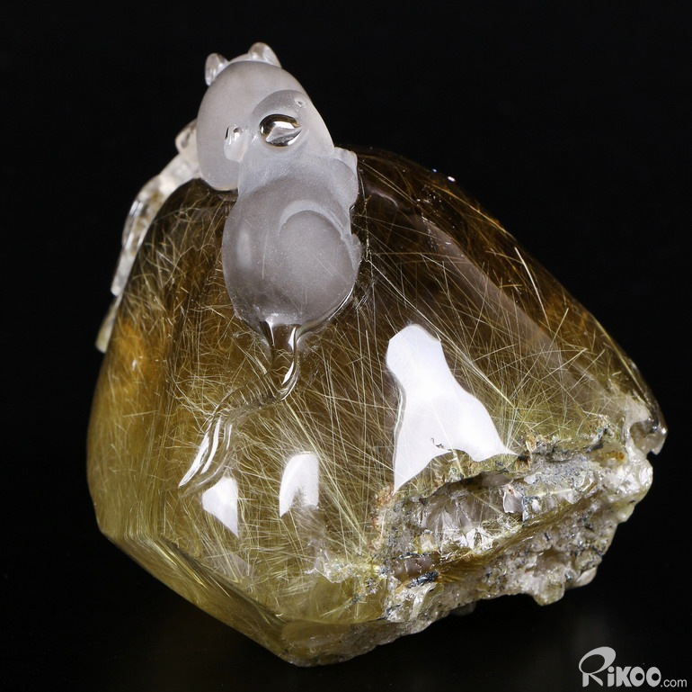 Amazing Gemstone Huge 4.6" Rutilated Quartz Rock Crystal Carved Crystal Mice Sculpture