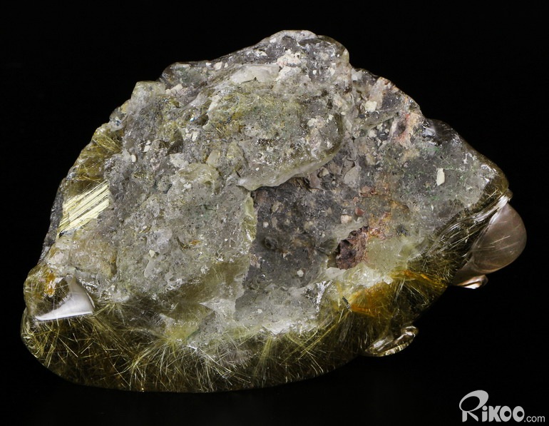 Clear Quartz with metallic, golden rutile, copper, or blue/gray titanium fibers that powerfully electrically conduct and amplify energy/thoughts/programming for healing. Intensifies/deepens altered states. Opens Crown/Brown Chakra for meditation, clairvoyance, telepathy, insight. Some make one too spacey or scattered to wear. (Induces Alpha) Stimulates immunity, strength, blue corona, imagery, dreams. Golden fibers may increase radiation protection and health rejuvenation. Each stone's energy/qualities are unique. Androgynous. Helpful with Lung disorders. Contains Rutile in needle-like mineral inclusions. One can find Rutilated versions of most of the types of Quartz discussed thus far. It heightens whatever energetic influence the regular Quartz posses and helps direct that boosted energy to problematic areas.