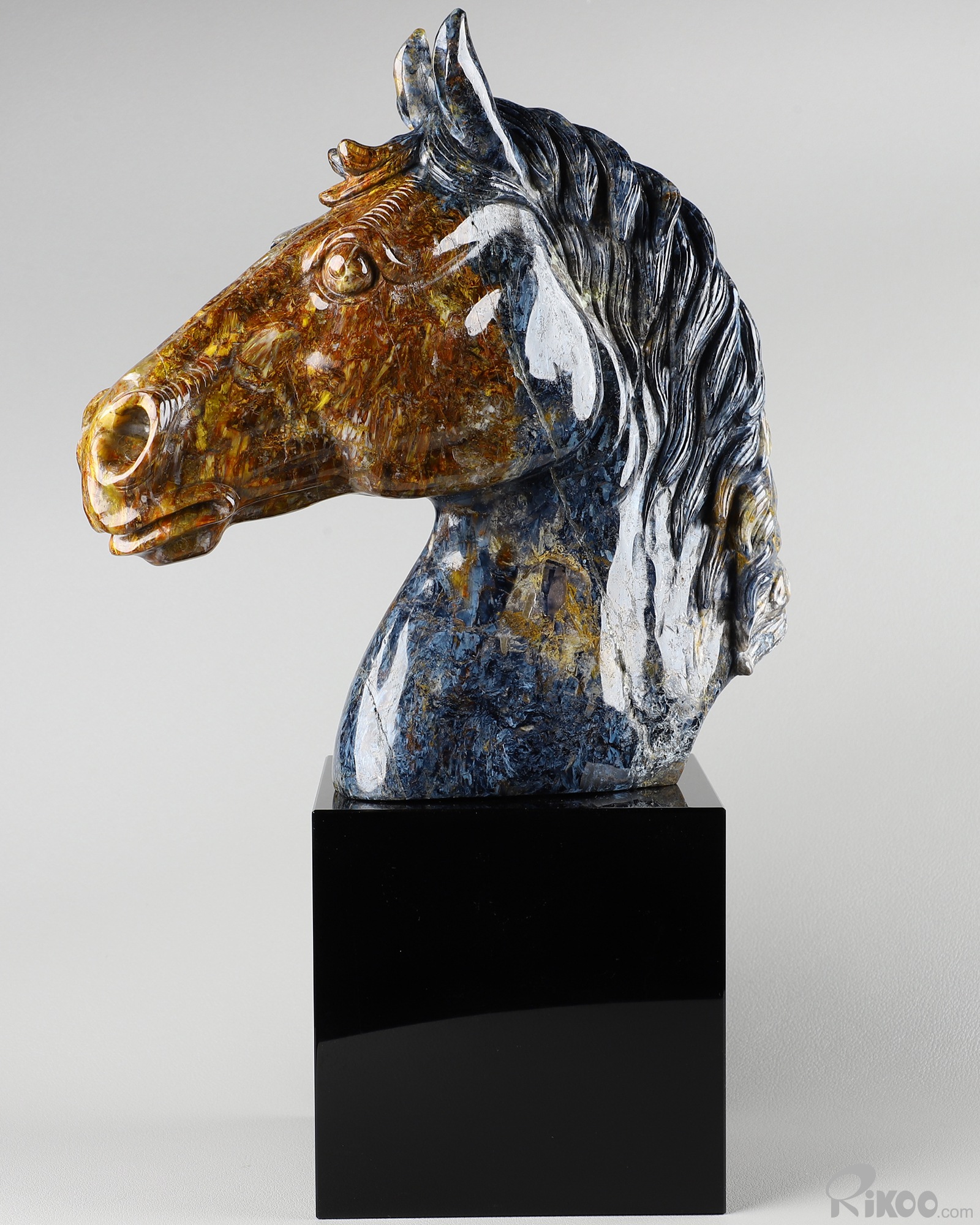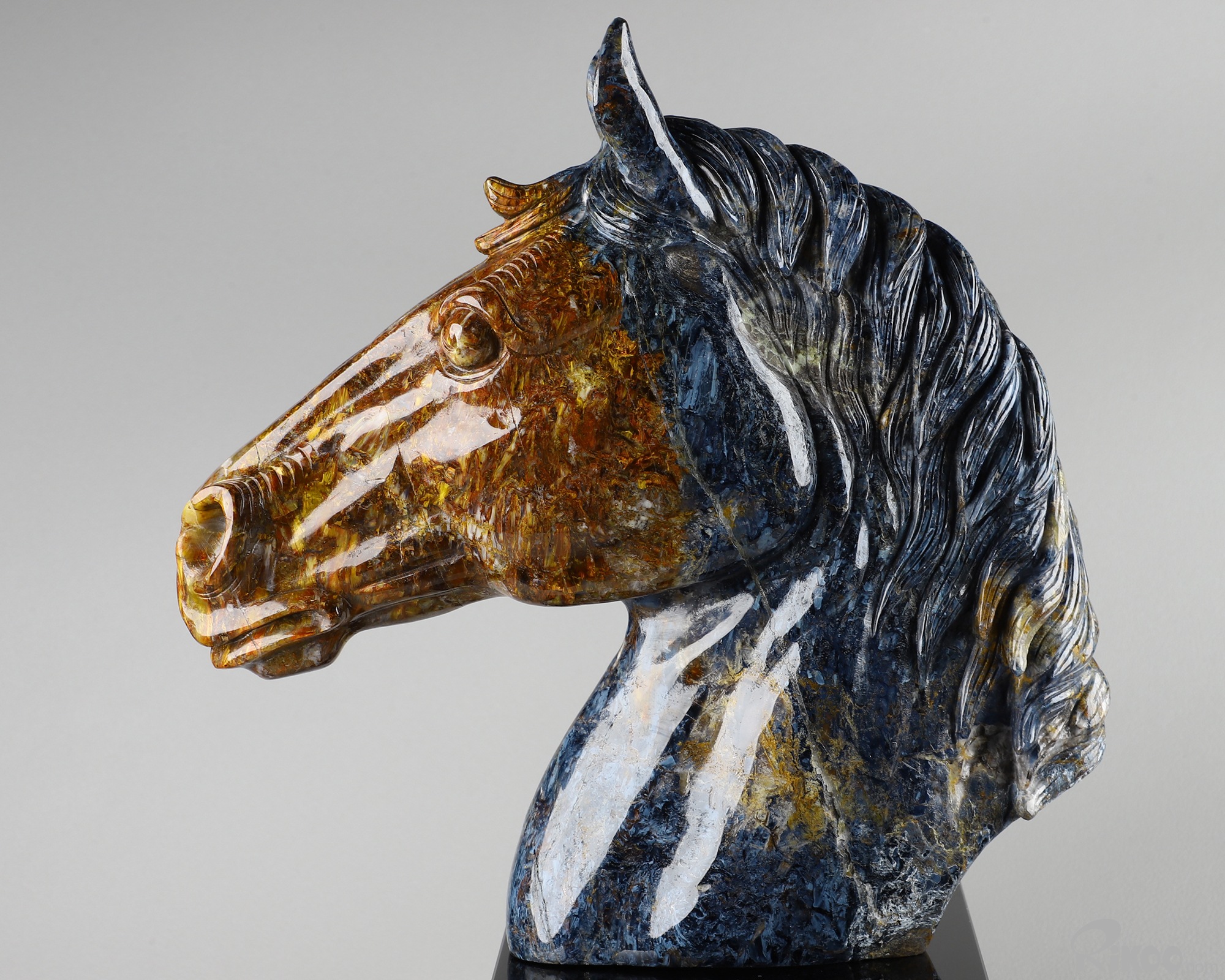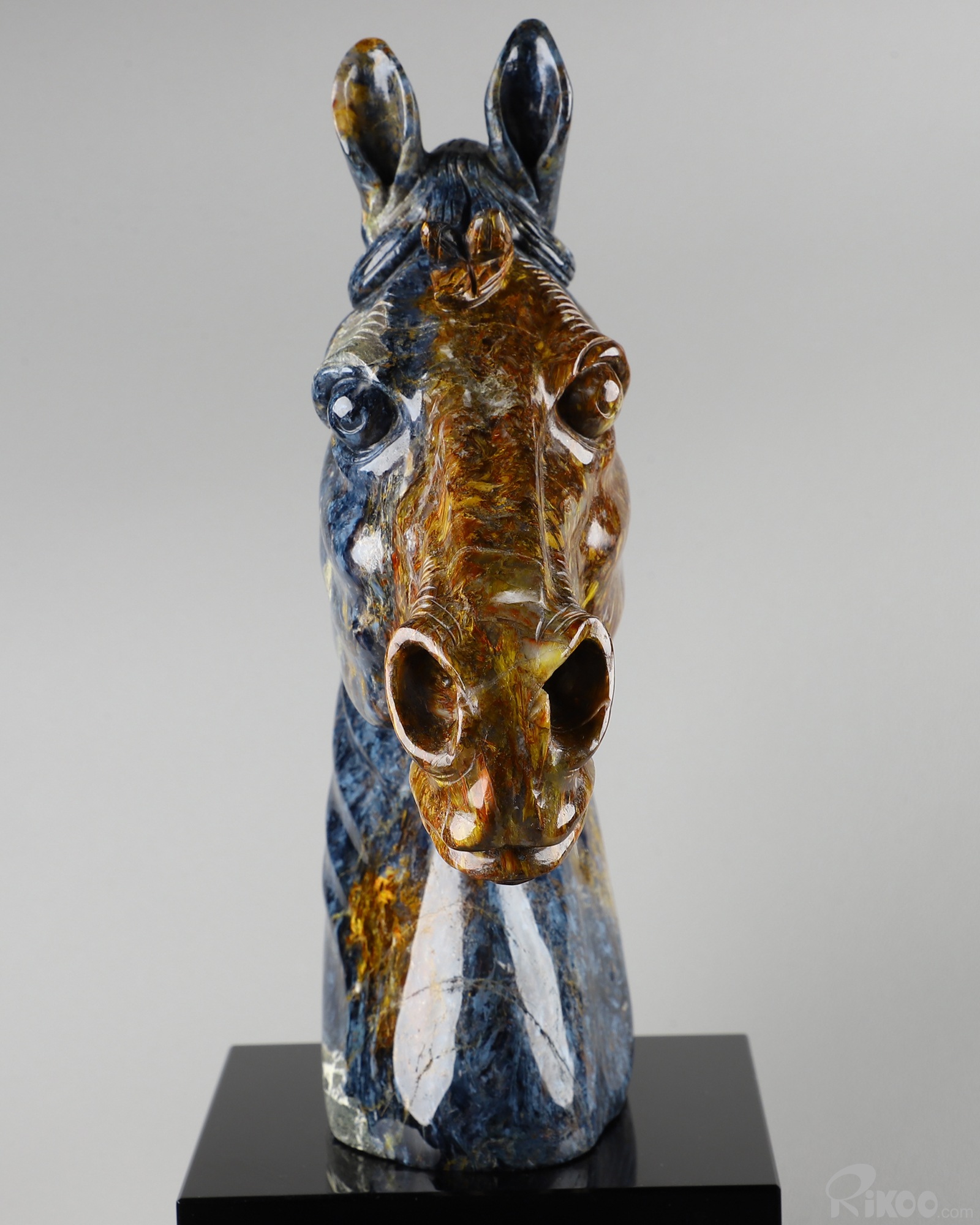 Amazing Gemstone Huge 7.7" Blue Gold & Red Pietersite Carved Crystal Horse Head Sculpture & Black Obsidian Stand
